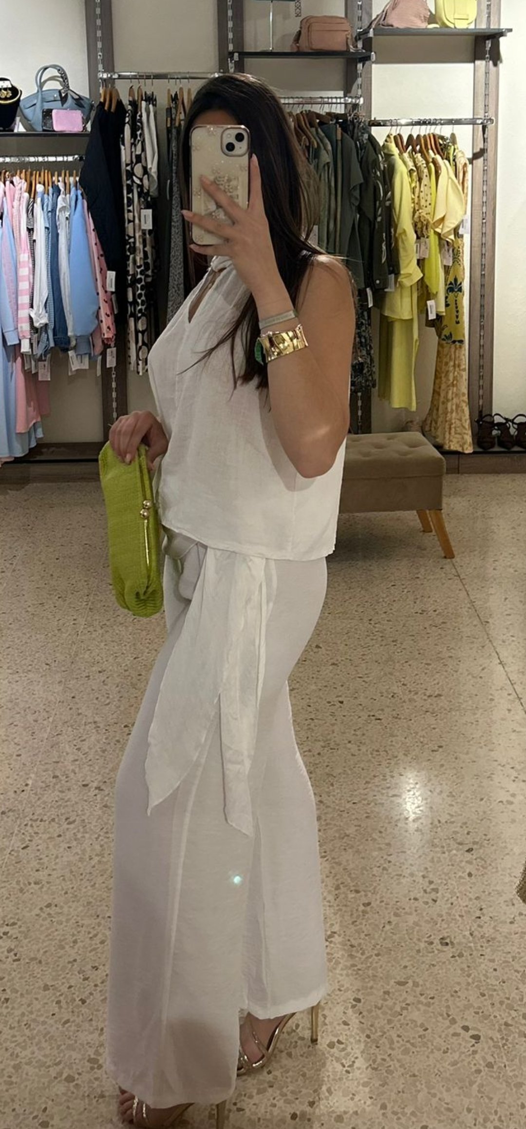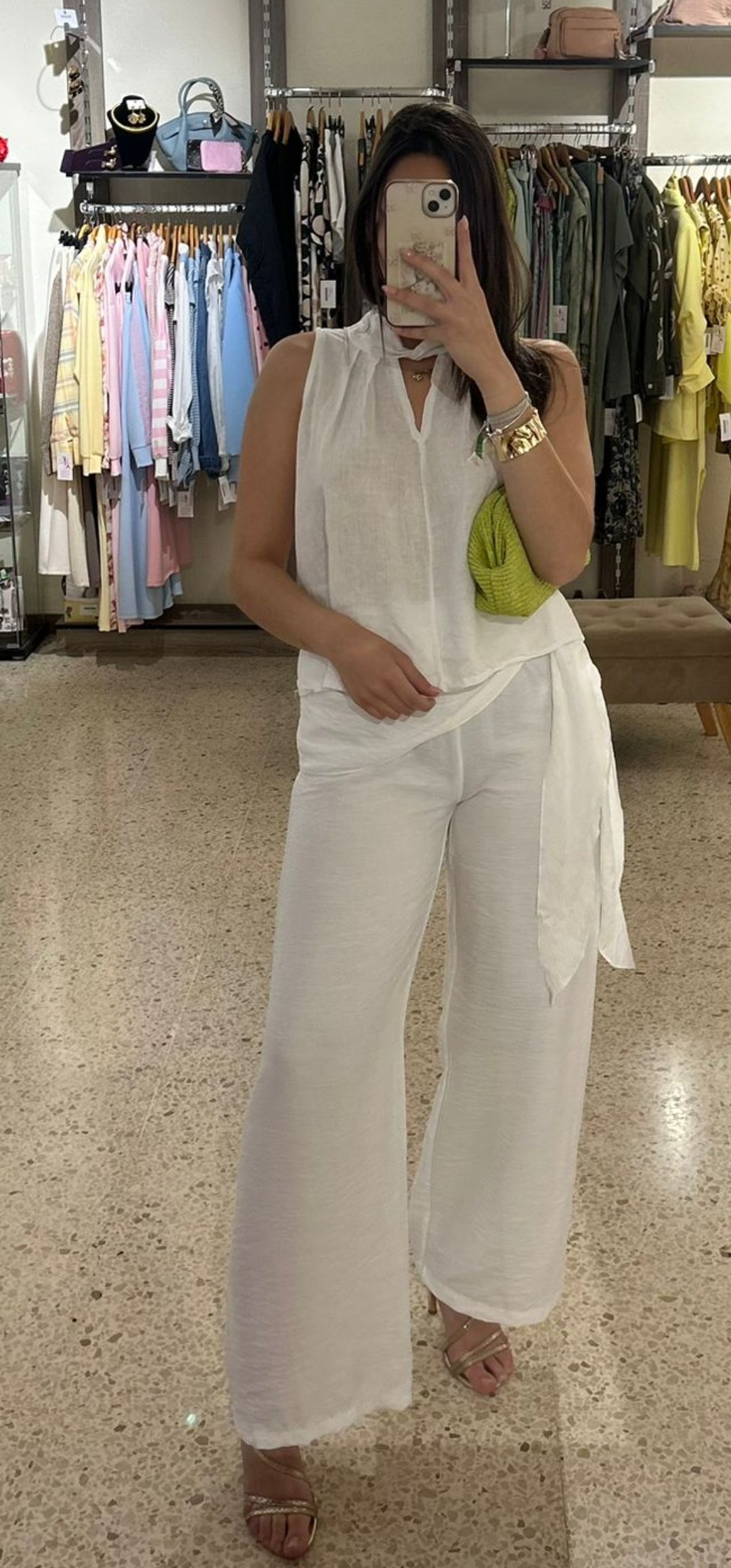 Monisima blusa en tejido de lino von abertura delate y cierre de botón detrás