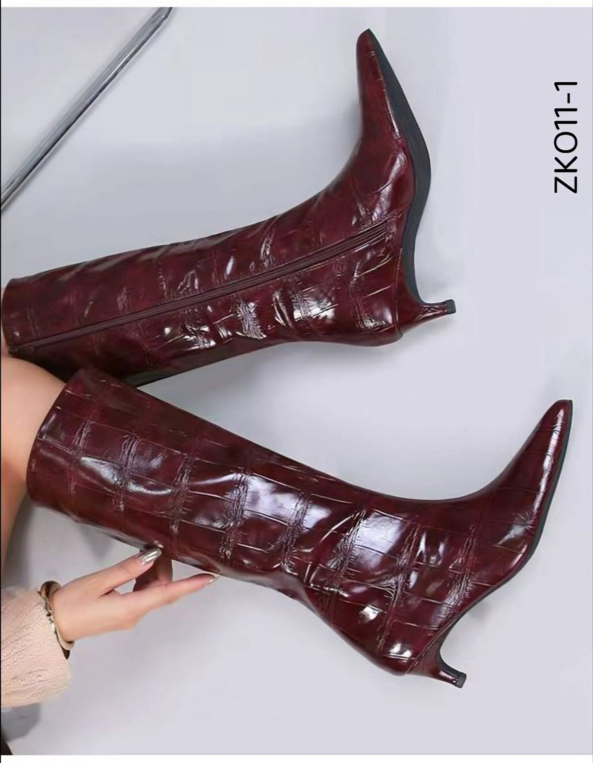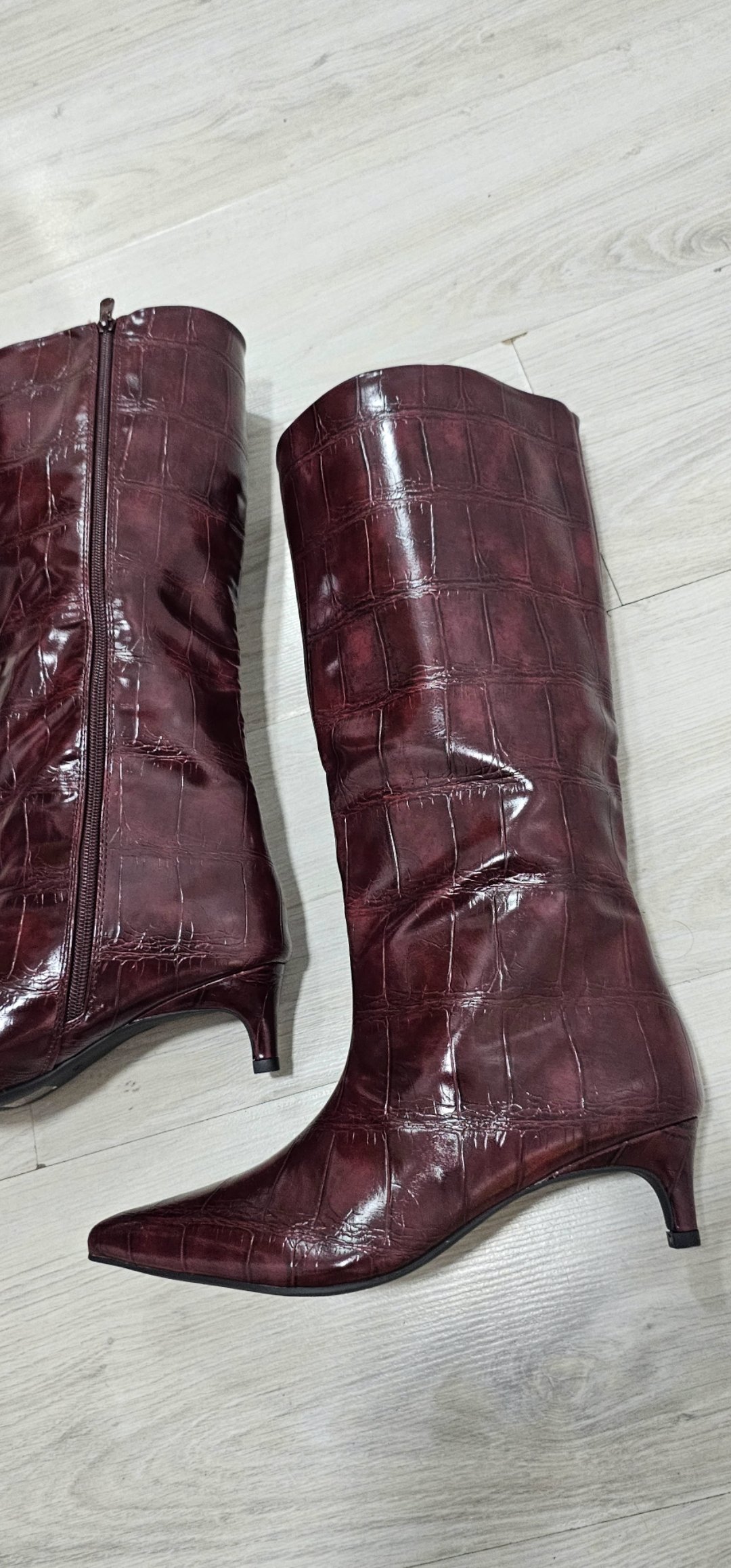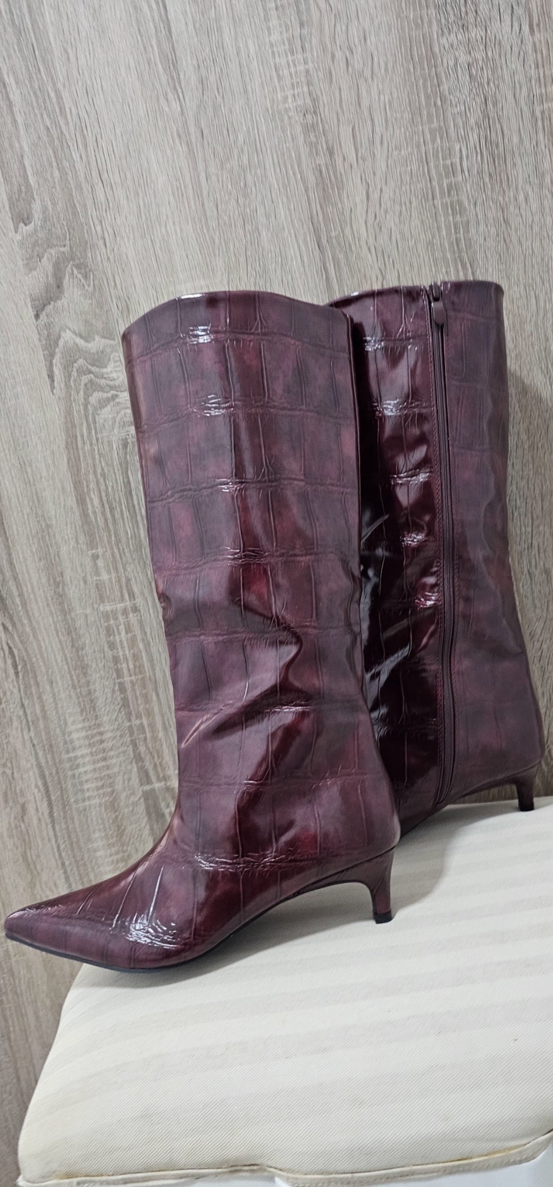 Monisima bota de caña alta con cierre de cremallera y tacon de 5cm el material es polipiel efecto Cocodrilo