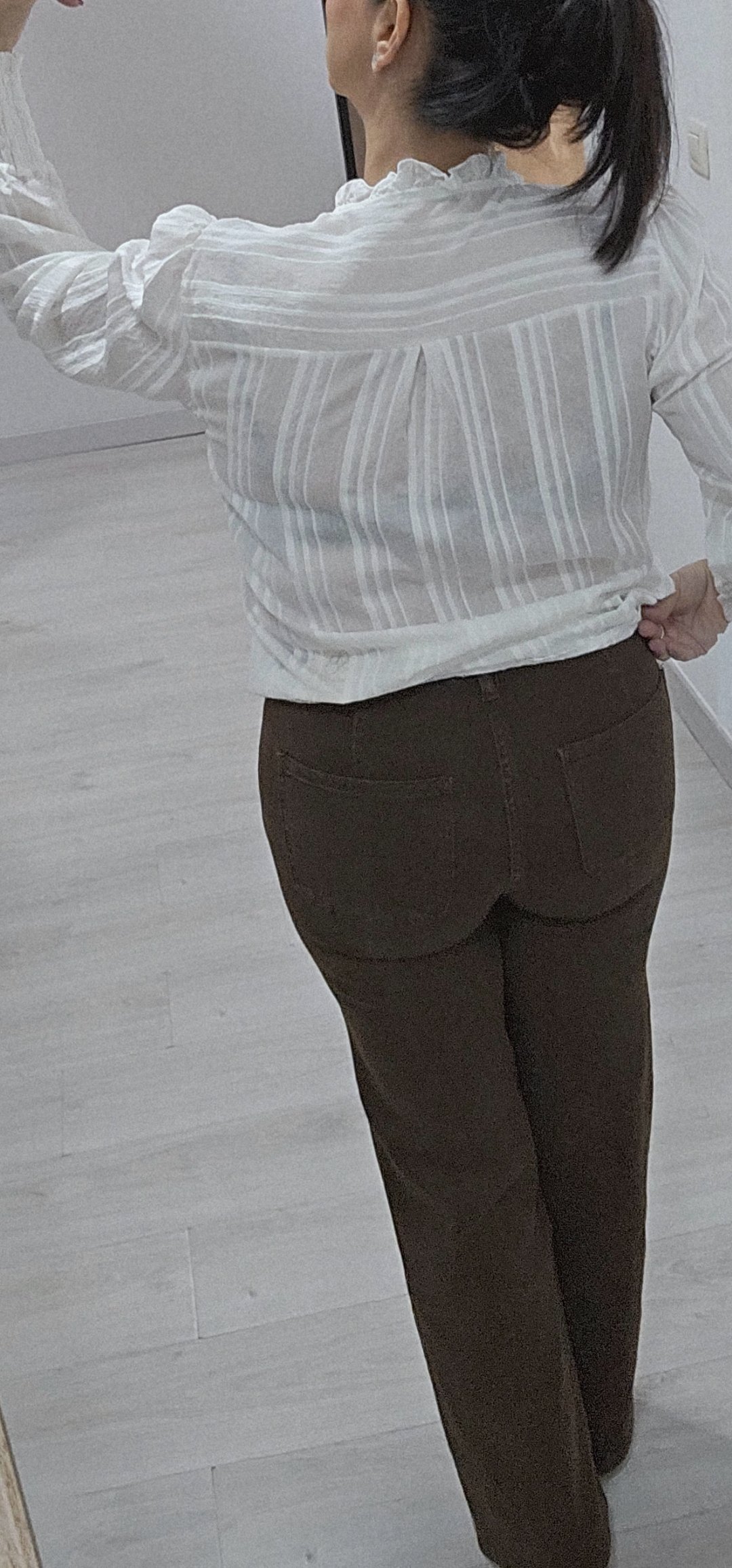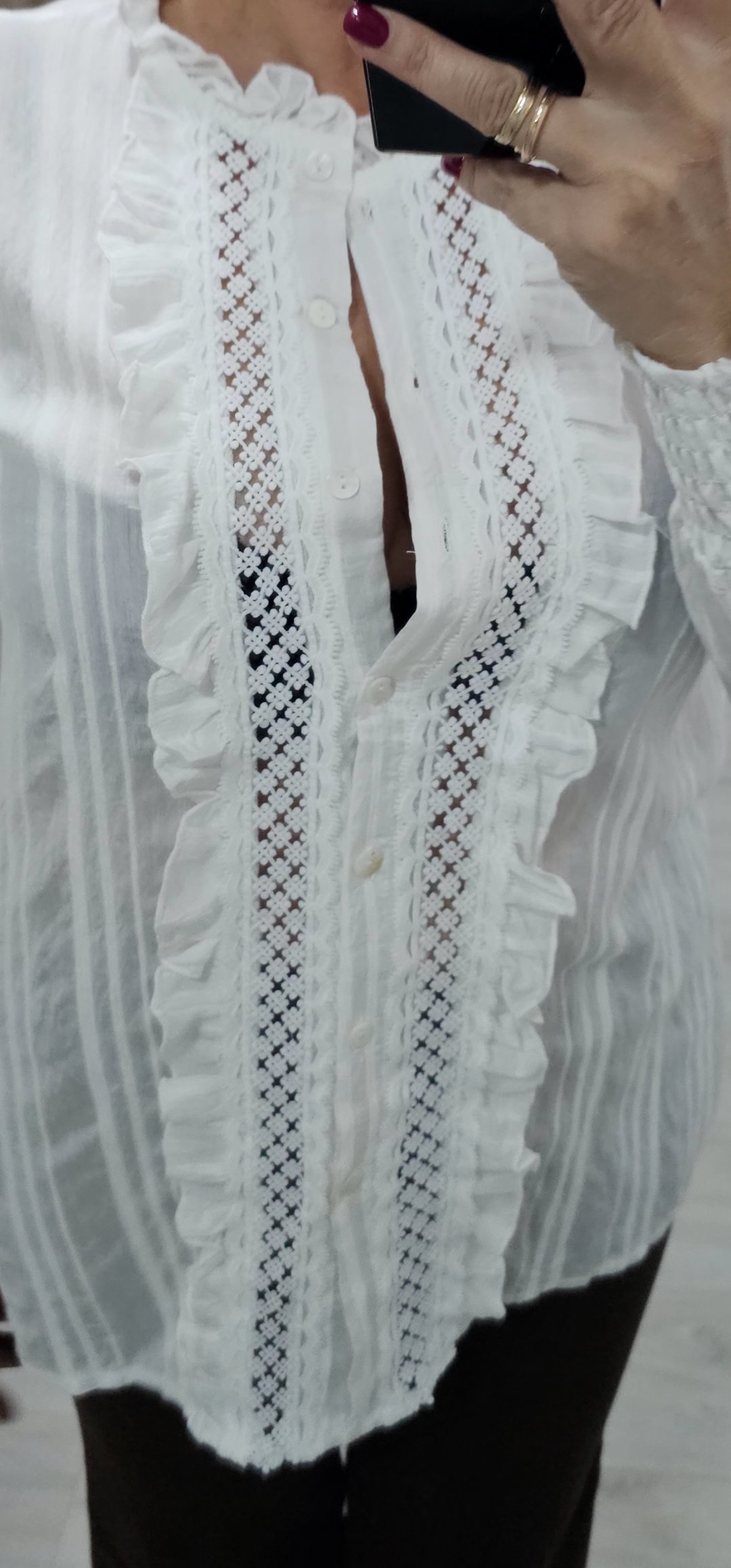 Monisima camisa abotonada con chorreras plisada y perforado con puños fruncido