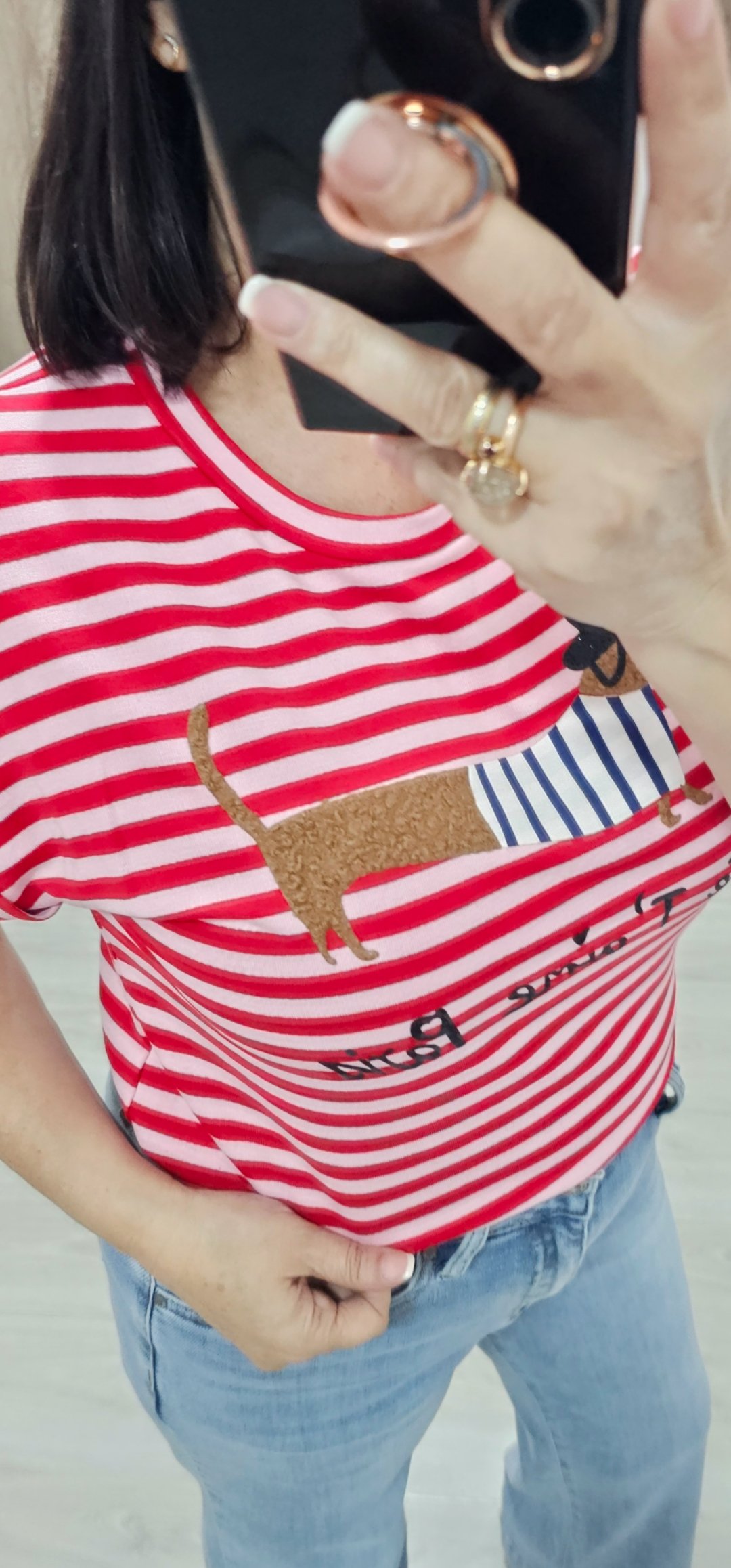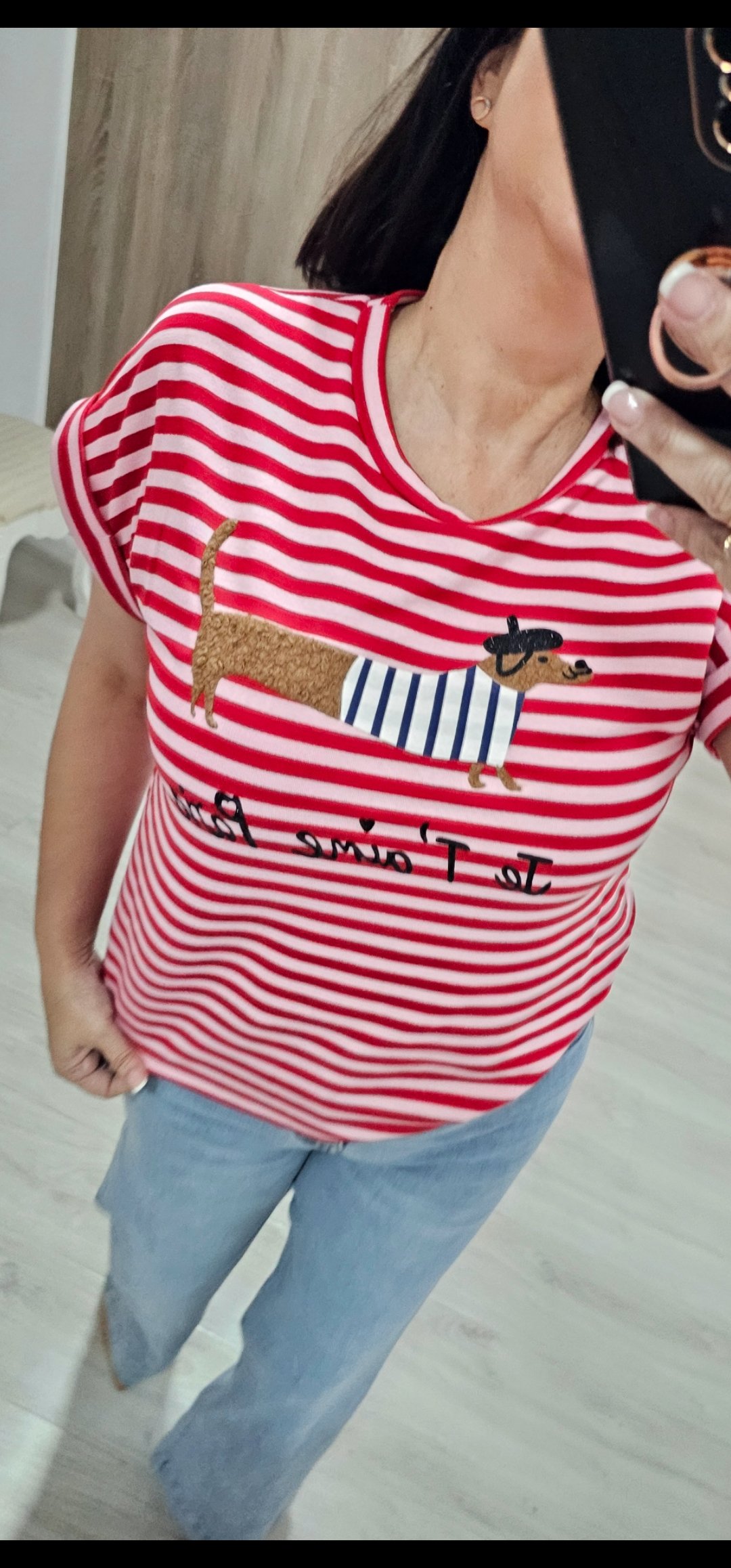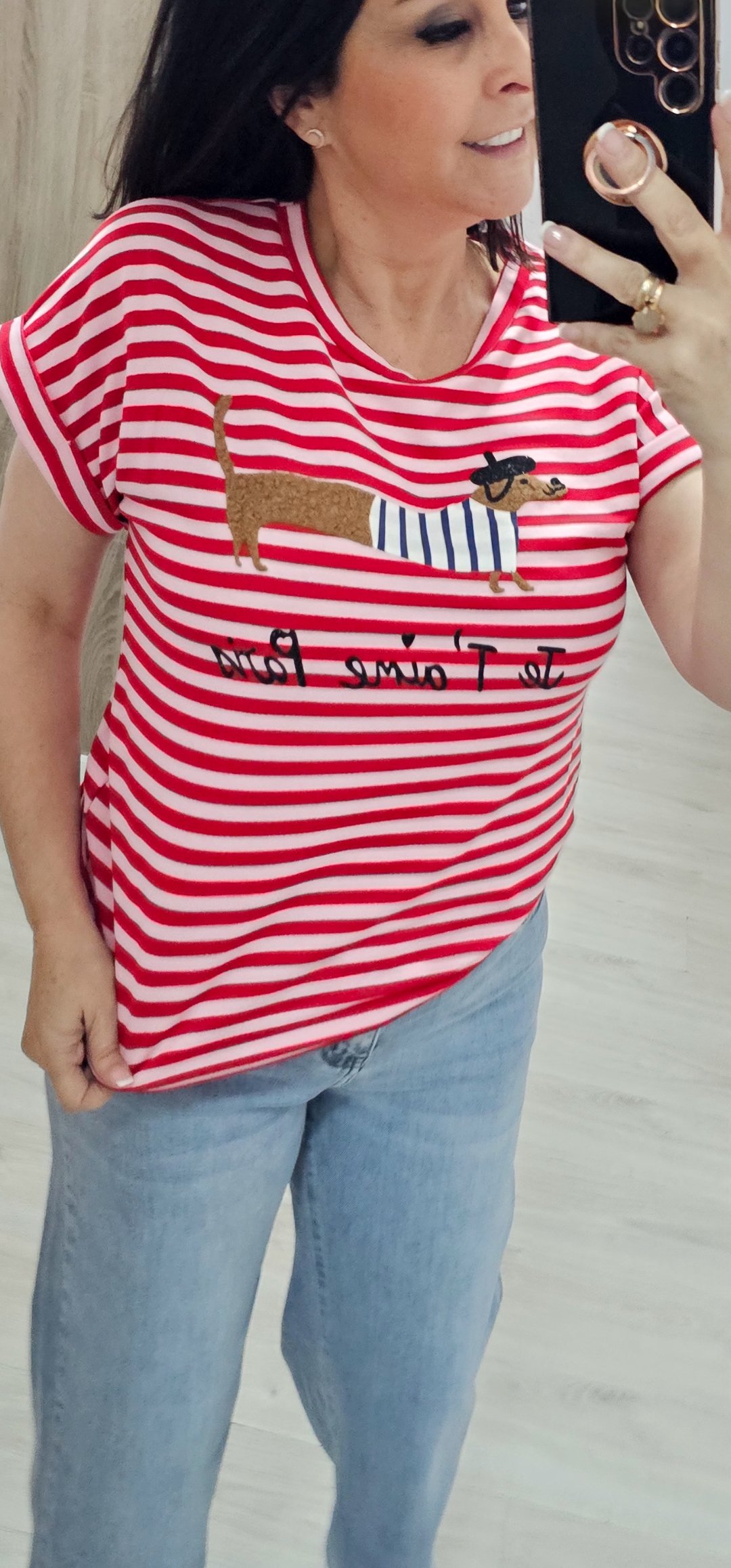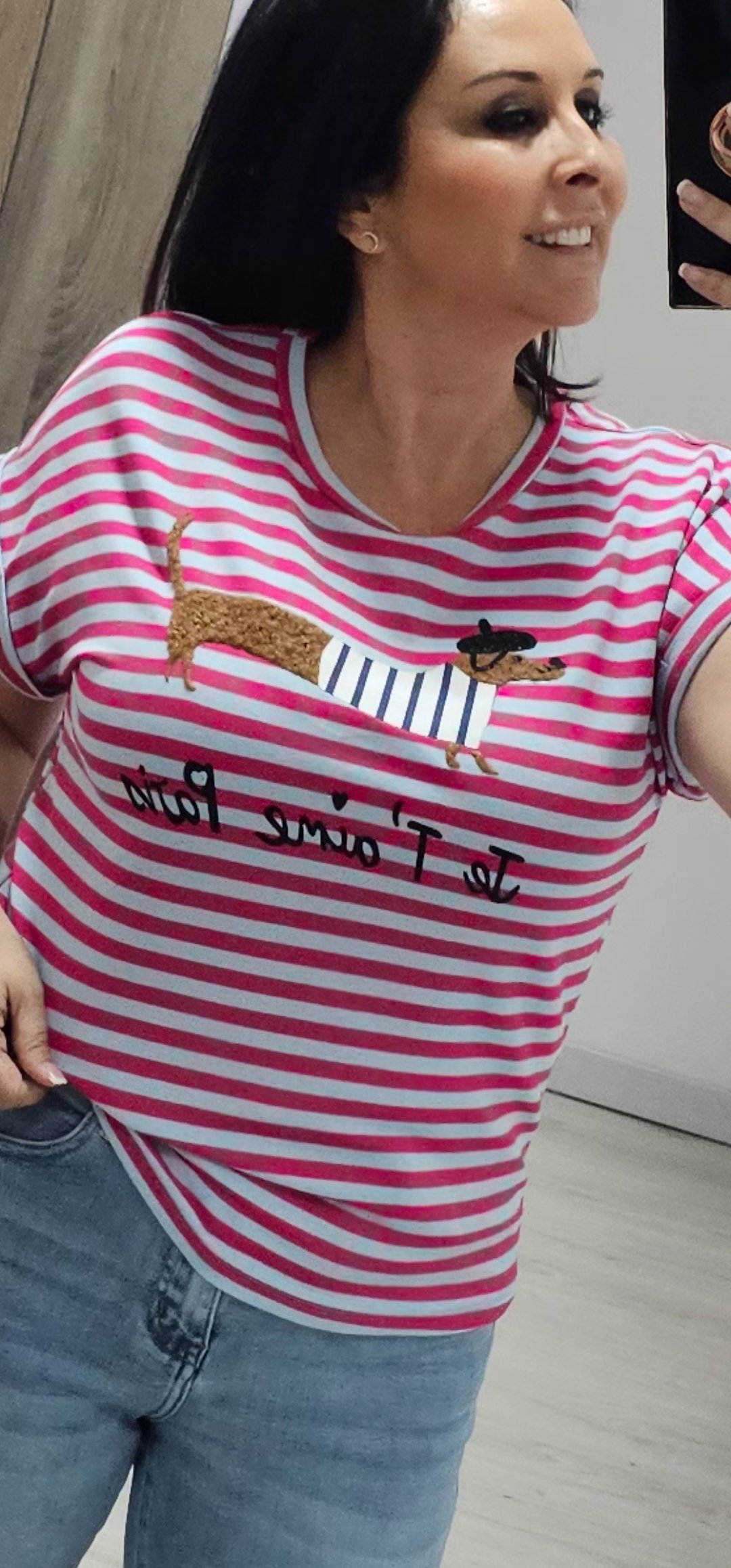 Monisima camiseta de rayas con dibujo en relieve en un tejido de felpa espectacular