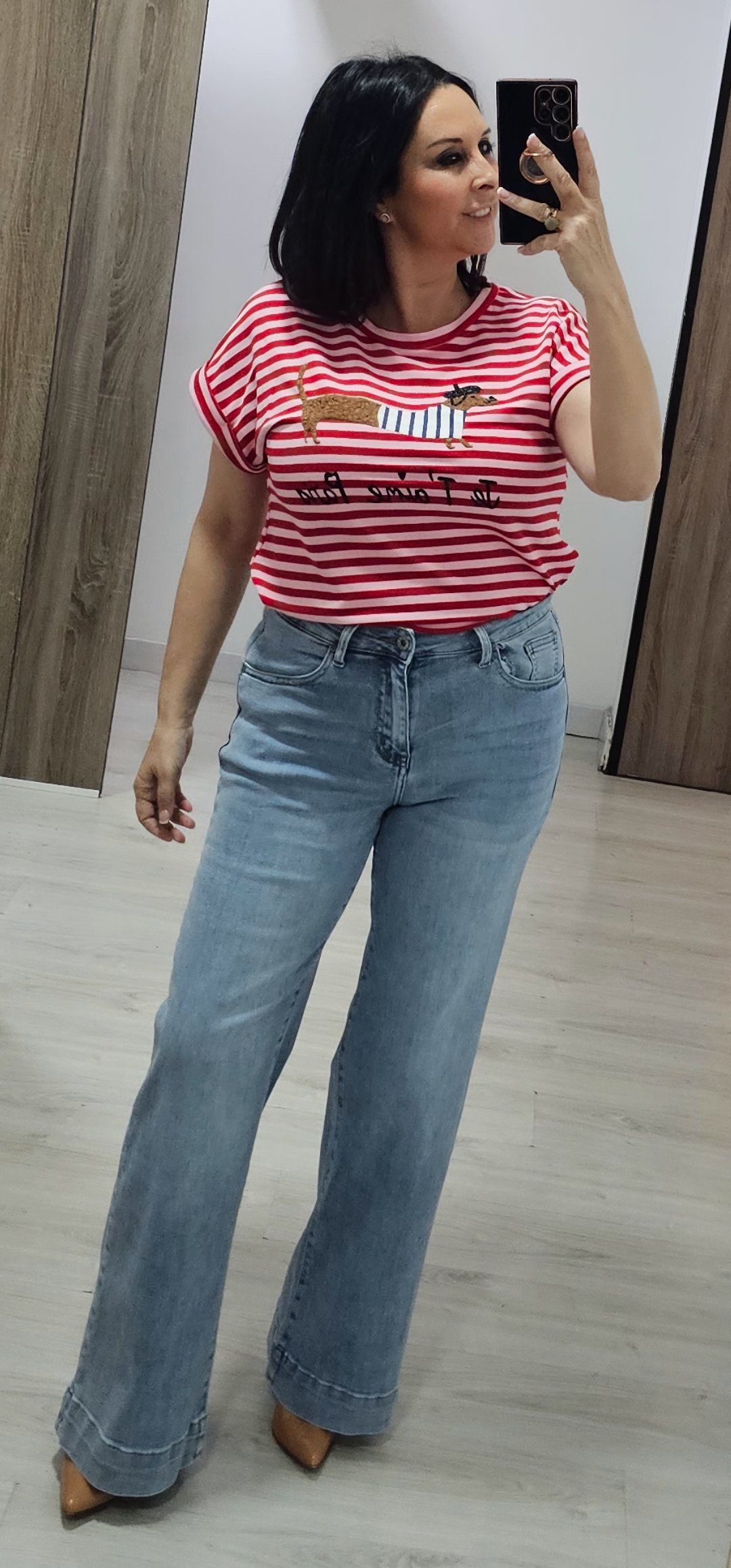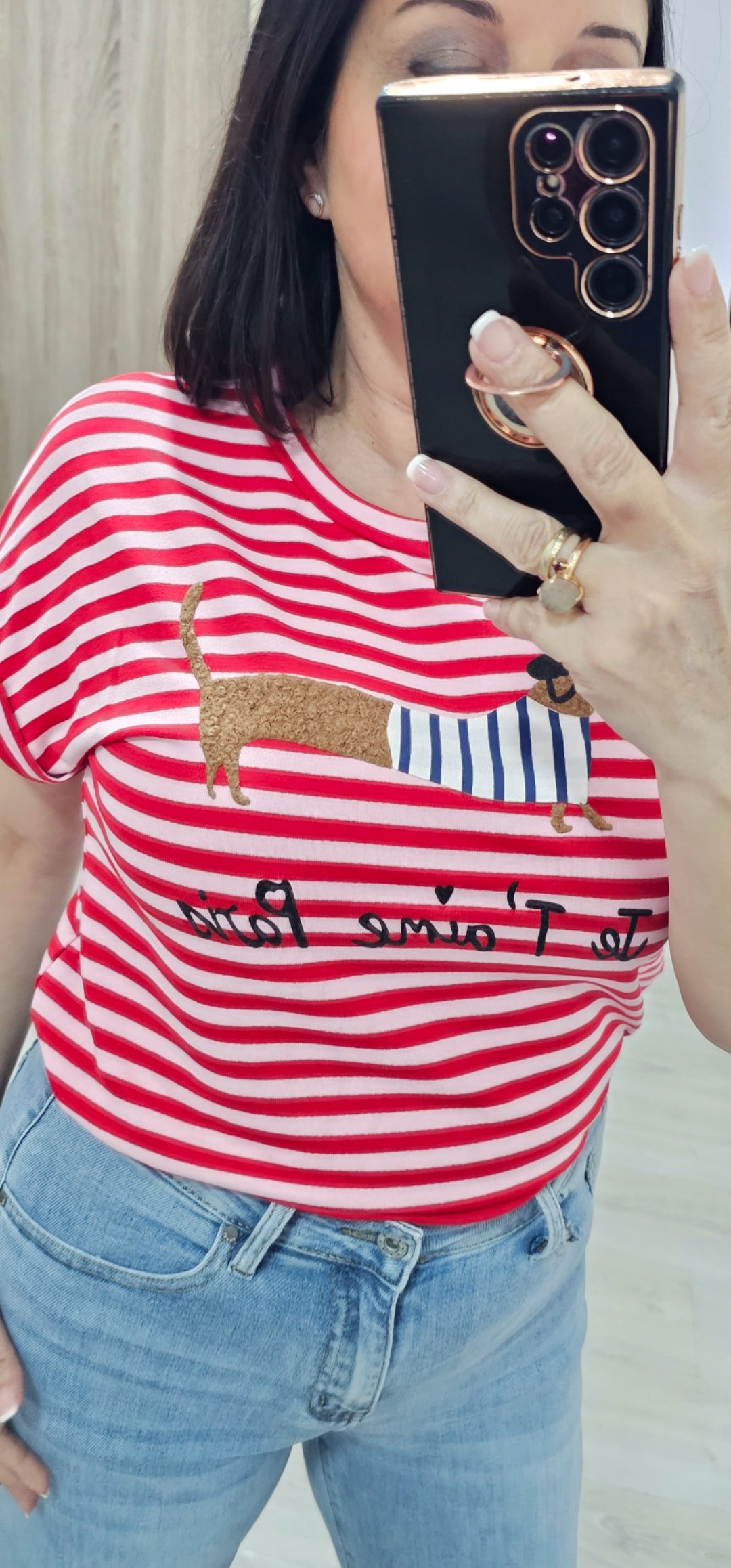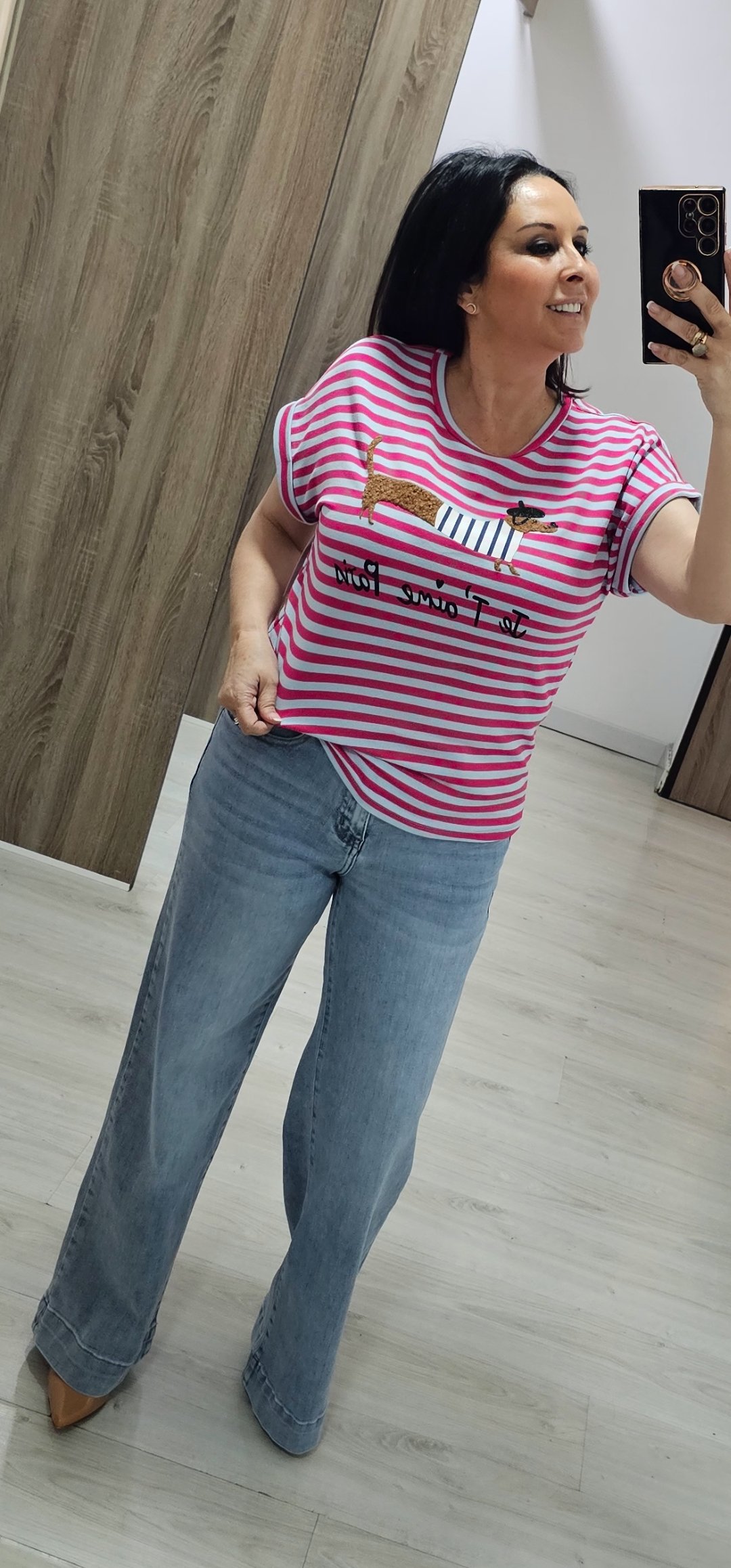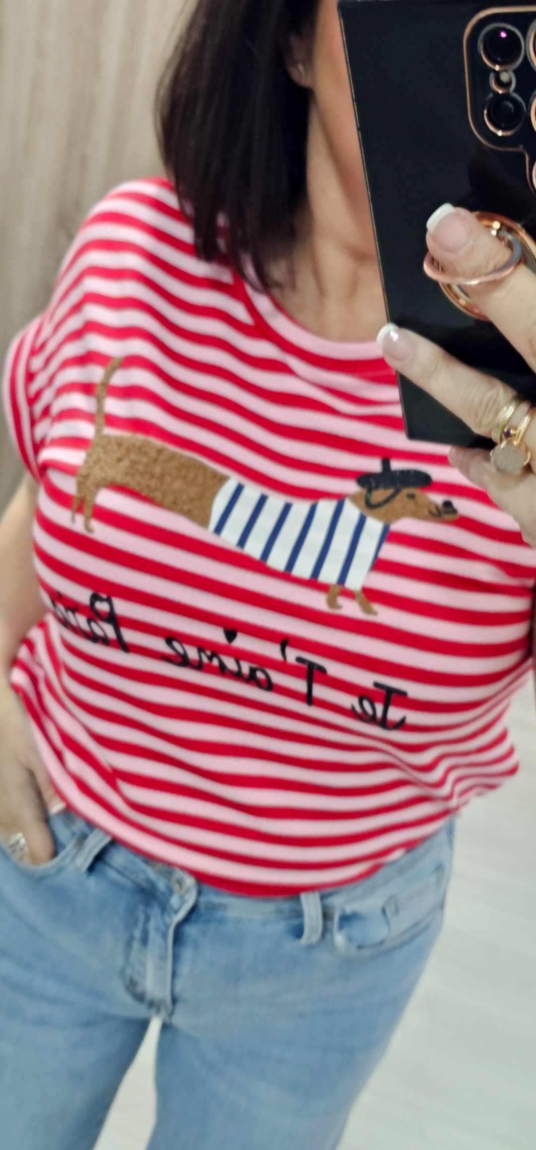 Monisima camiseta de rayas con dibujo en relieve en un tejido de felpa espectacular
