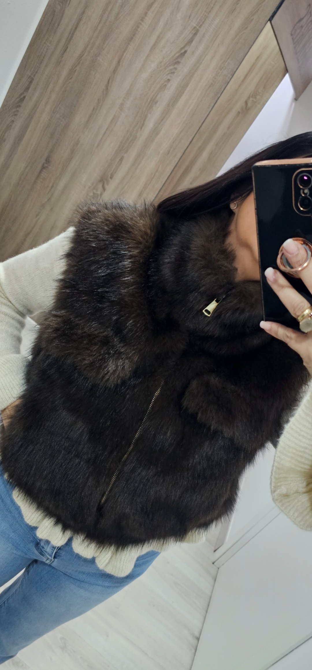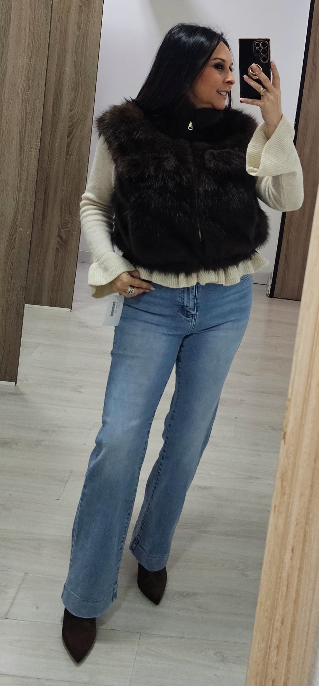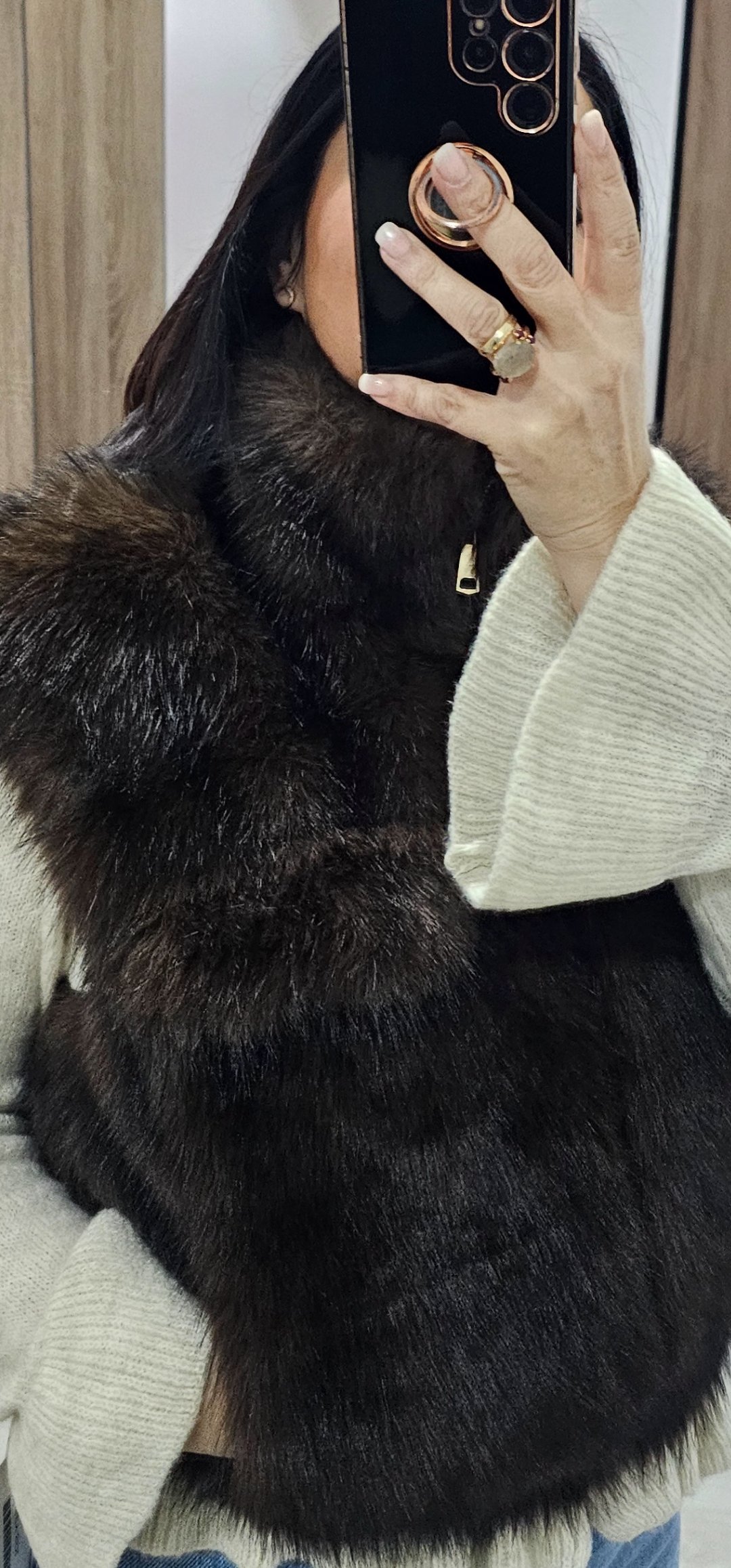 Monisimo y calentito chaleco de pelo con un corte súper bonito y elegante , color Bisión.cierre de cremallera