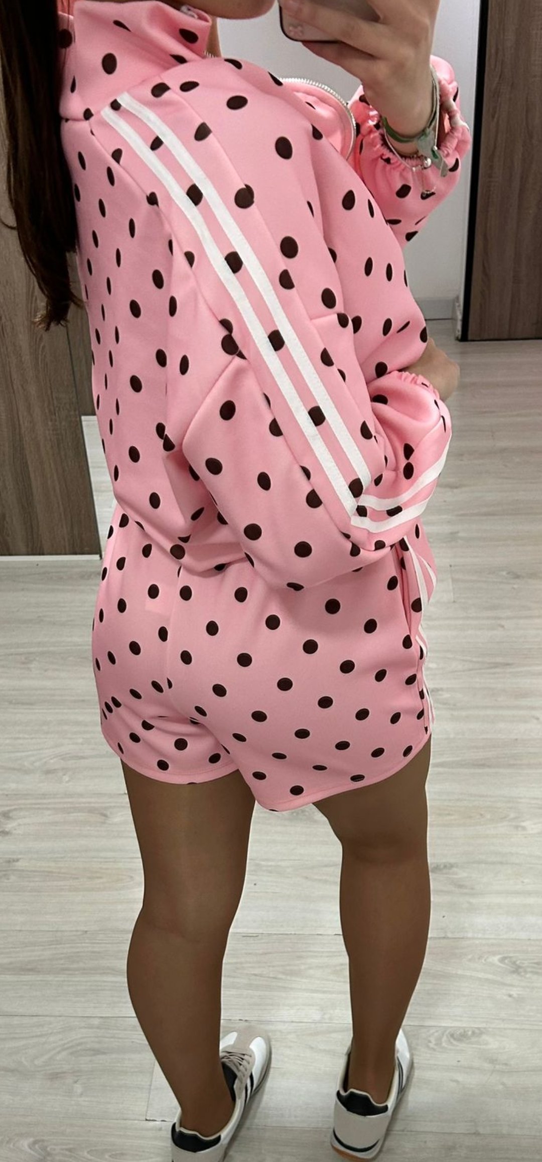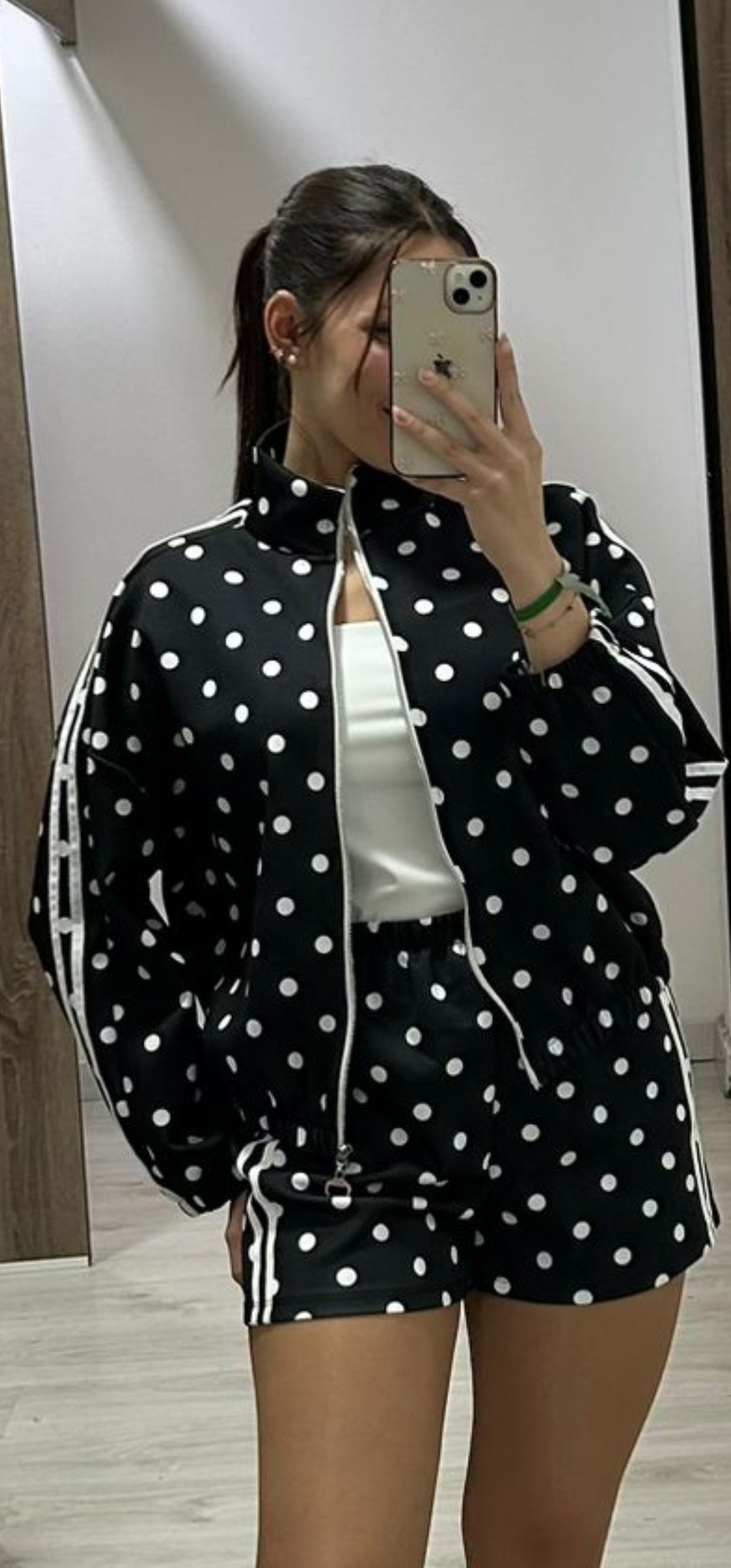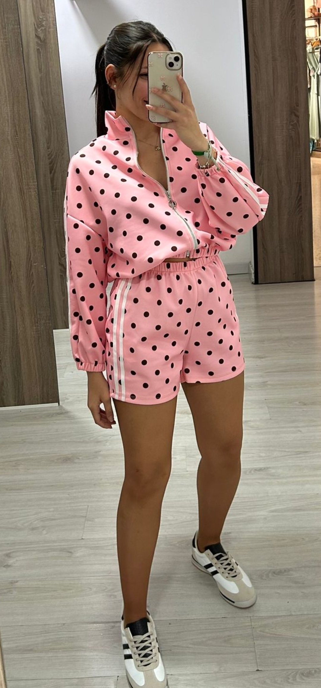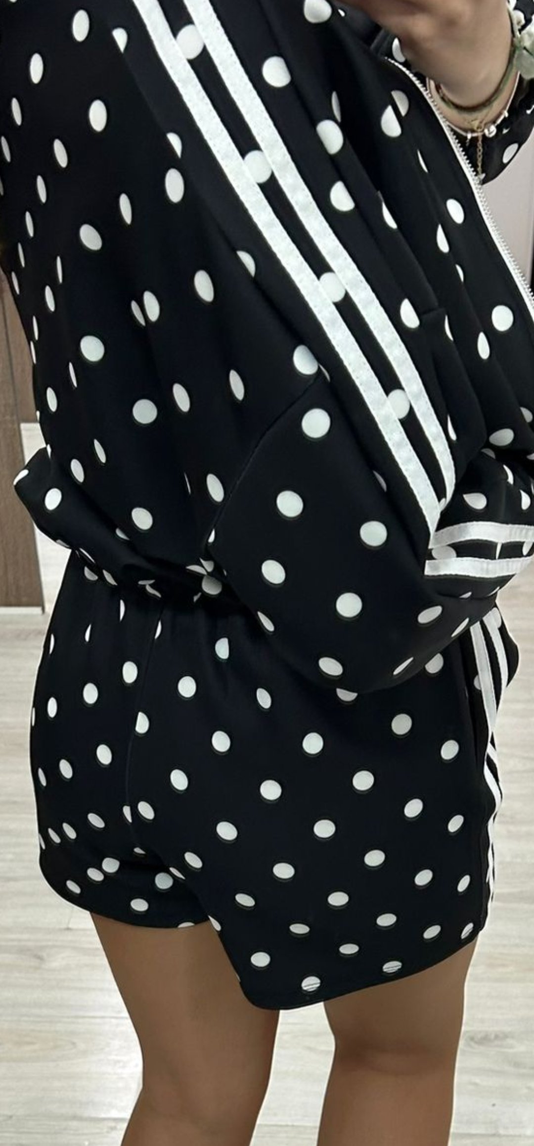 No puede tener mas arte nuestro nuevo conjunto Sport de pantalón corto con cintura elástica y bolsillos, la sudadera lleva cierre de cremallera y esta inspirado en Adidas