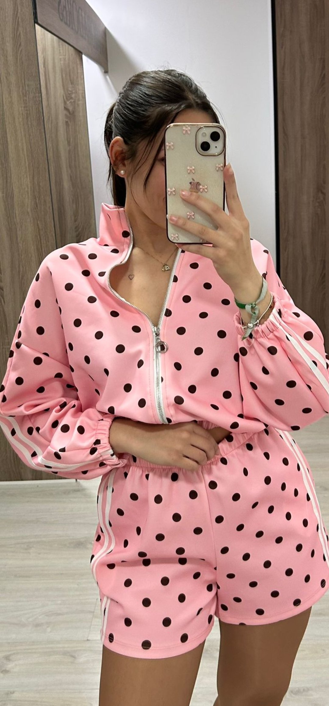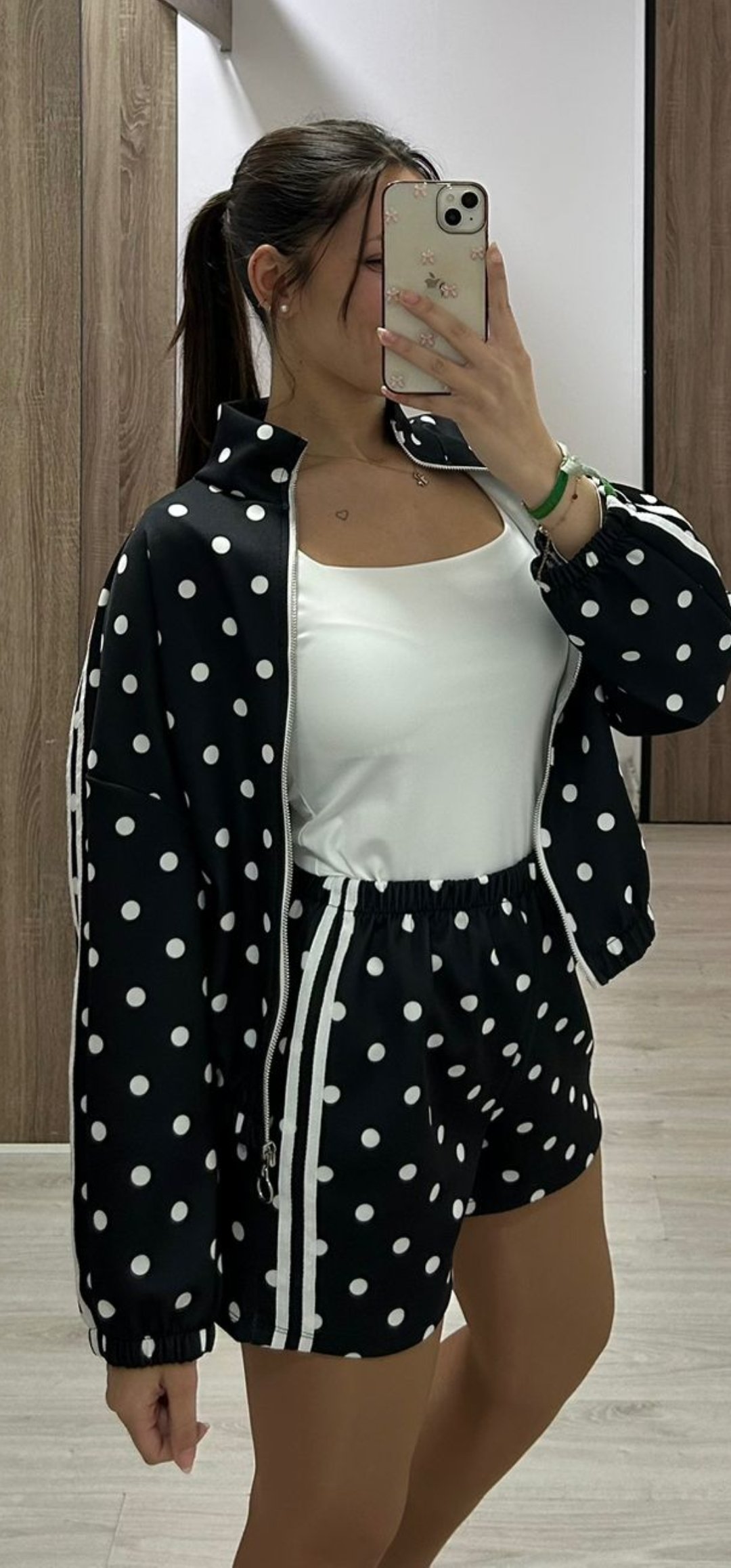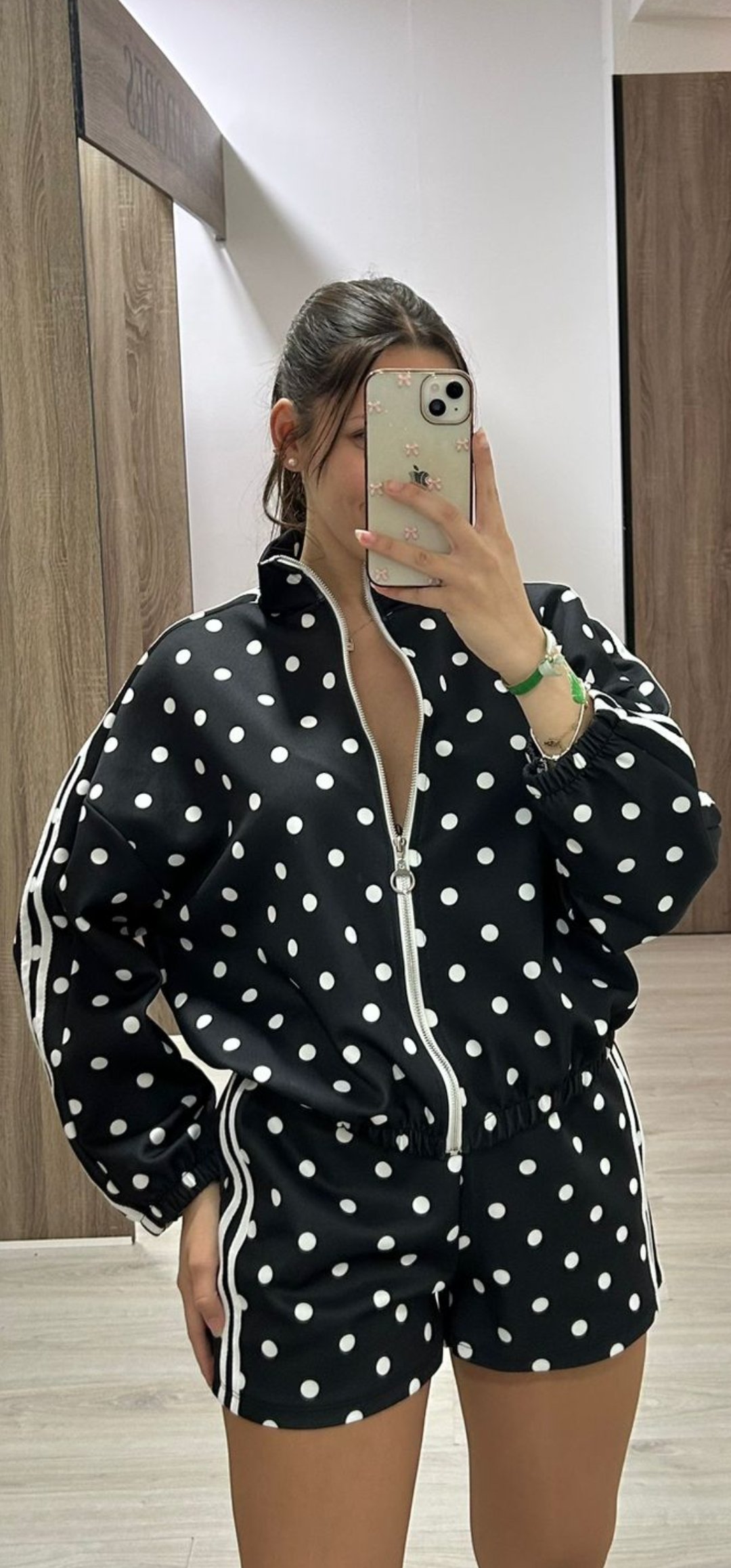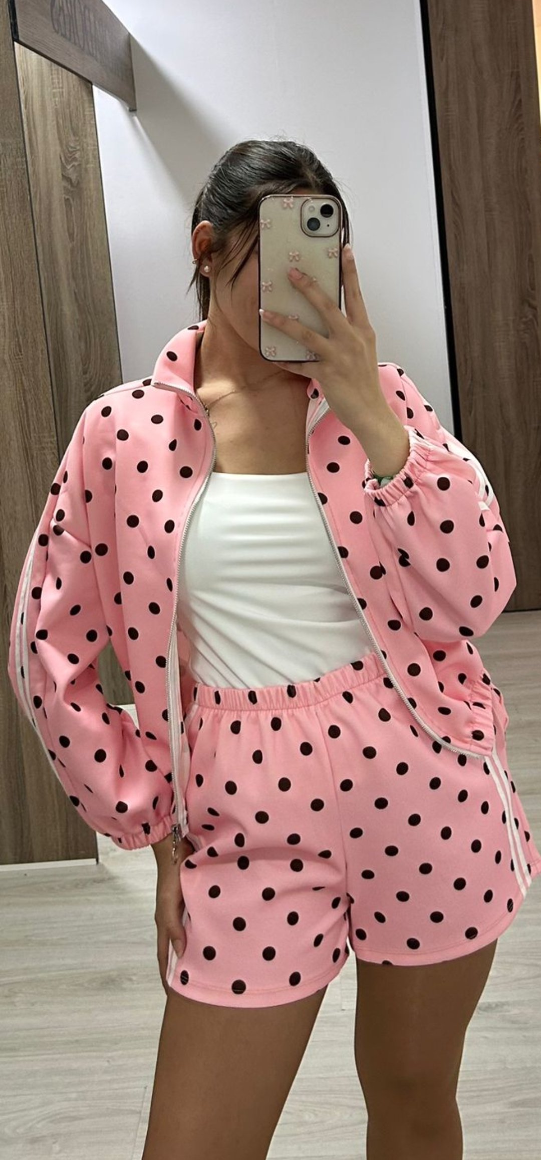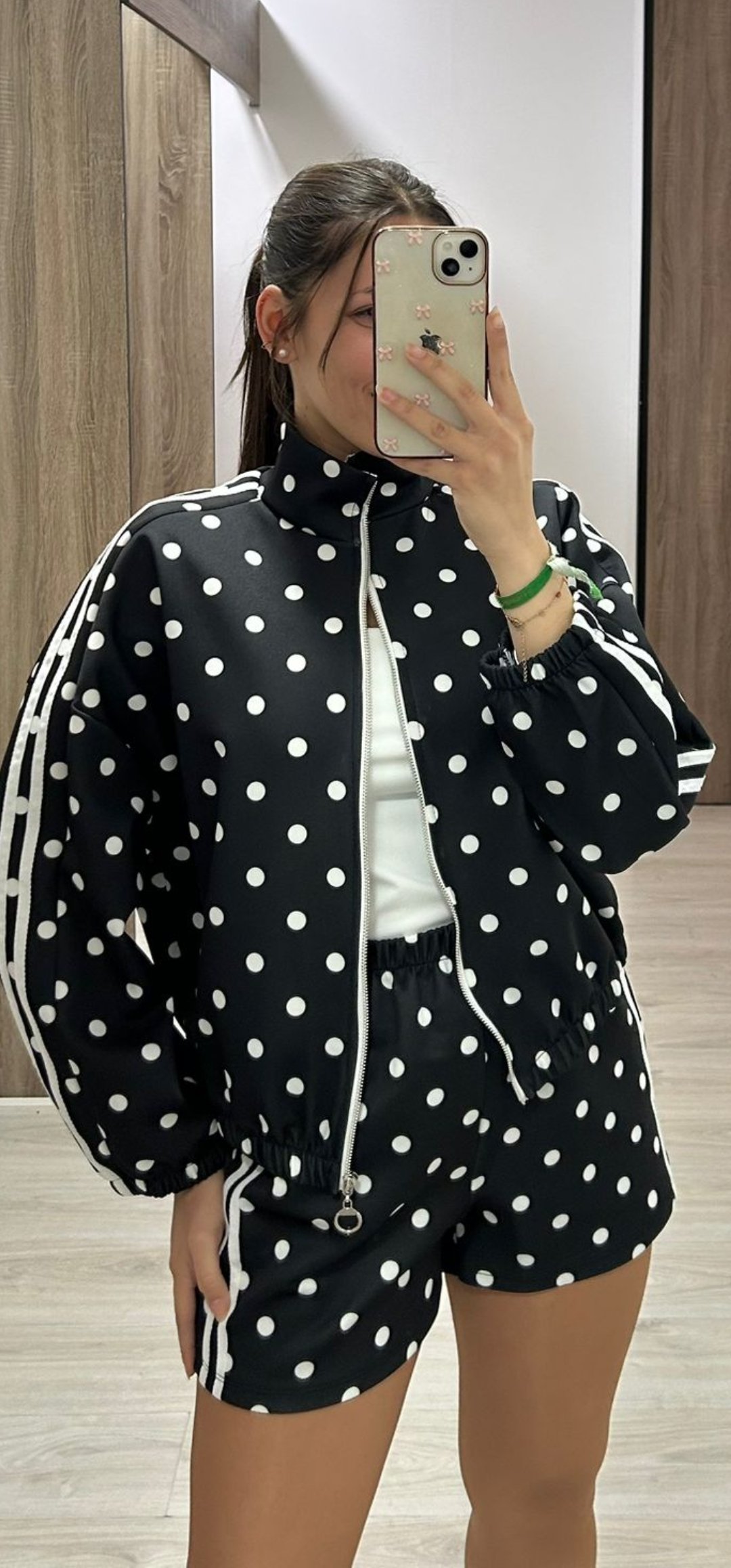 No puede tener mas arte nuestro nuevo conjunto Sport de pantalón corto con cintura elástica y bolsillos, la sudadera lleva cierre de cremallera y esta inspirado en Adidas