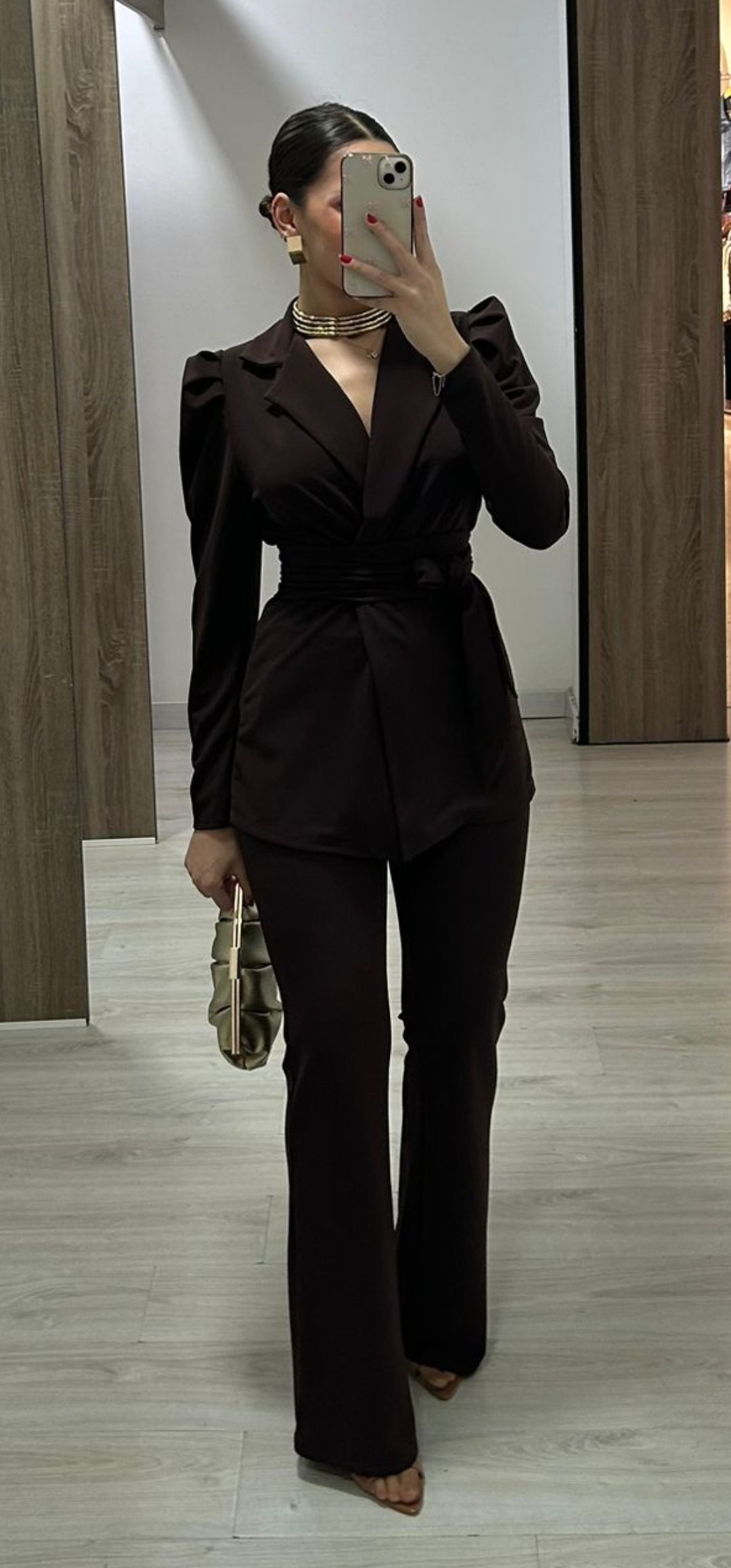 Monisimo conjunto de 2 piezas en tejido de crep elástico con un corte súper elegante y juvenil con fajin incluido y mangas semifarol