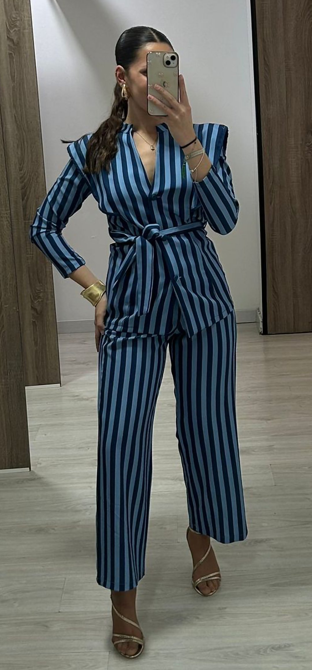 Espectacular conjunto de 2 piezas con un corte súper juvenil con chaqueta abotonada von cinturón , el pantalón es tipo culotte y lleva cierre de botón y cremallera, el tejido es espectacular