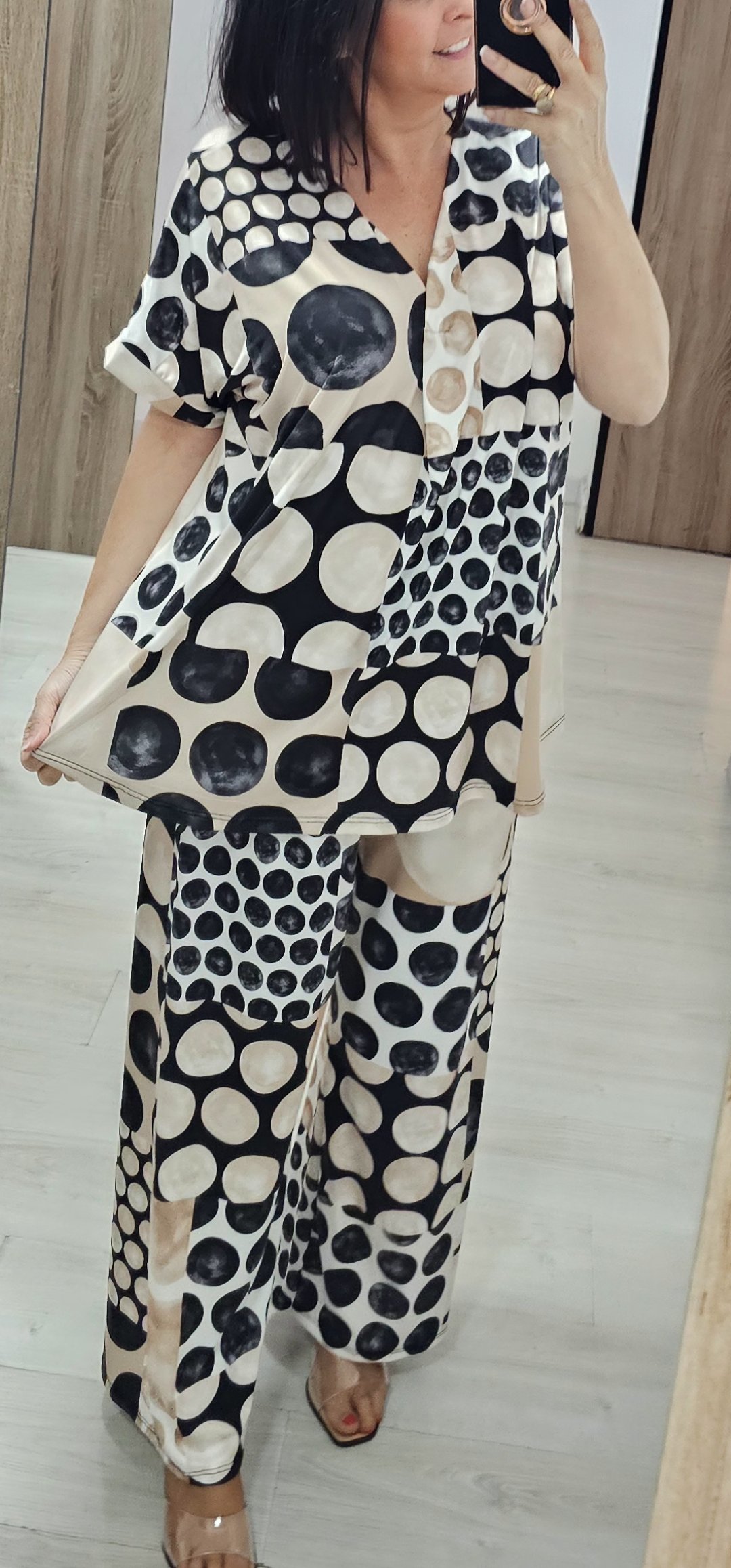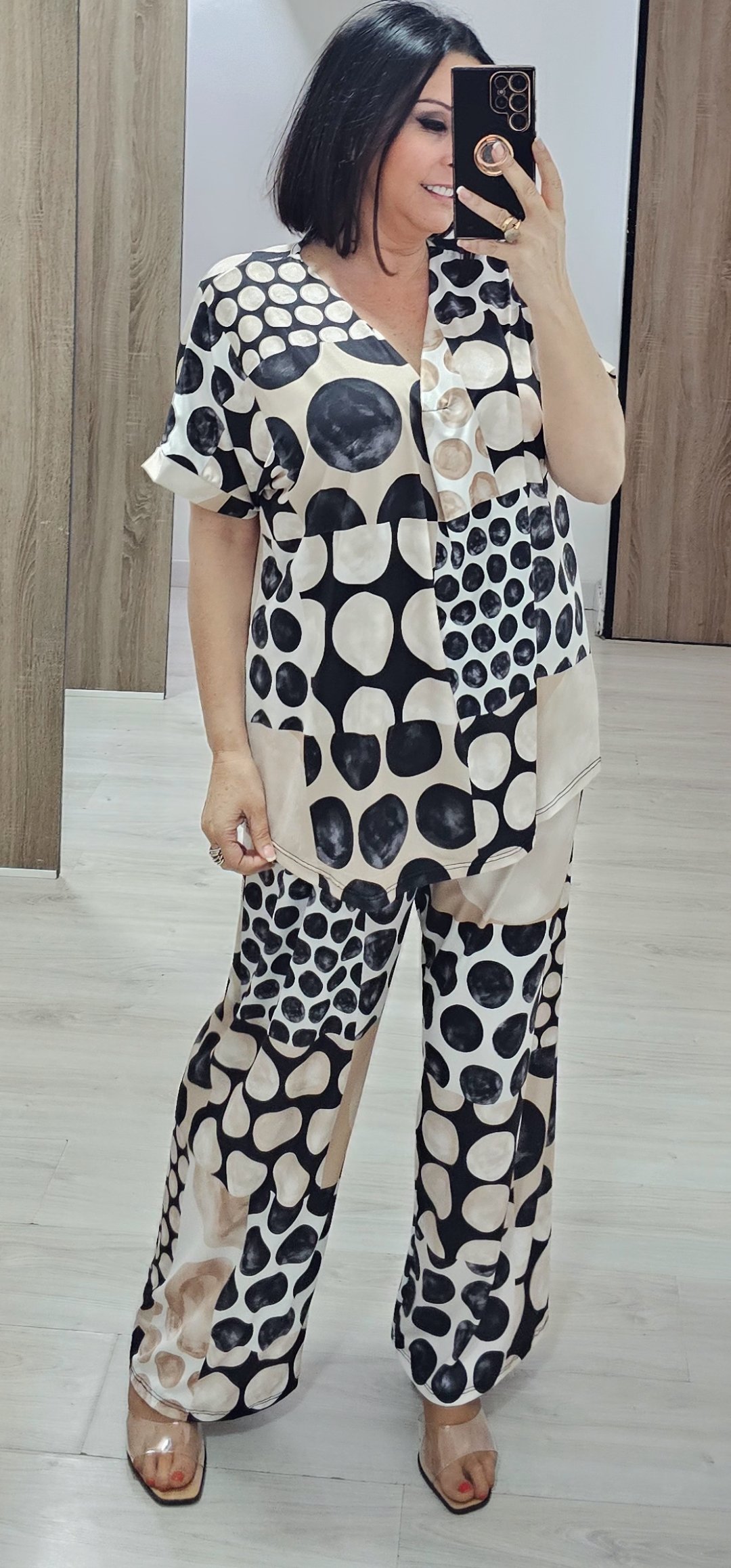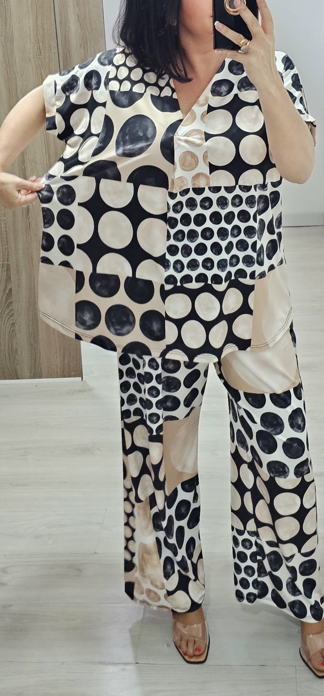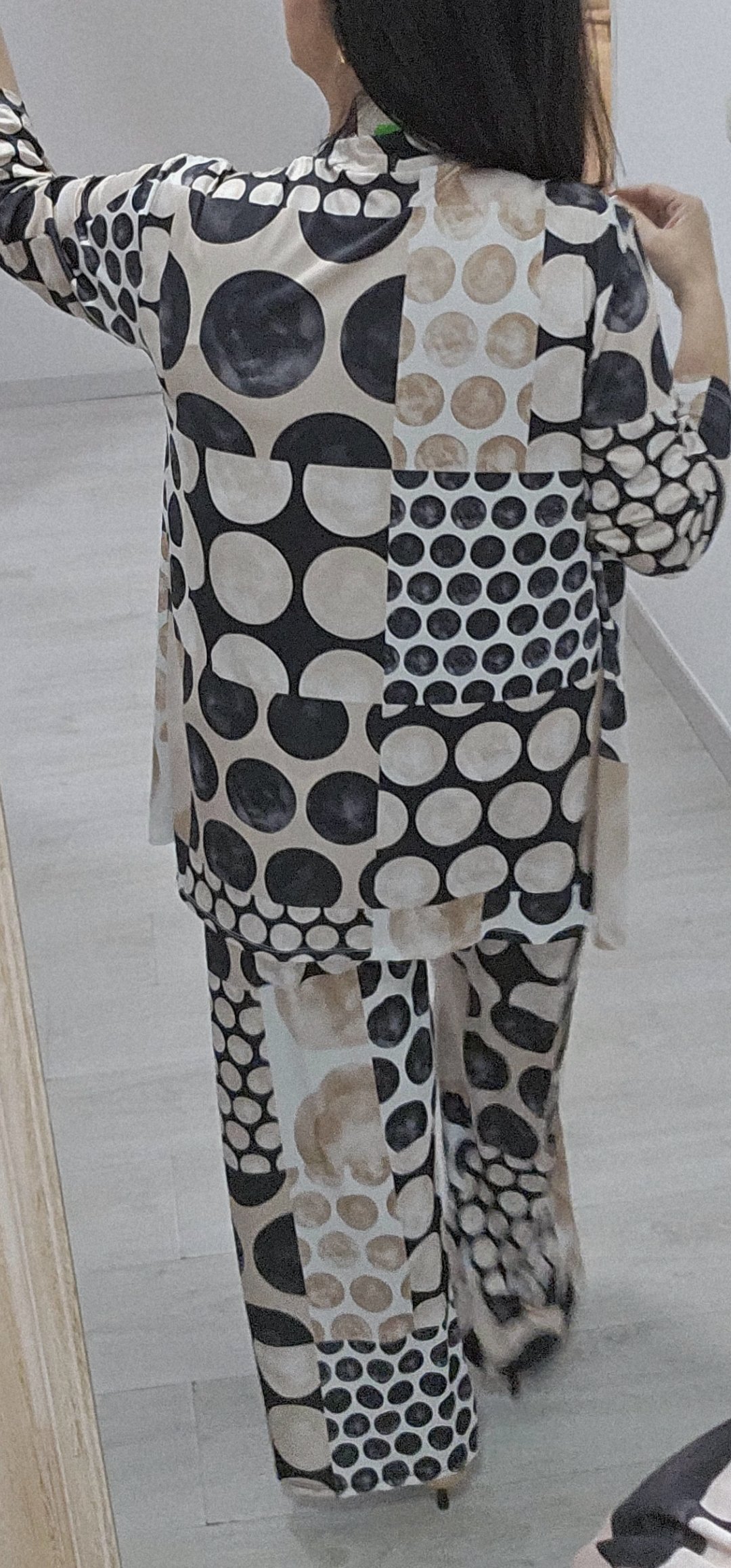os dejo 2 look en tejido de licra fria ideal para llevar súper cómodo y ligero, el pantalón lleva cintura elástica la blusa de mangas corta lleva escote de pico y es bastante ancha ,el modelo que es kimono lleva como si fuera una camiseta y es incorporado es una pieza solo