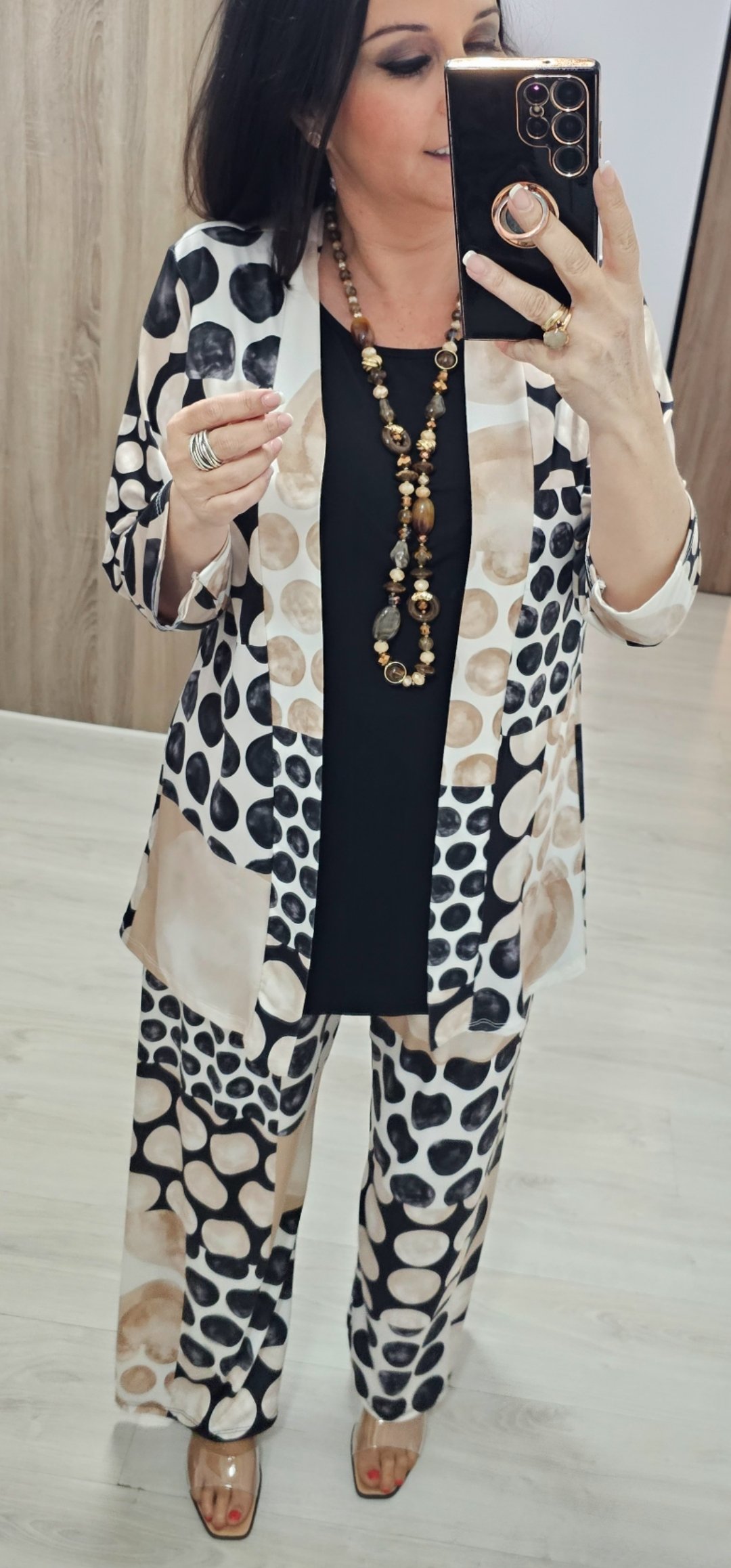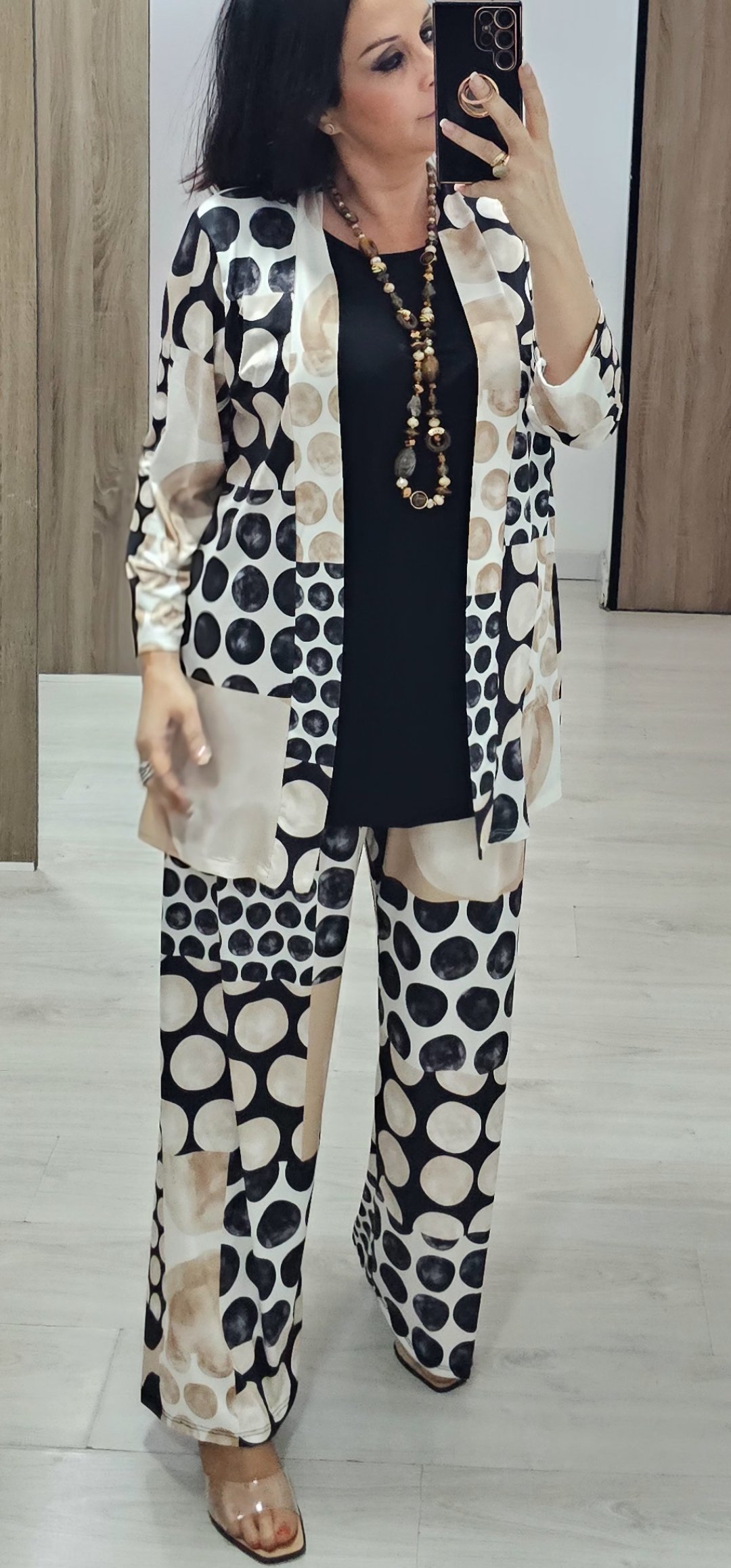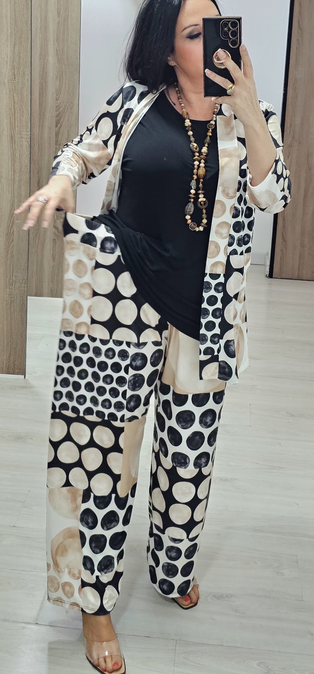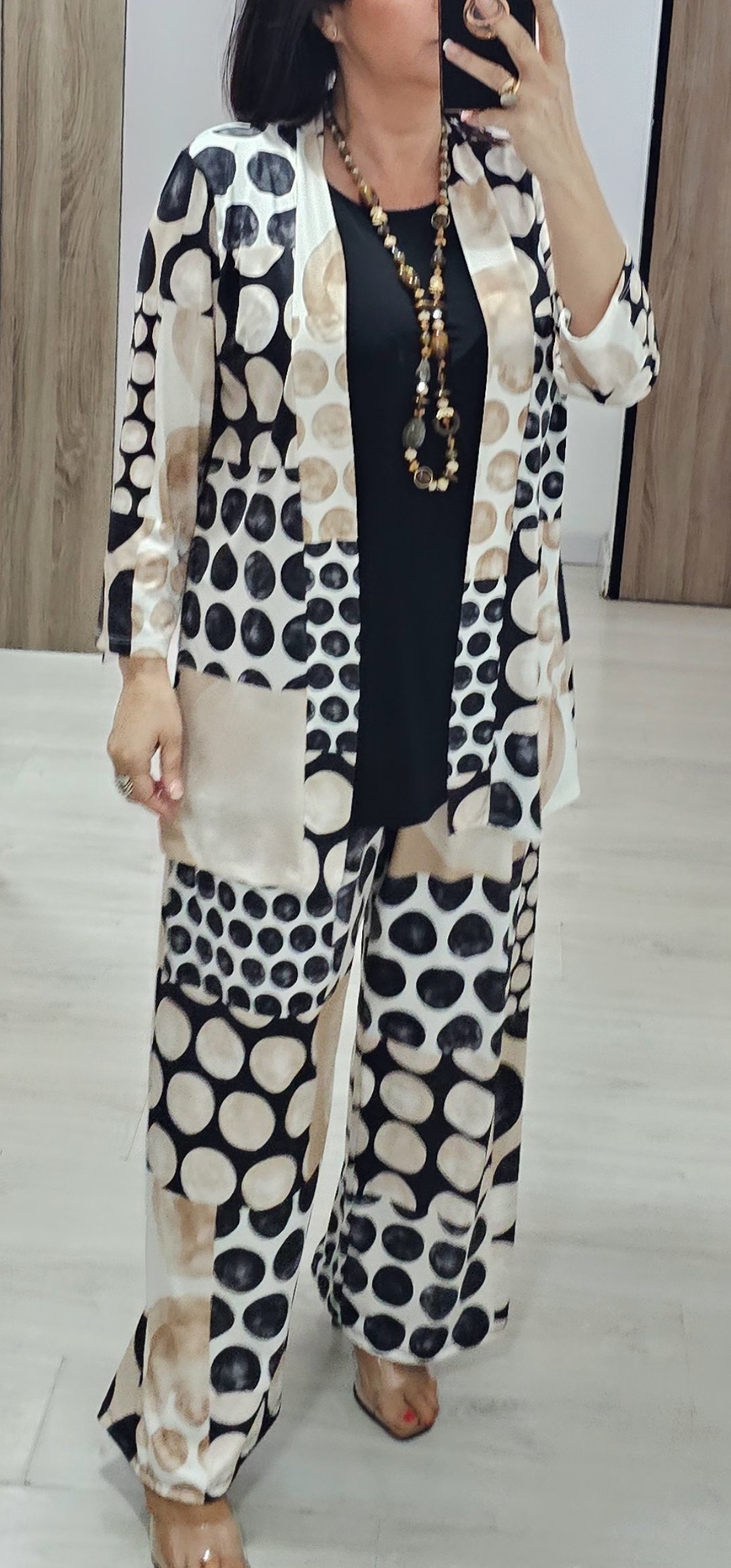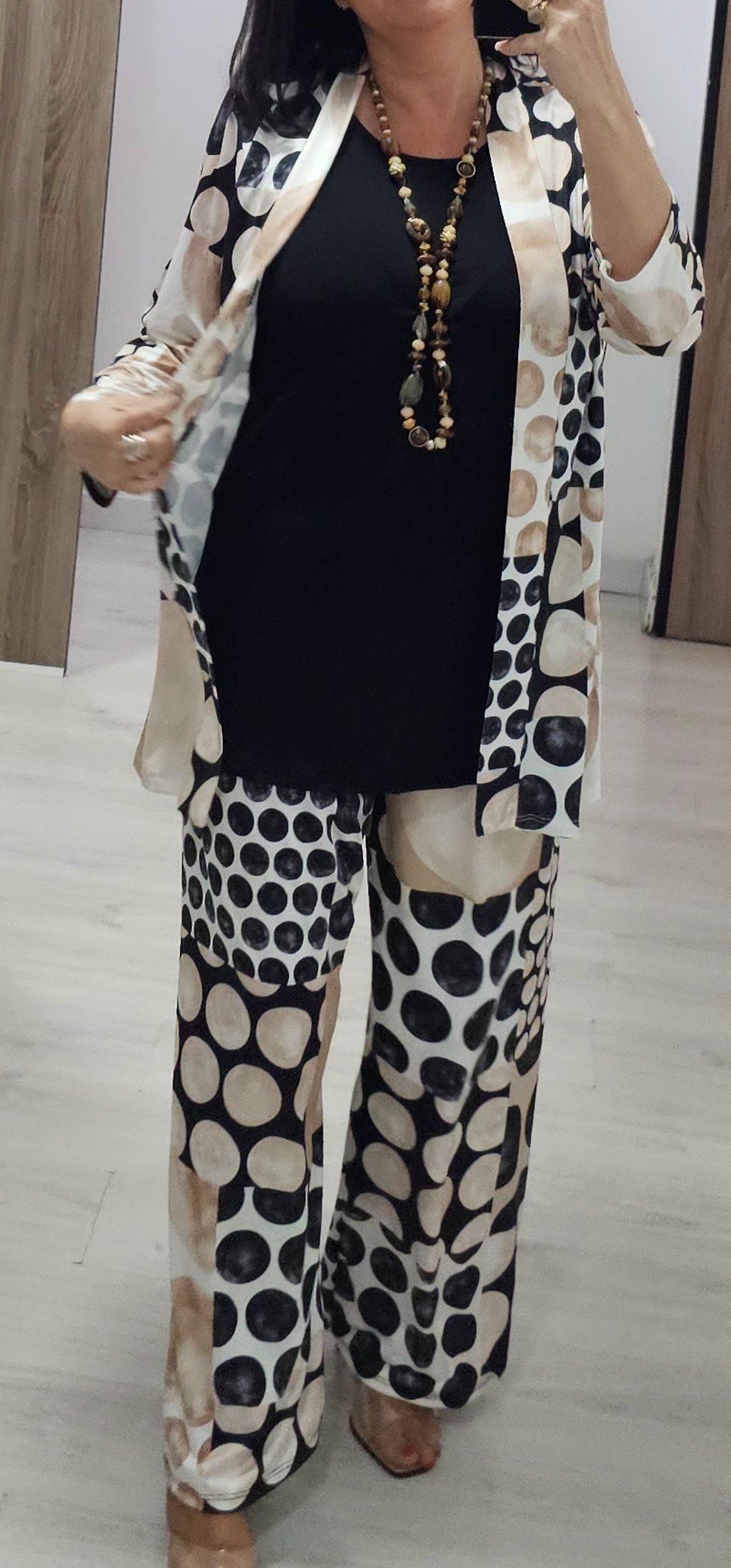 os dejo 2 look en tejido de licra fria ideal para llevar súper cómodo y ligero, el pantalón lleva cintura elástica la blusa de mangas corta lleva escote de pico y es bastante ancha ,el modelo que es kimono lleva como si fuera una camiseta y es incorporado es una pieza solo