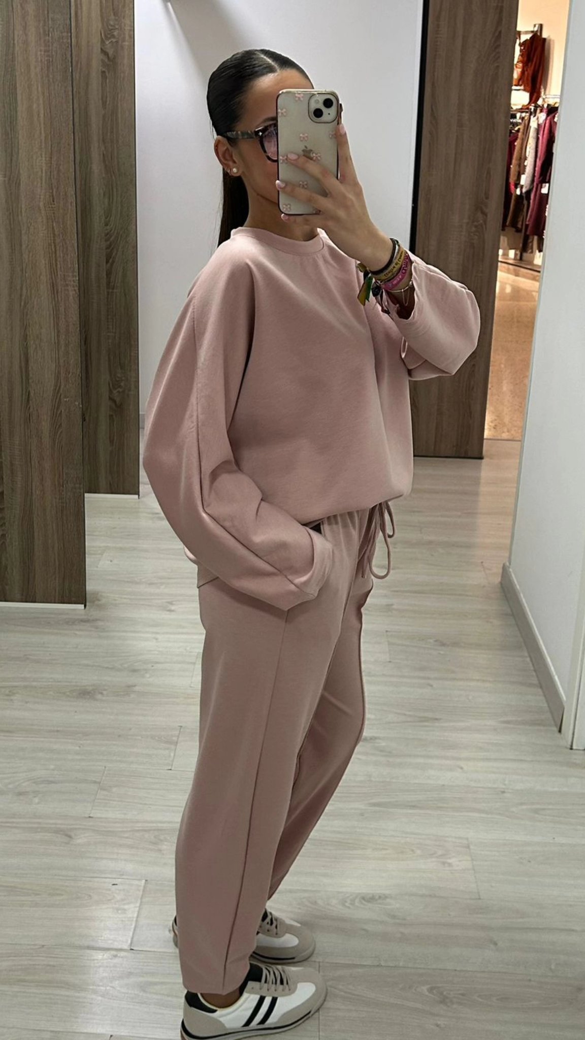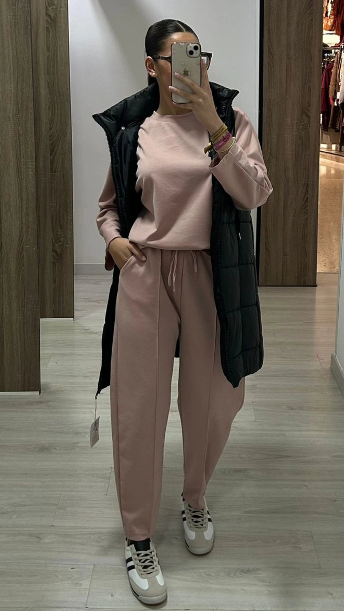 Monisimo chándal Sport en tejido de capa de aire un tejido que nos encanta , el pantalón trae cintura elástica y la forma de la pata es tipo balón, la sudadera es sueltecita