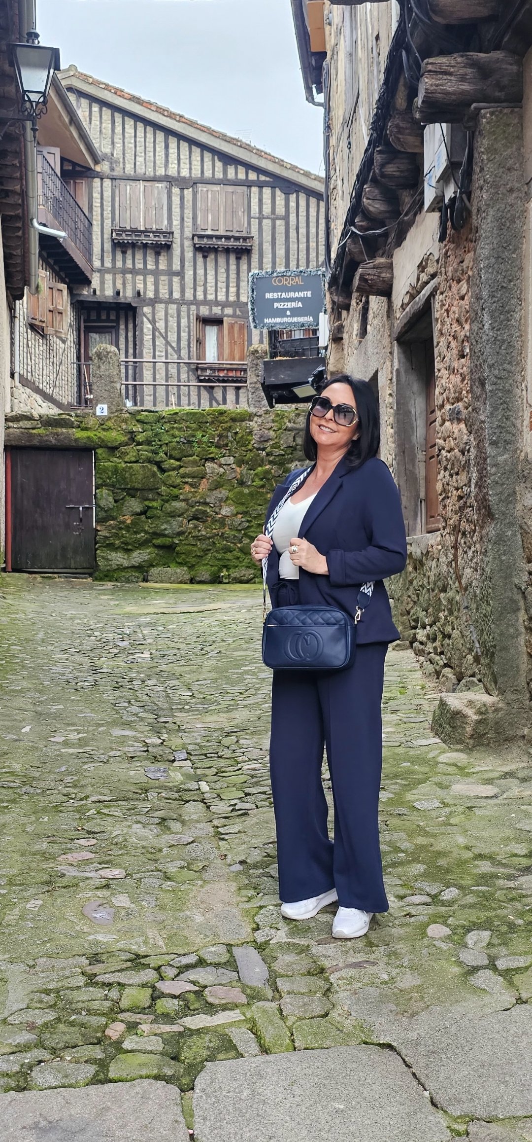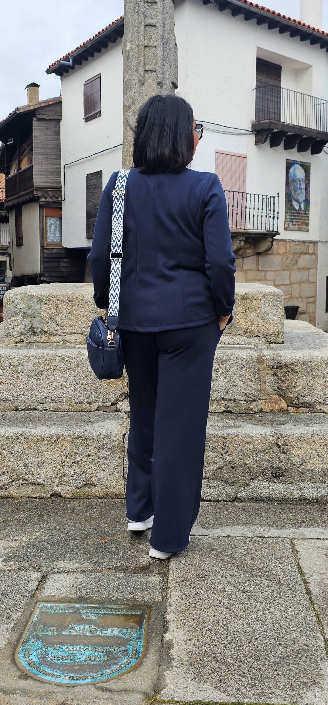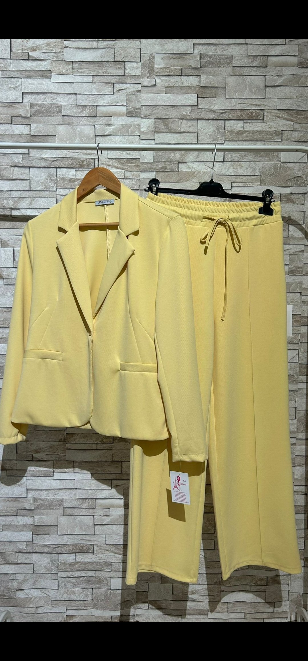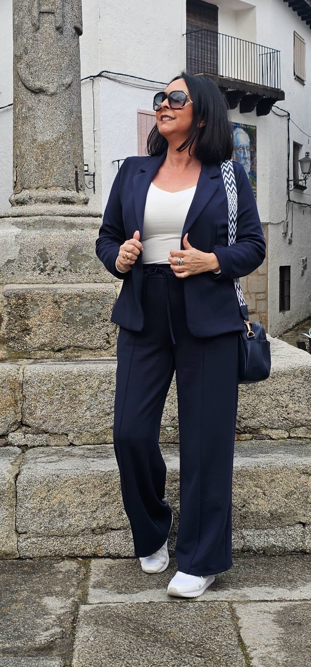 Monisimo conjunto de 2 piezas tipo chándal pero con un corte súper elegante y deportivo ,el pantalón lleva cintura elástica con cordón y bolsillos, la chaqueta es elástica y lleva cierre de botón