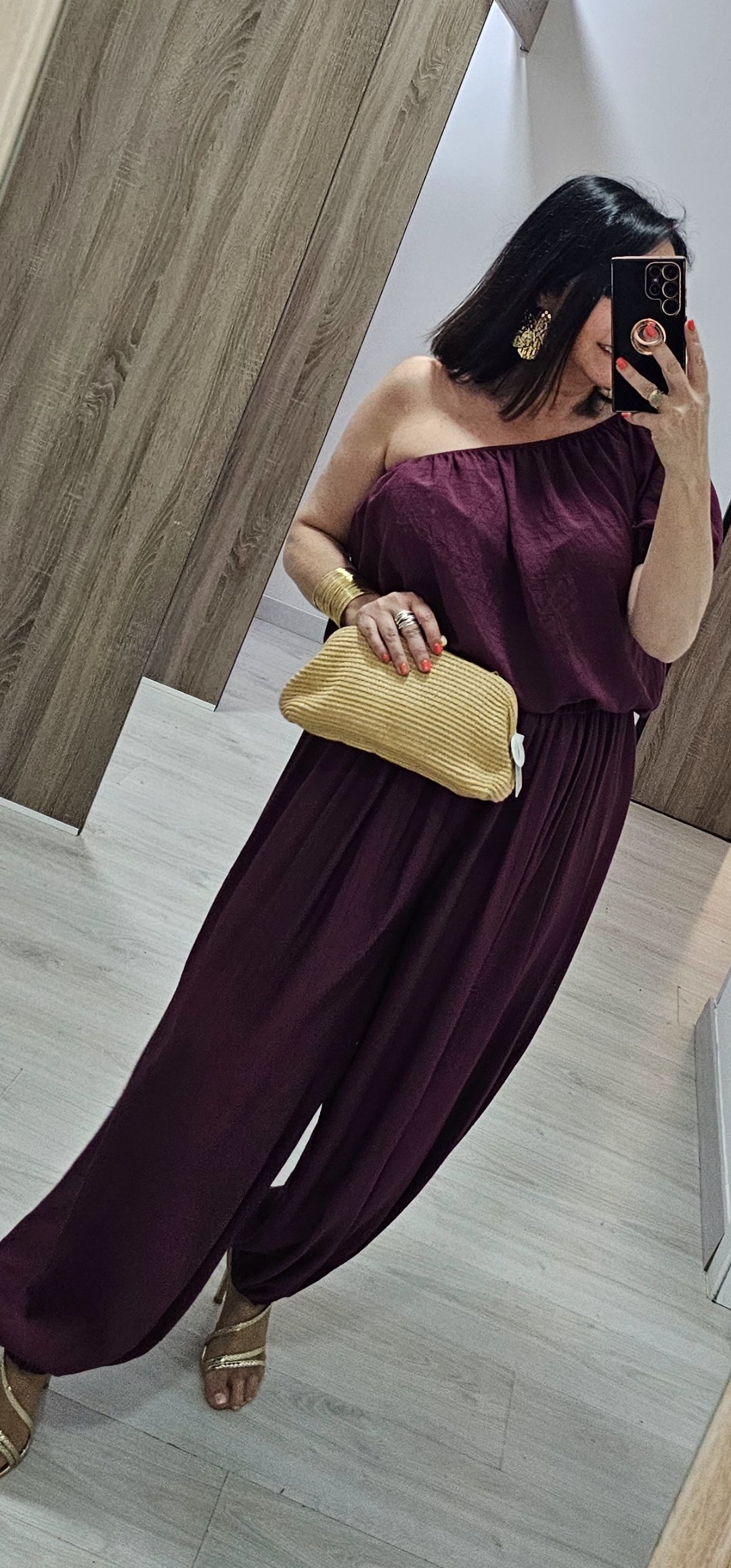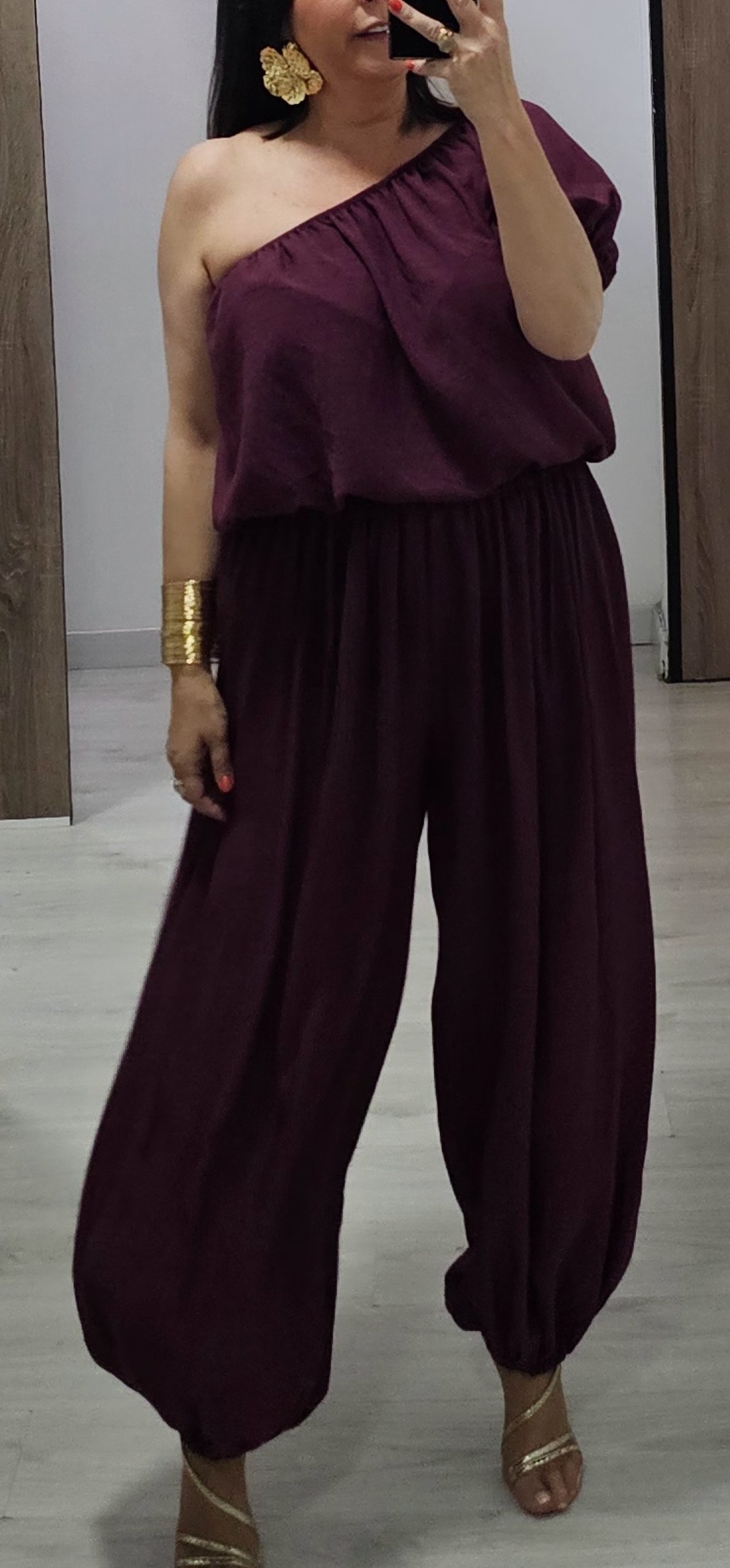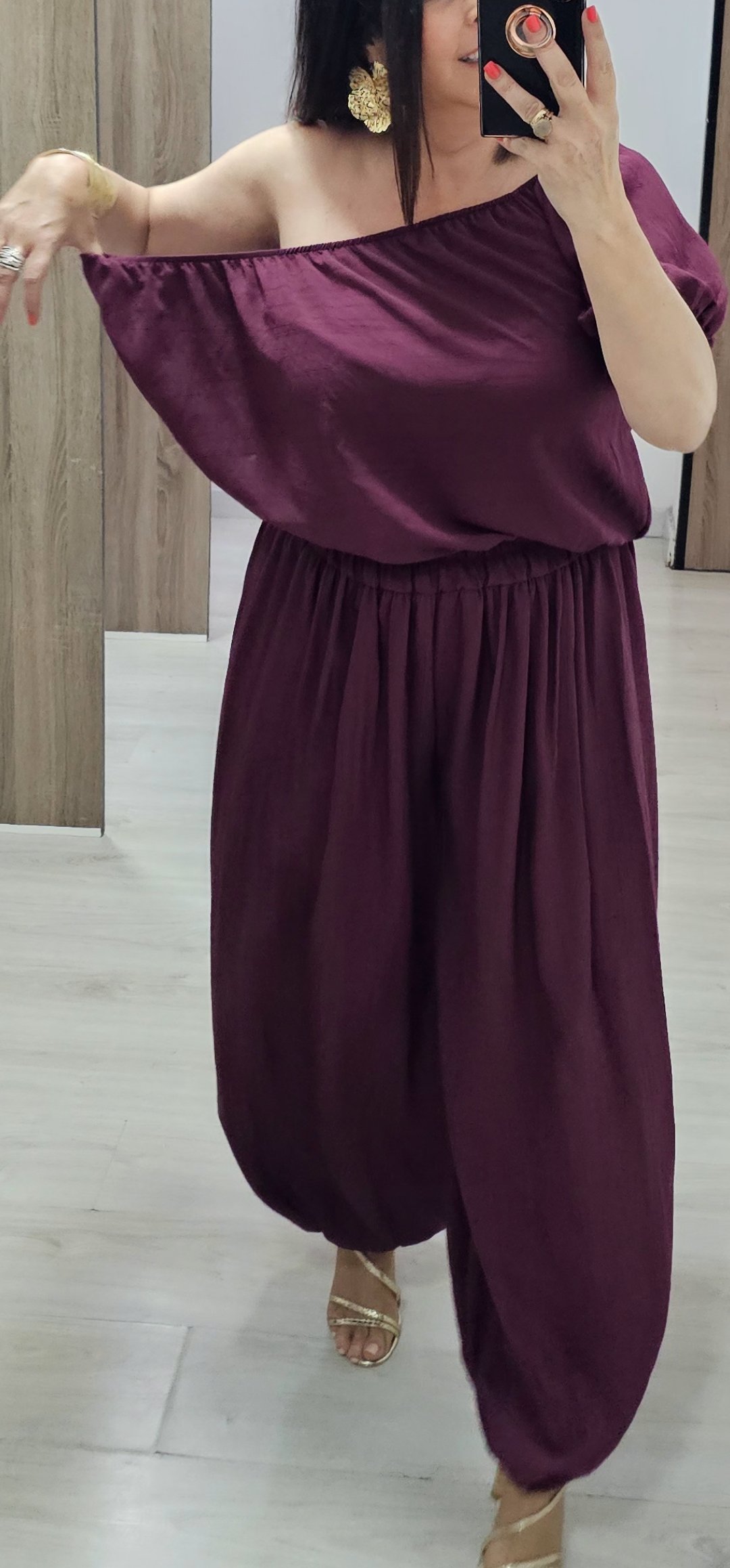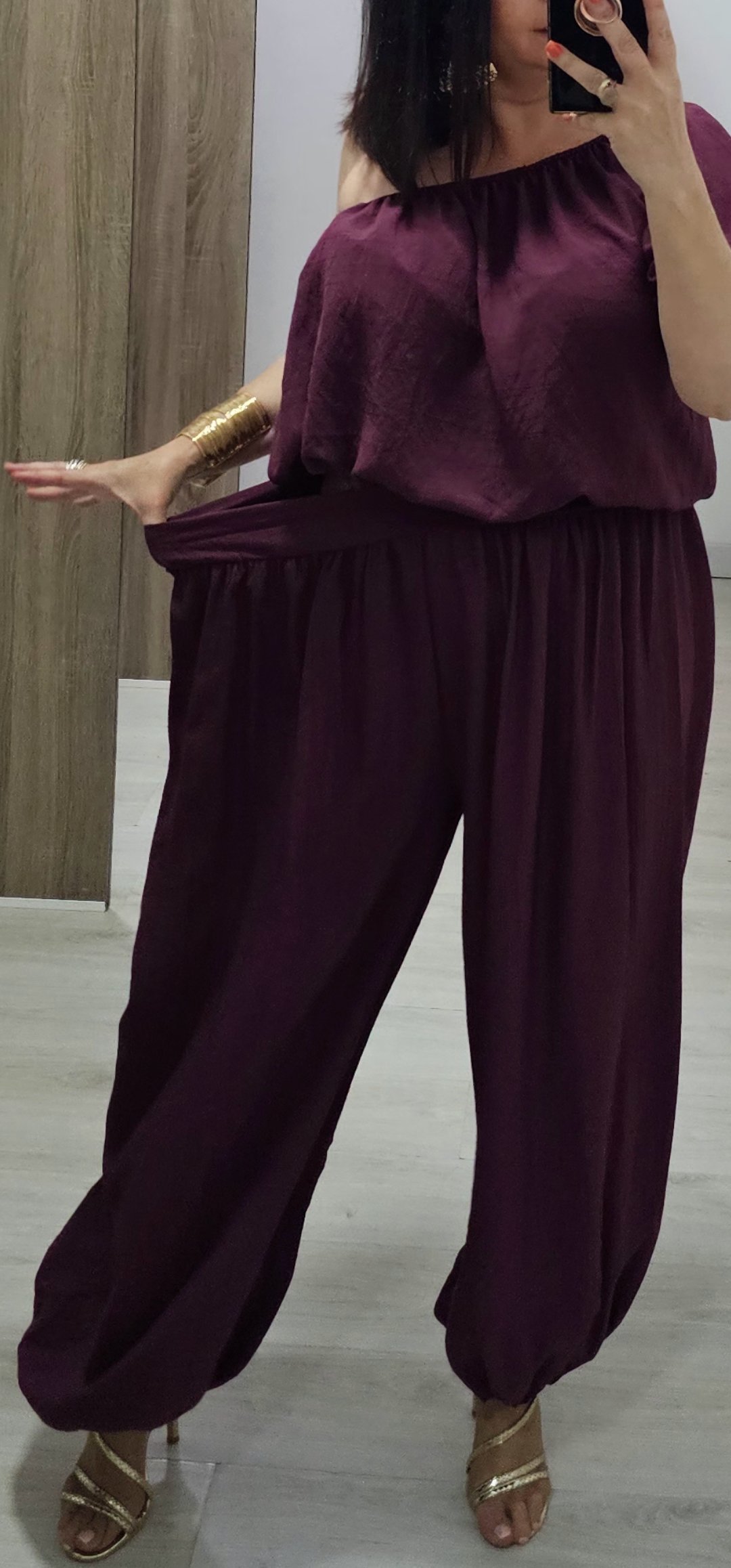 Monisimo y cómodo conjunto de 2 piezas en tejido súper ligero y con un corte ideal para varias tallas ya que cintura y escote llevan elástico y da para cualquier tallaje