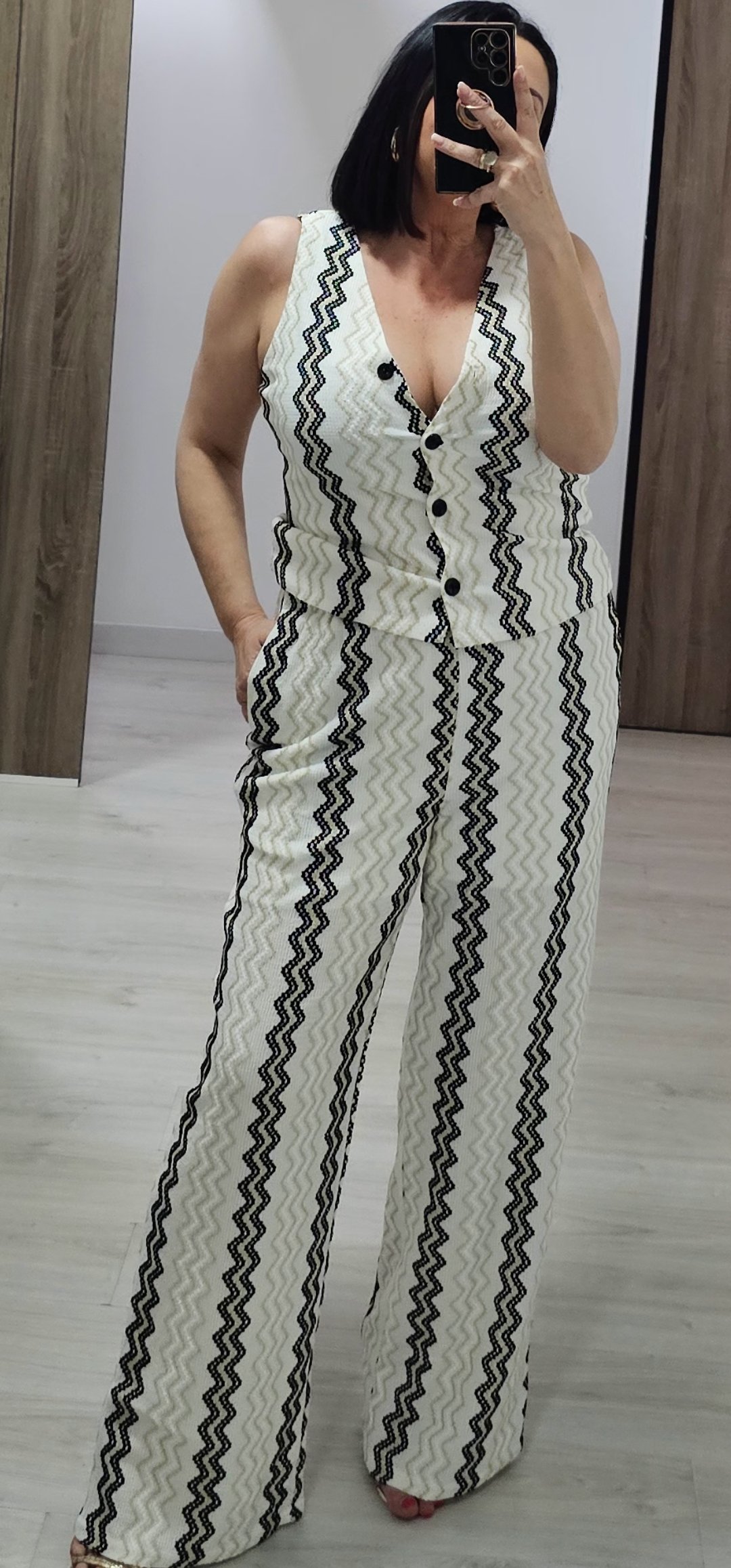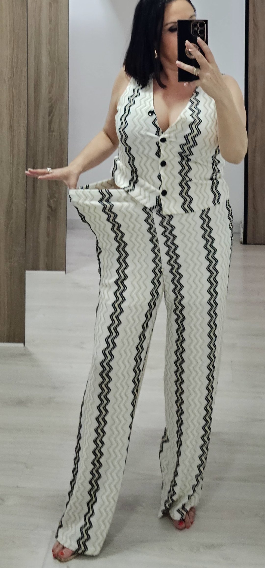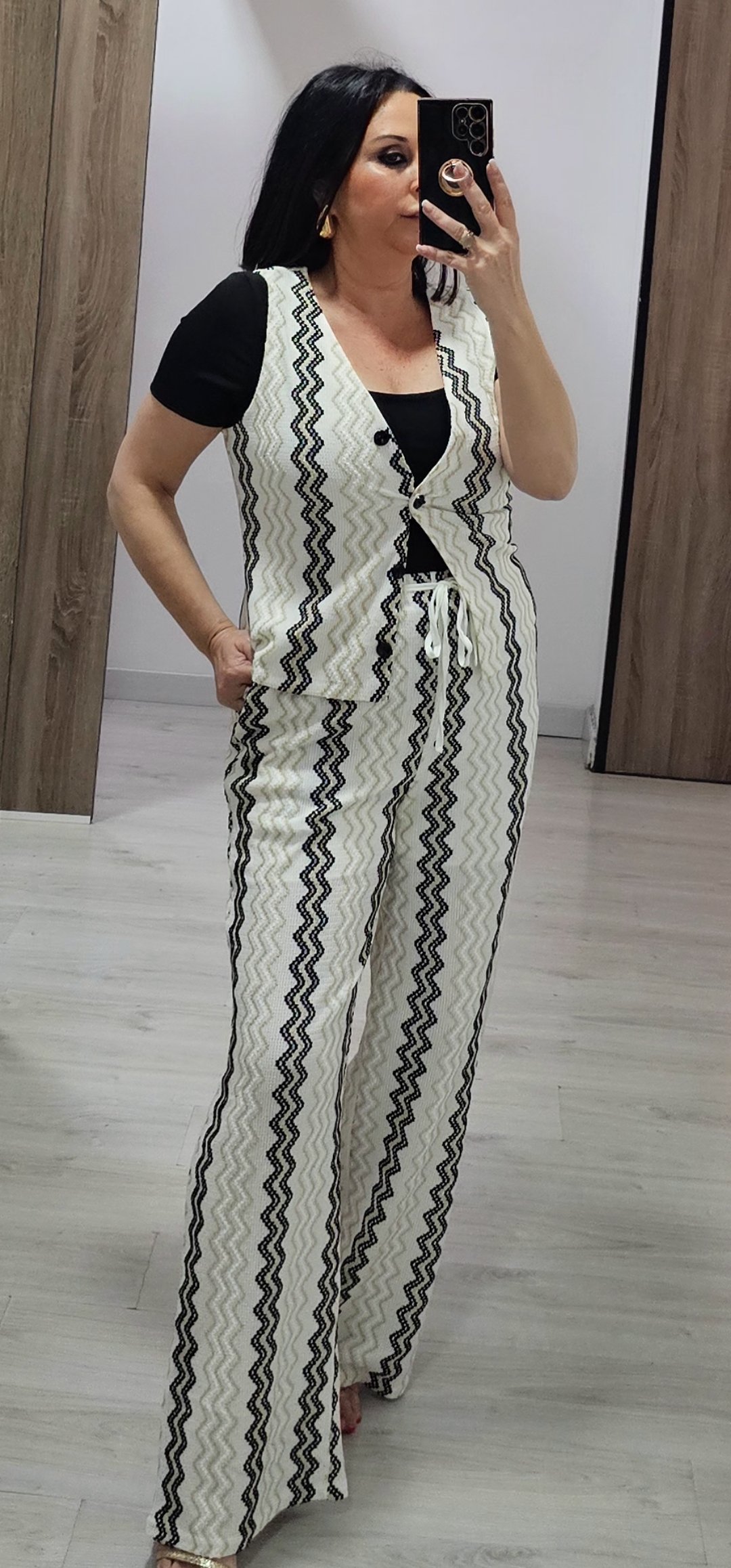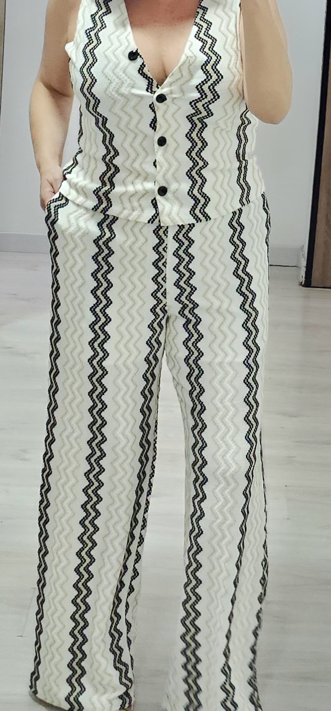 Monisimo conjunto de 2 piezas en un tejido elástico espectacular de cómodo von cintura elástica lleva forro a media altura y bolsillos, el chaleco va abotonado