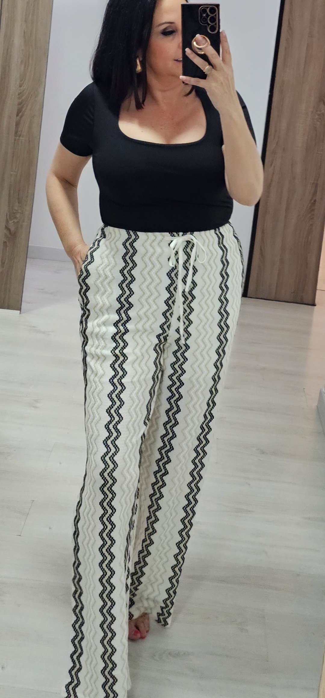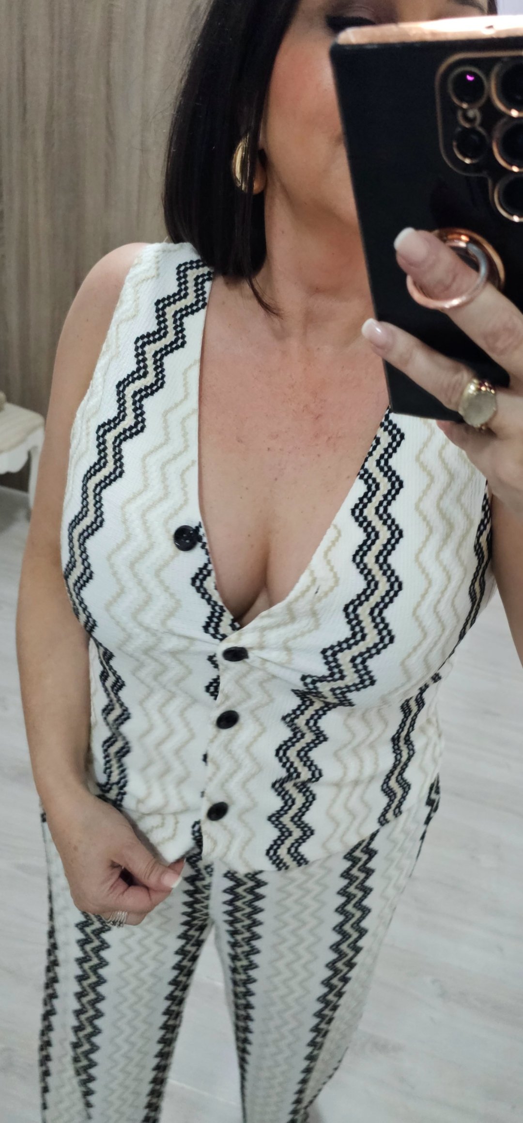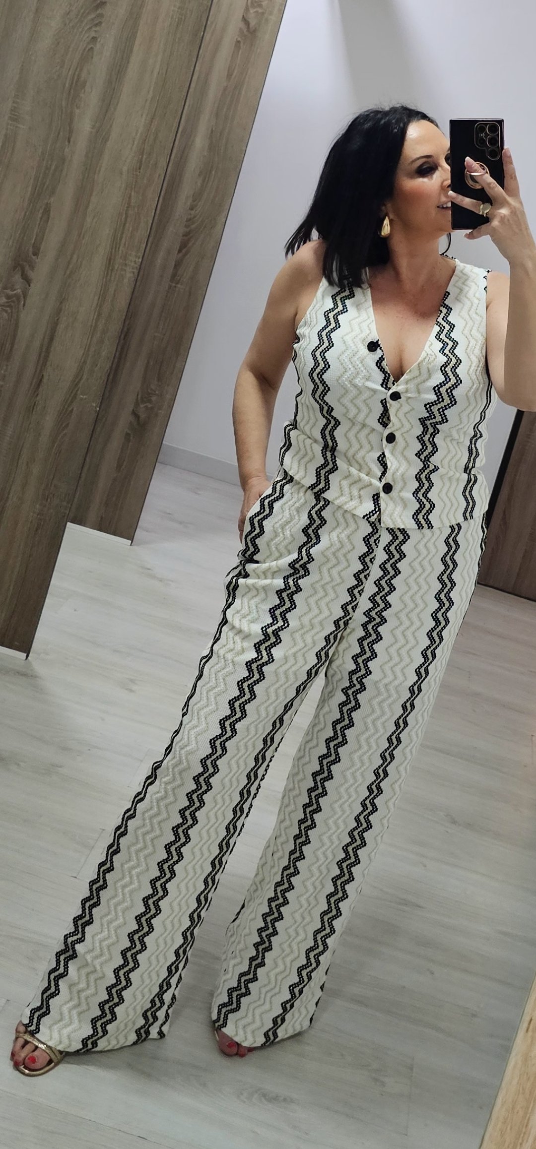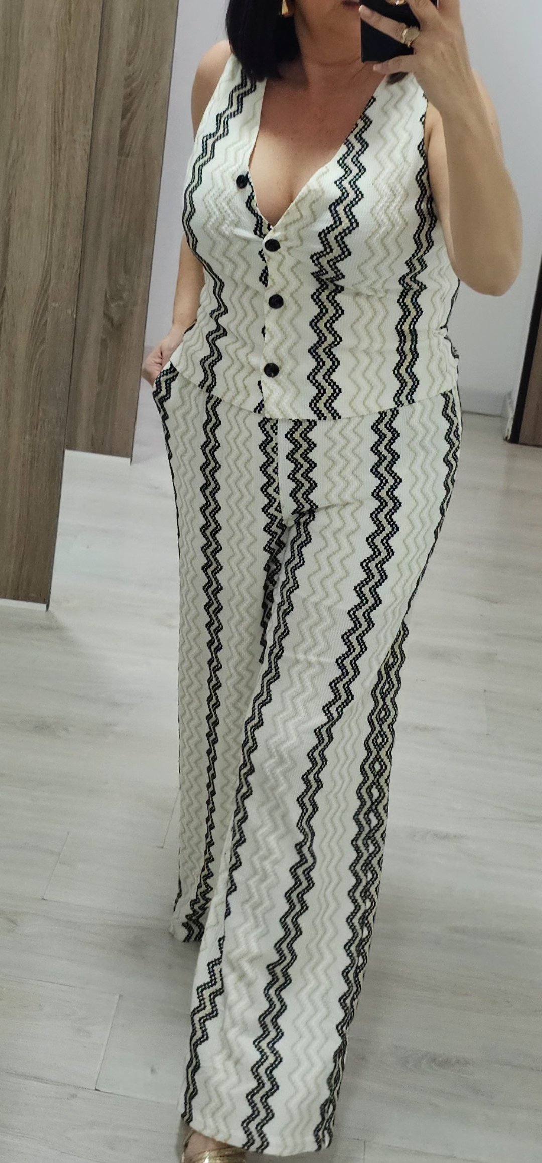 Monisimo conjunto de 2 piezas en un tejido elástico espectacular de cómodo von cintura elástica lleva forro a media altura y bolsillos, el chaleco va abotonado