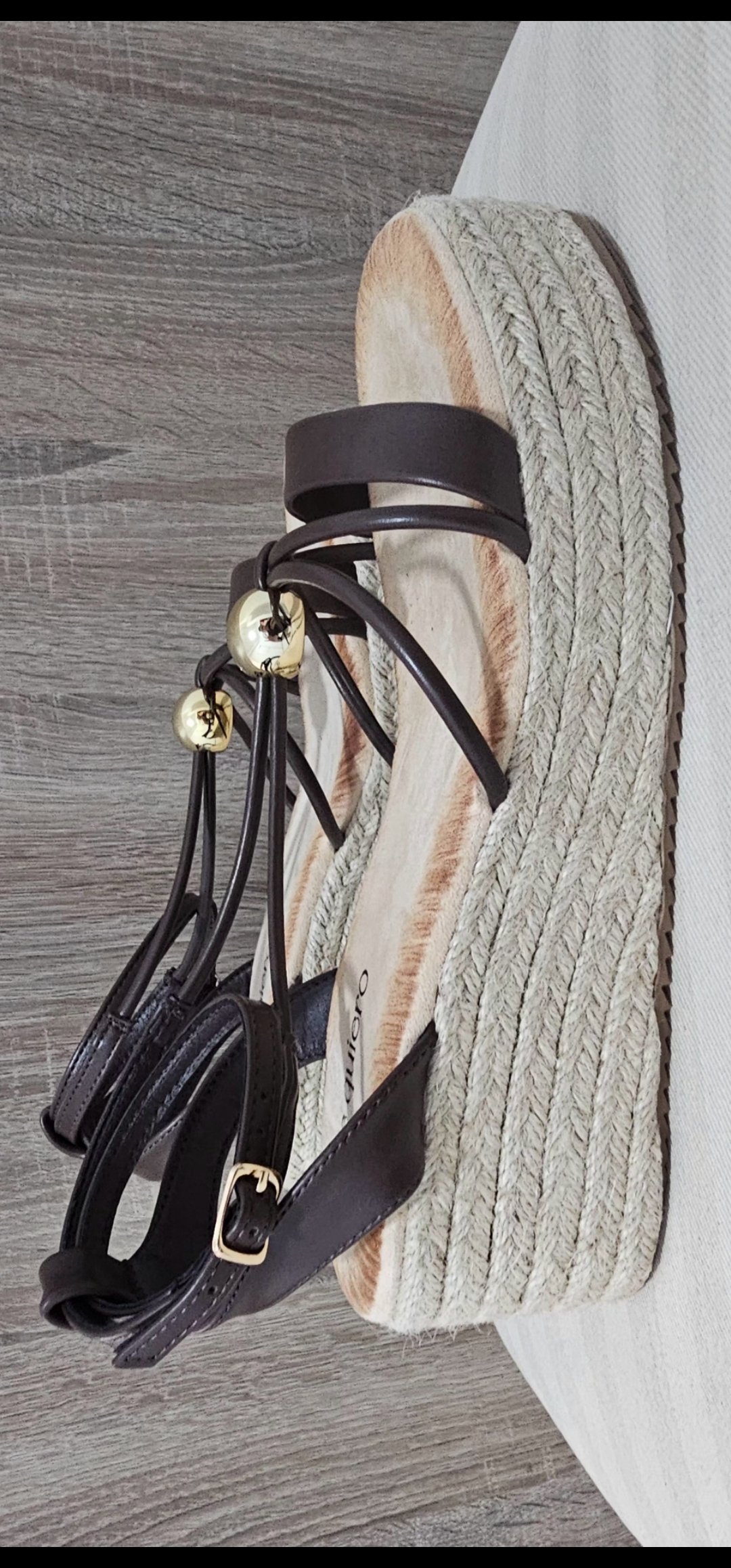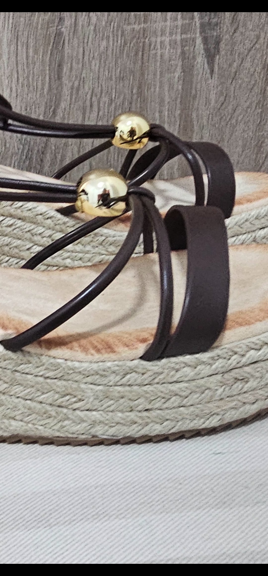 Espectacular y súper cómodas asi don nuestras cuñas con tiras en marrón chocolate cierre de hebilla y adorno dorado, plantilla acolchada de antelina no revela