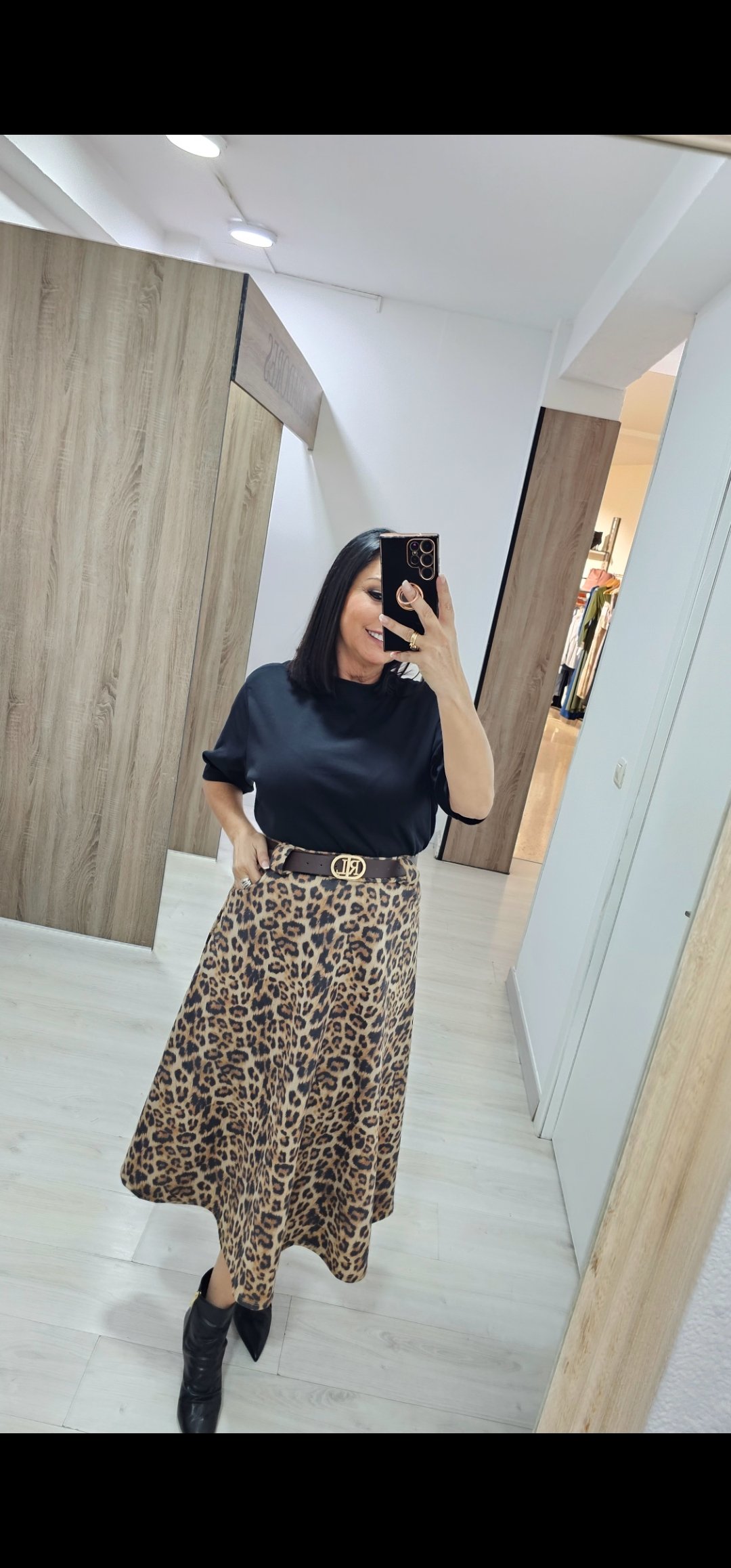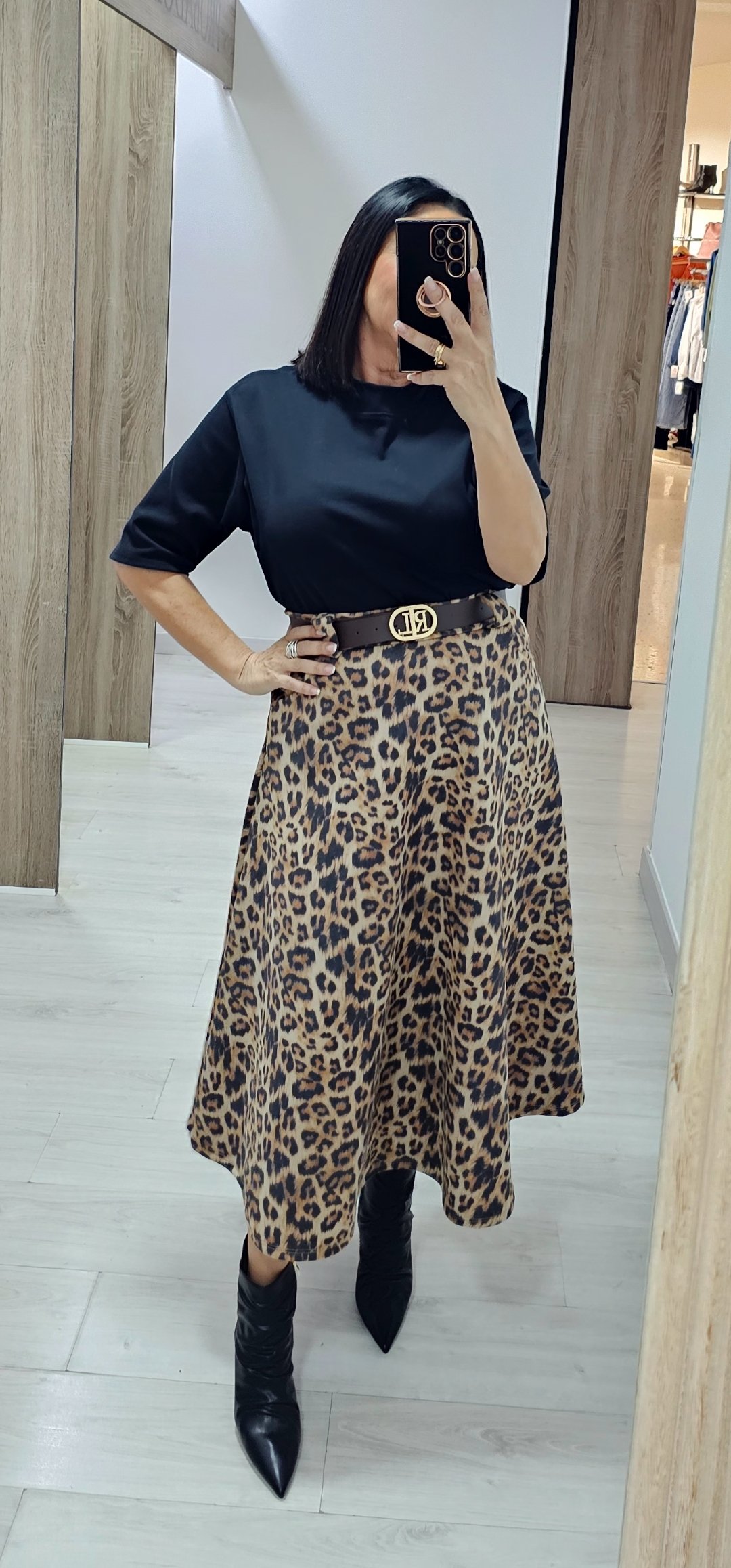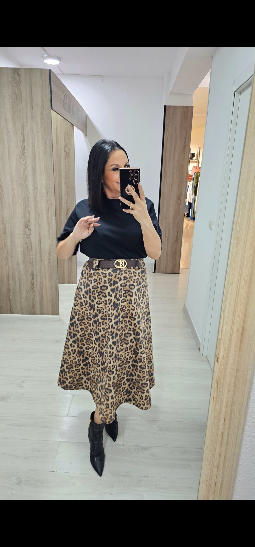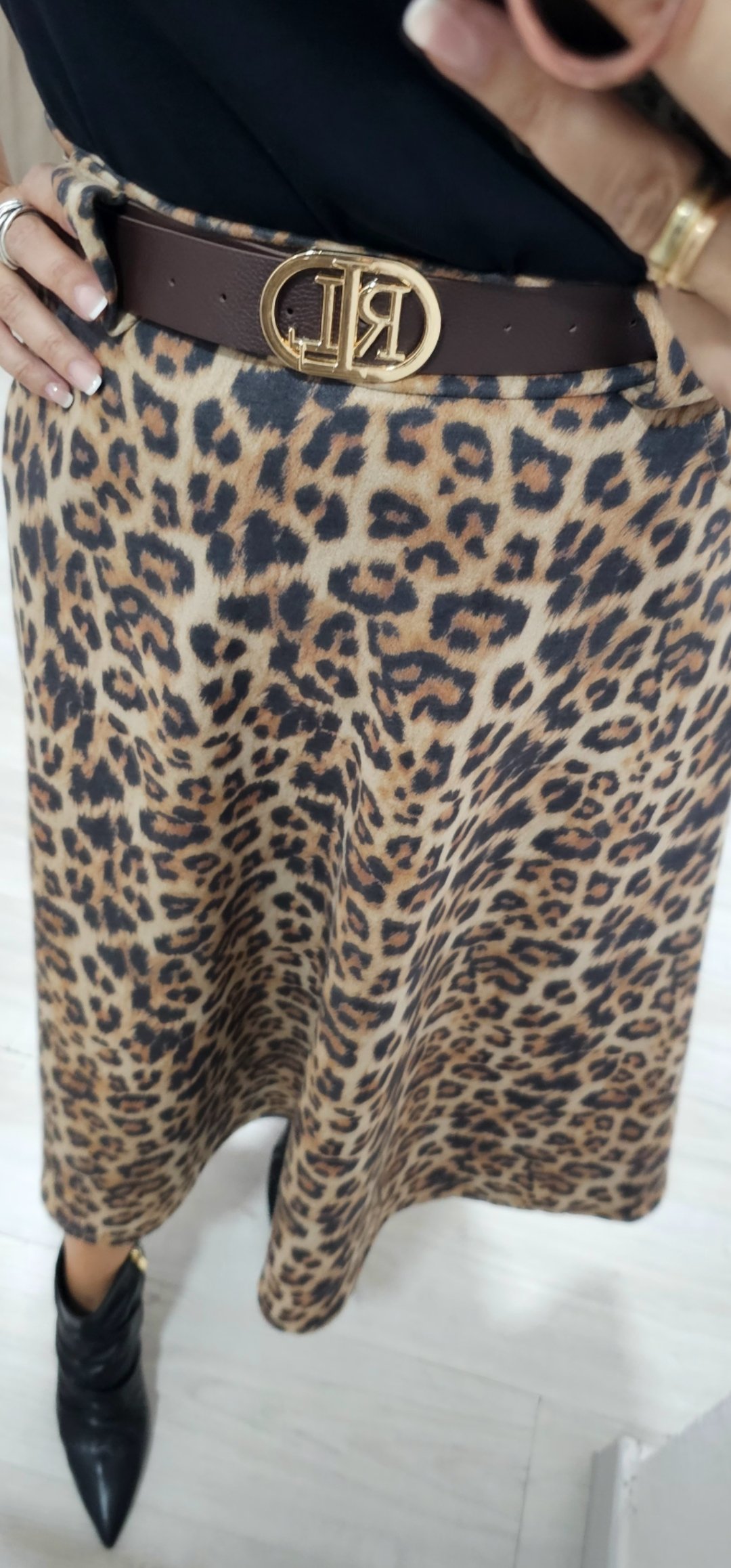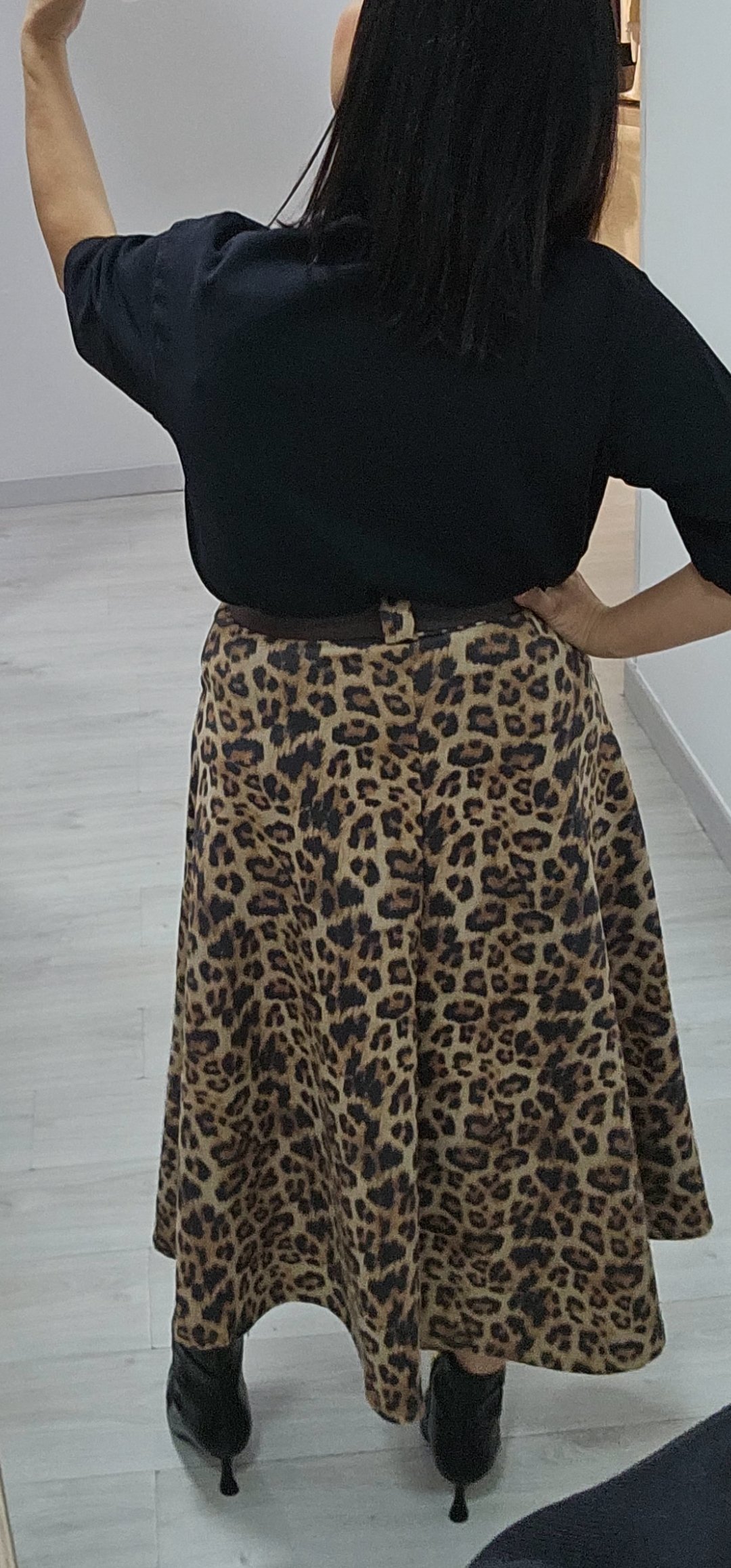 Monisimo falda con corte midi evase en tejido de antelina elástica y cinturón incluido
