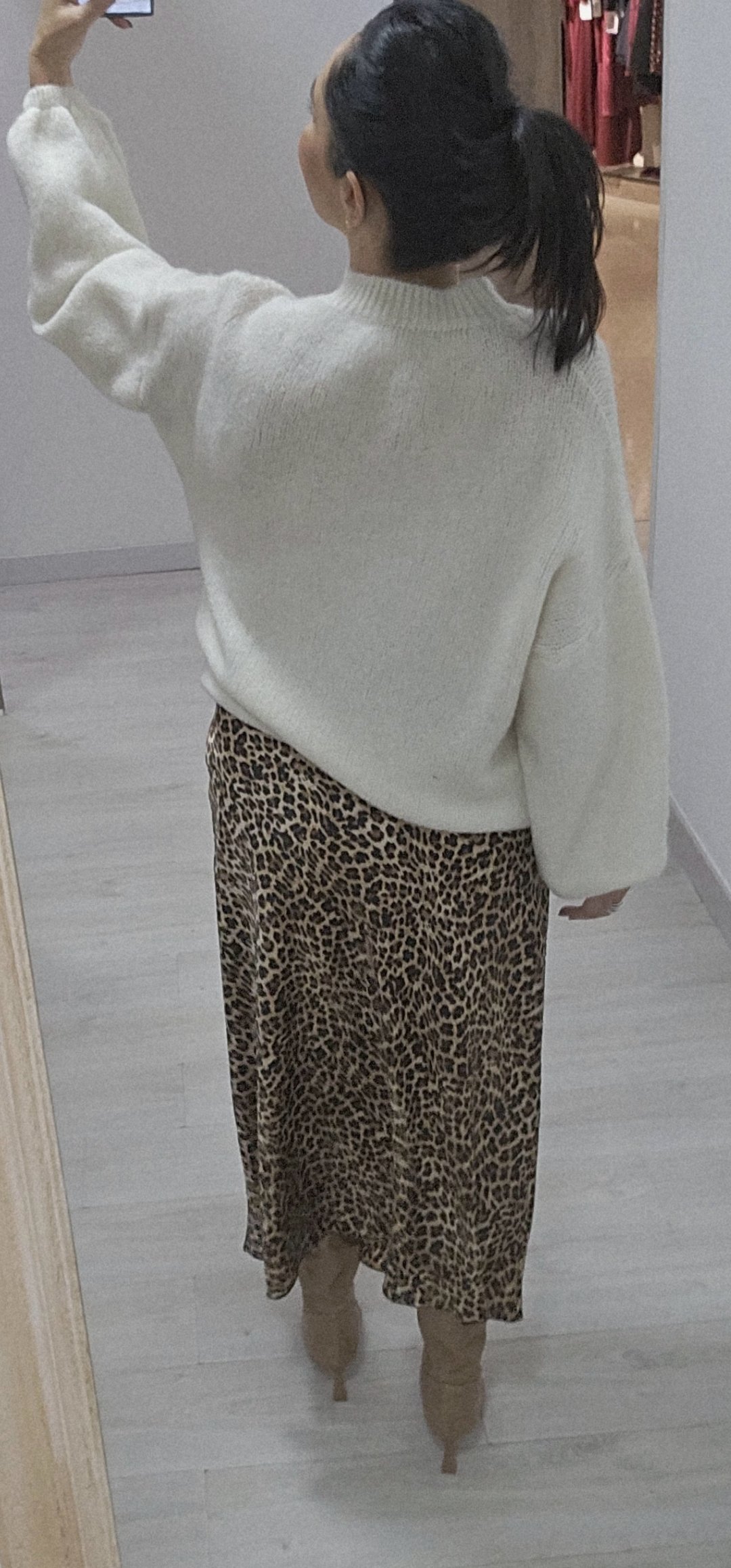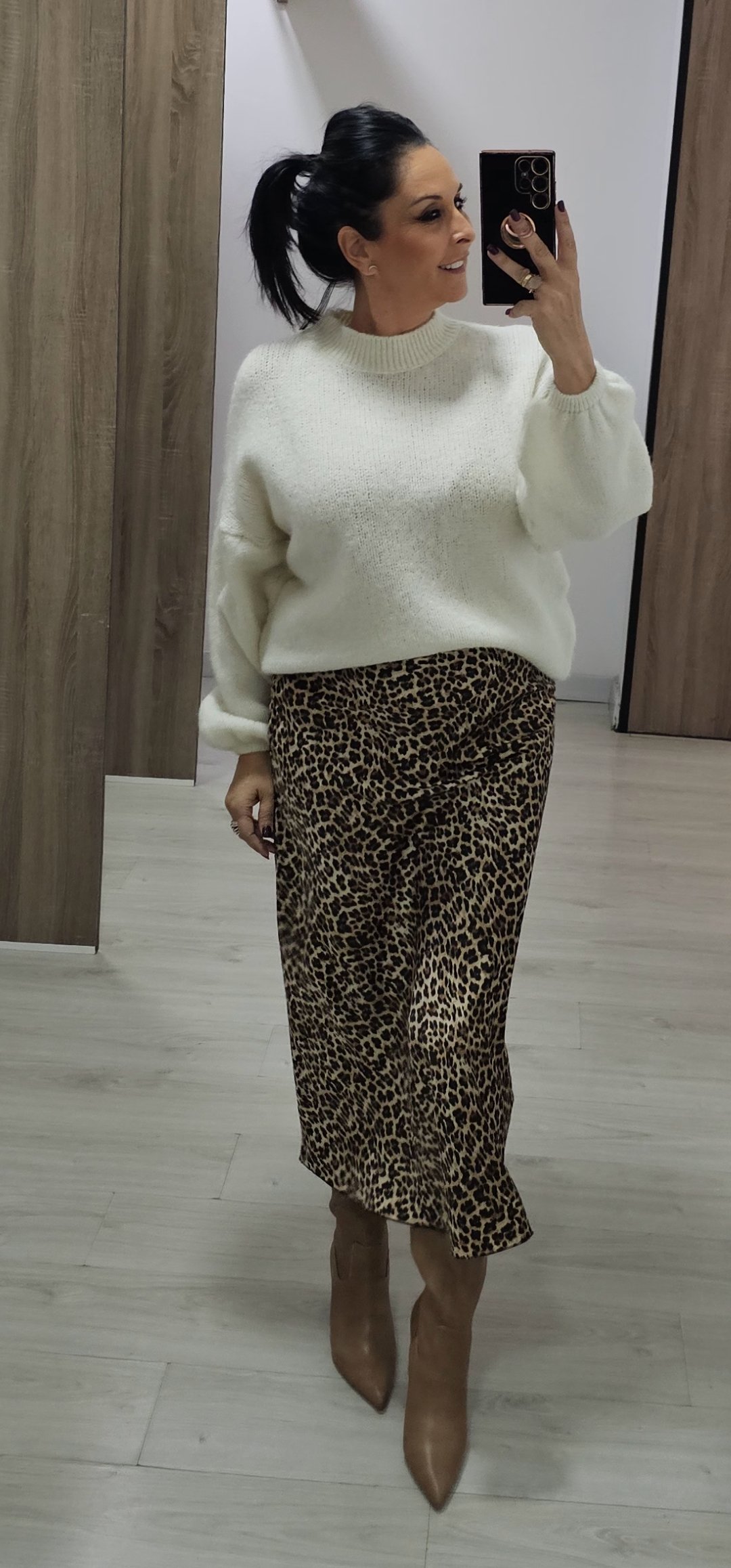 Monisima y cómoda falda midi con cintura elástica en tejido de raso