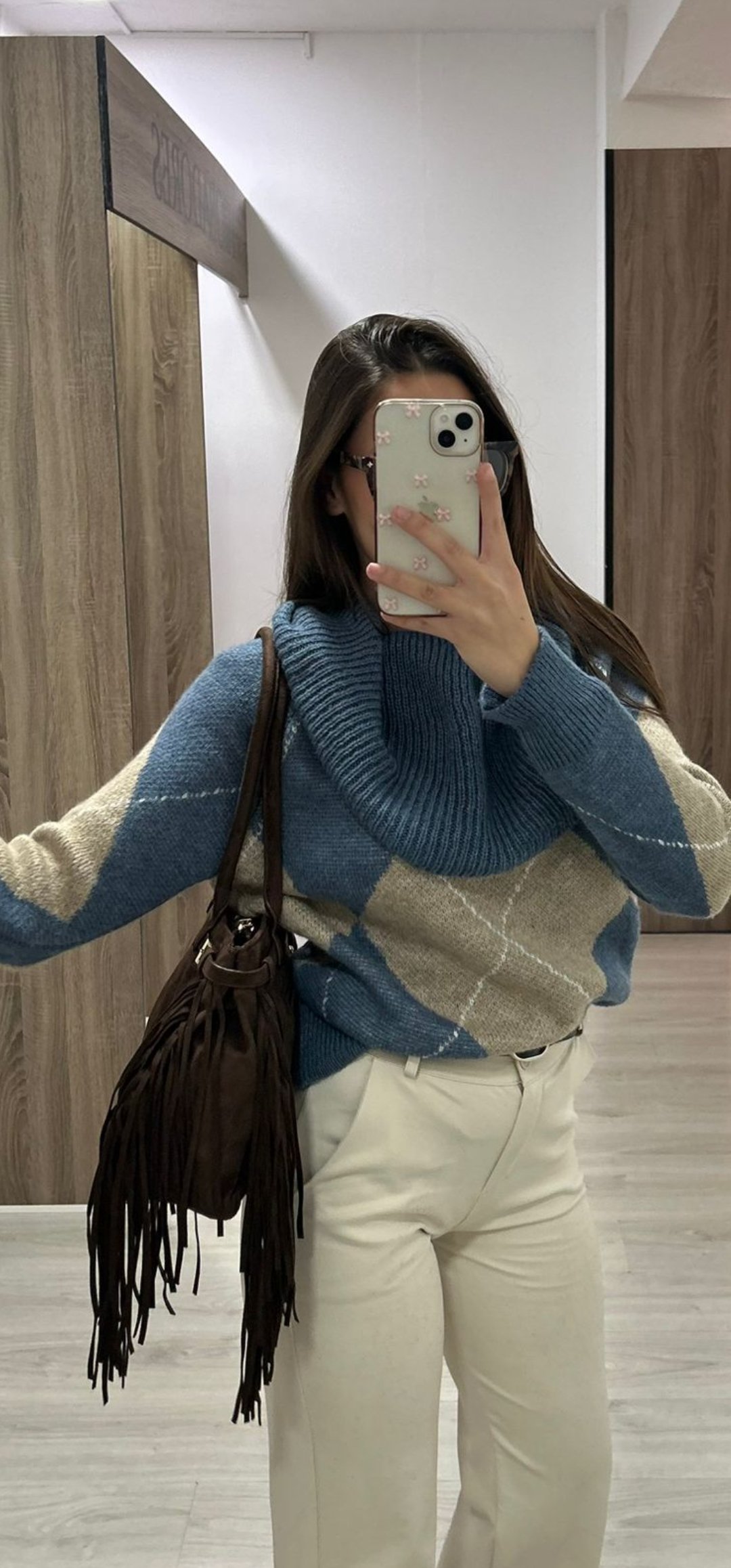 Monisimo y calentito jersey de lana con cuello multiposicion para llevar como prefieras