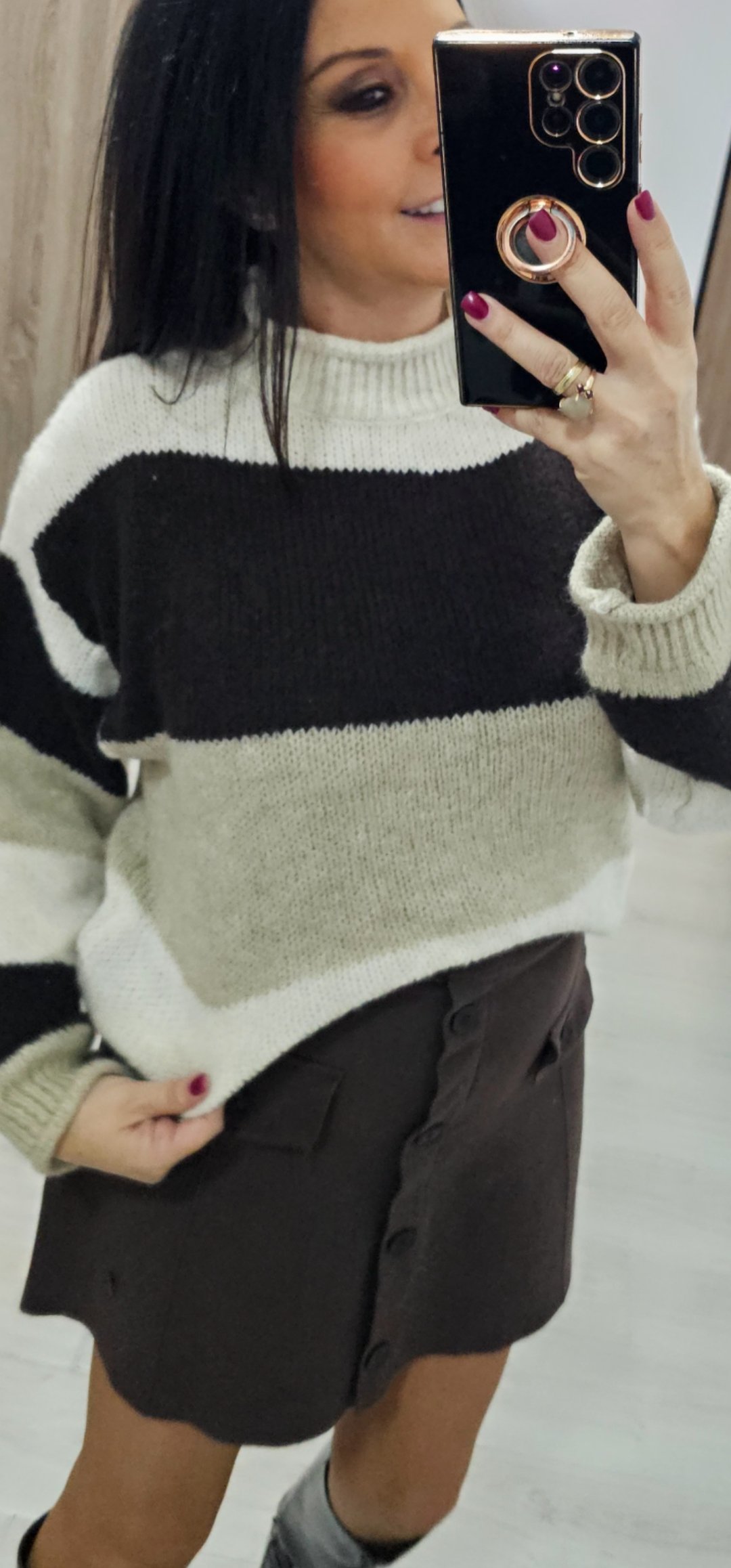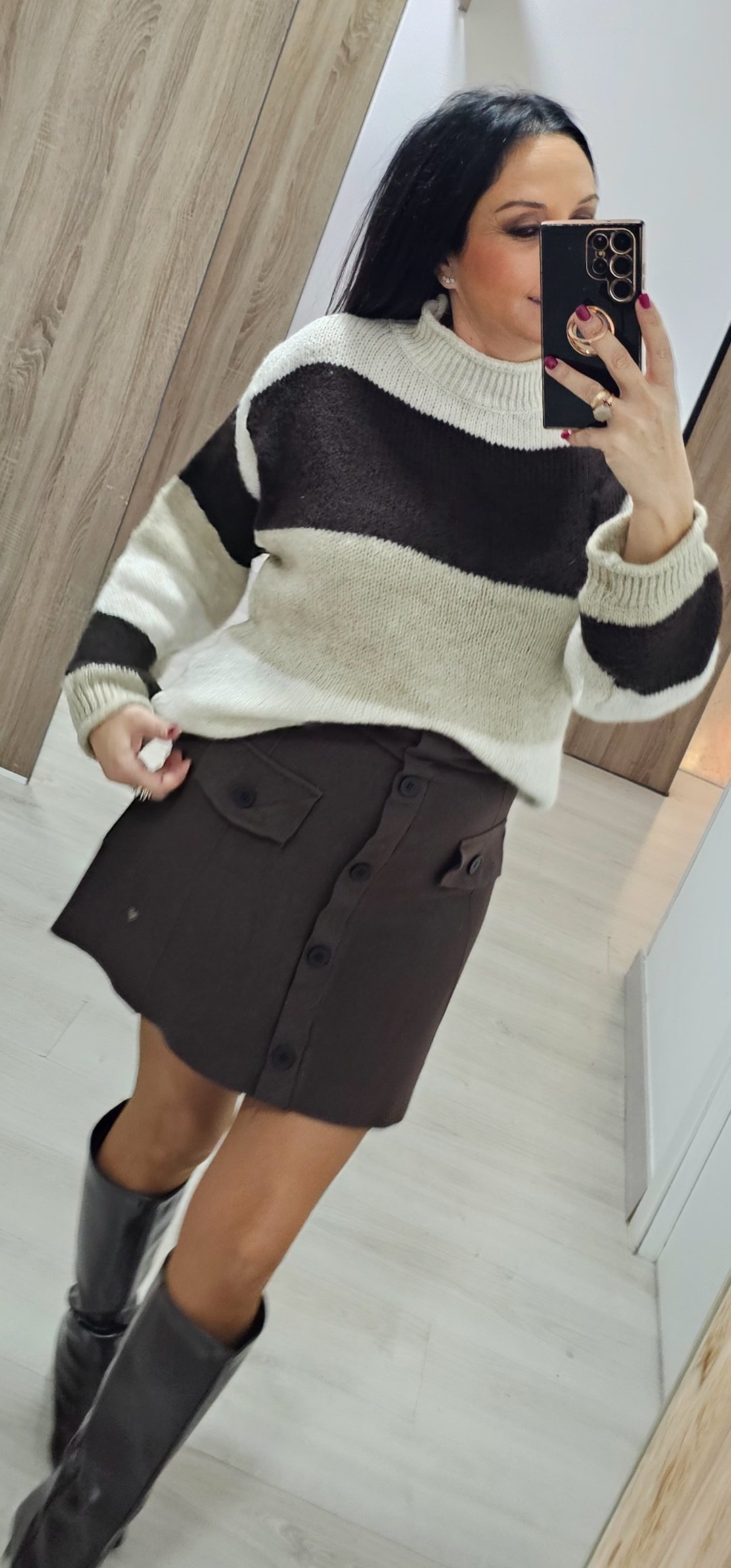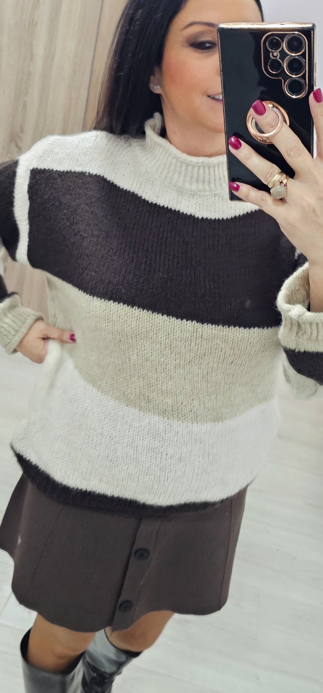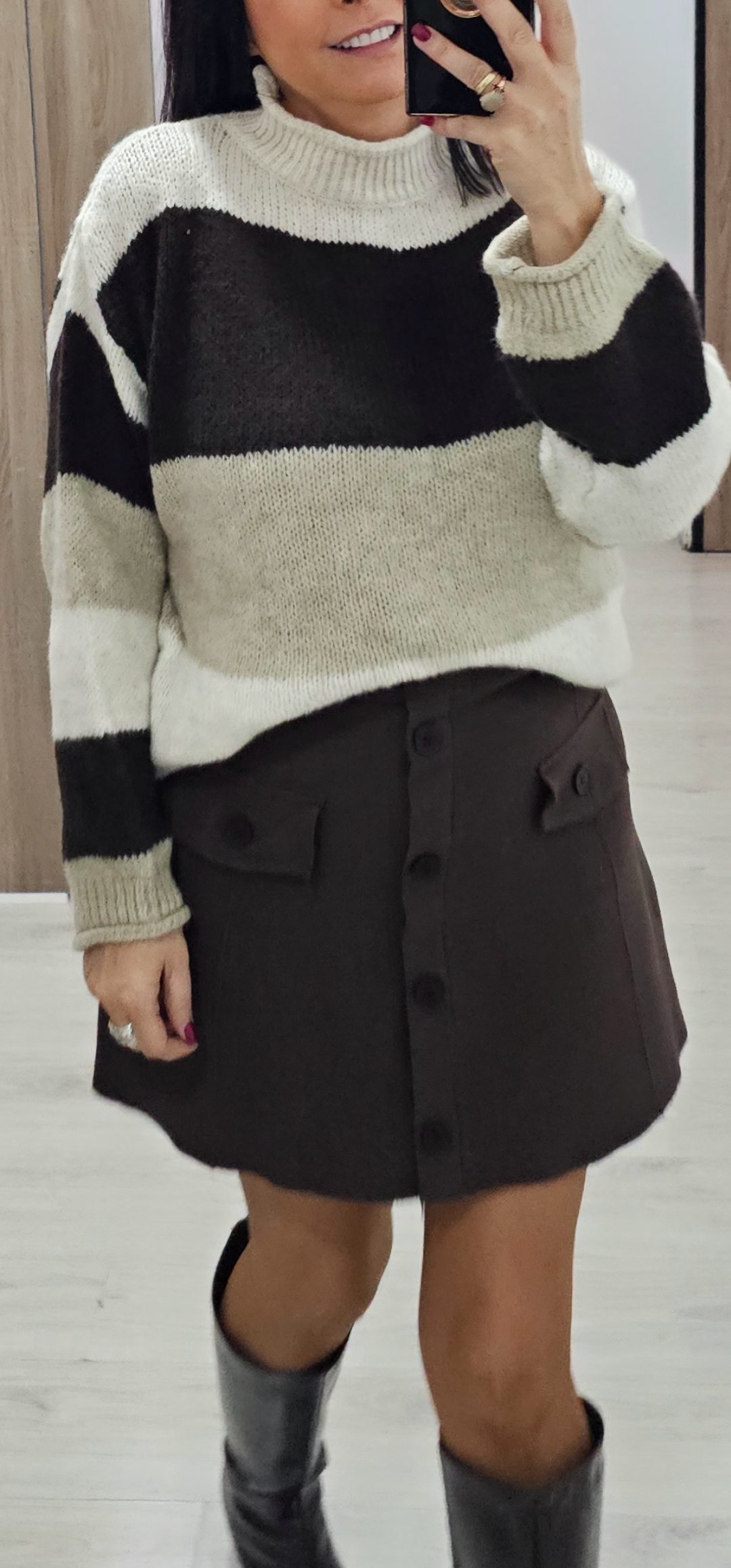 Espectacular jersey de lana de cuello alto en honor chocolate y beige con un tacto espectacular