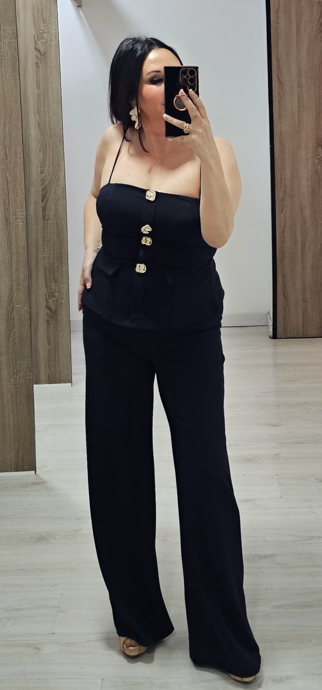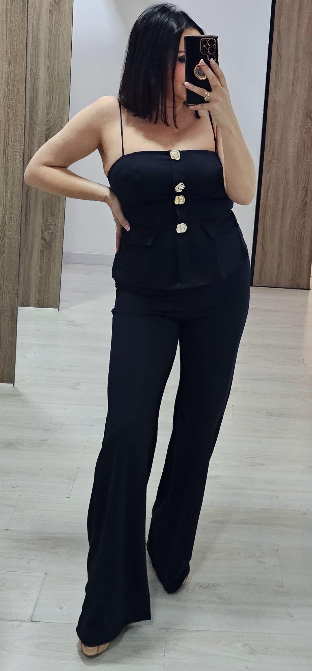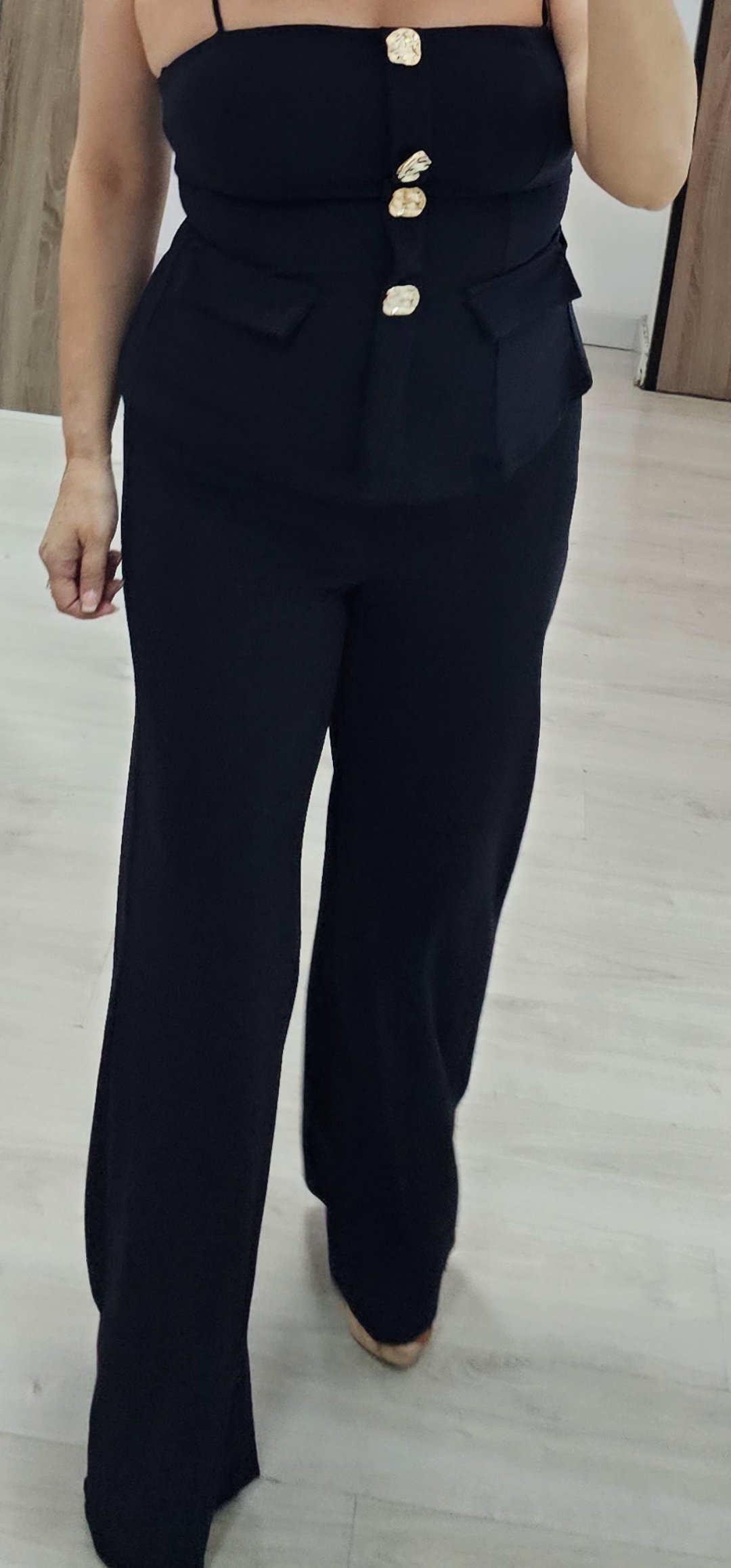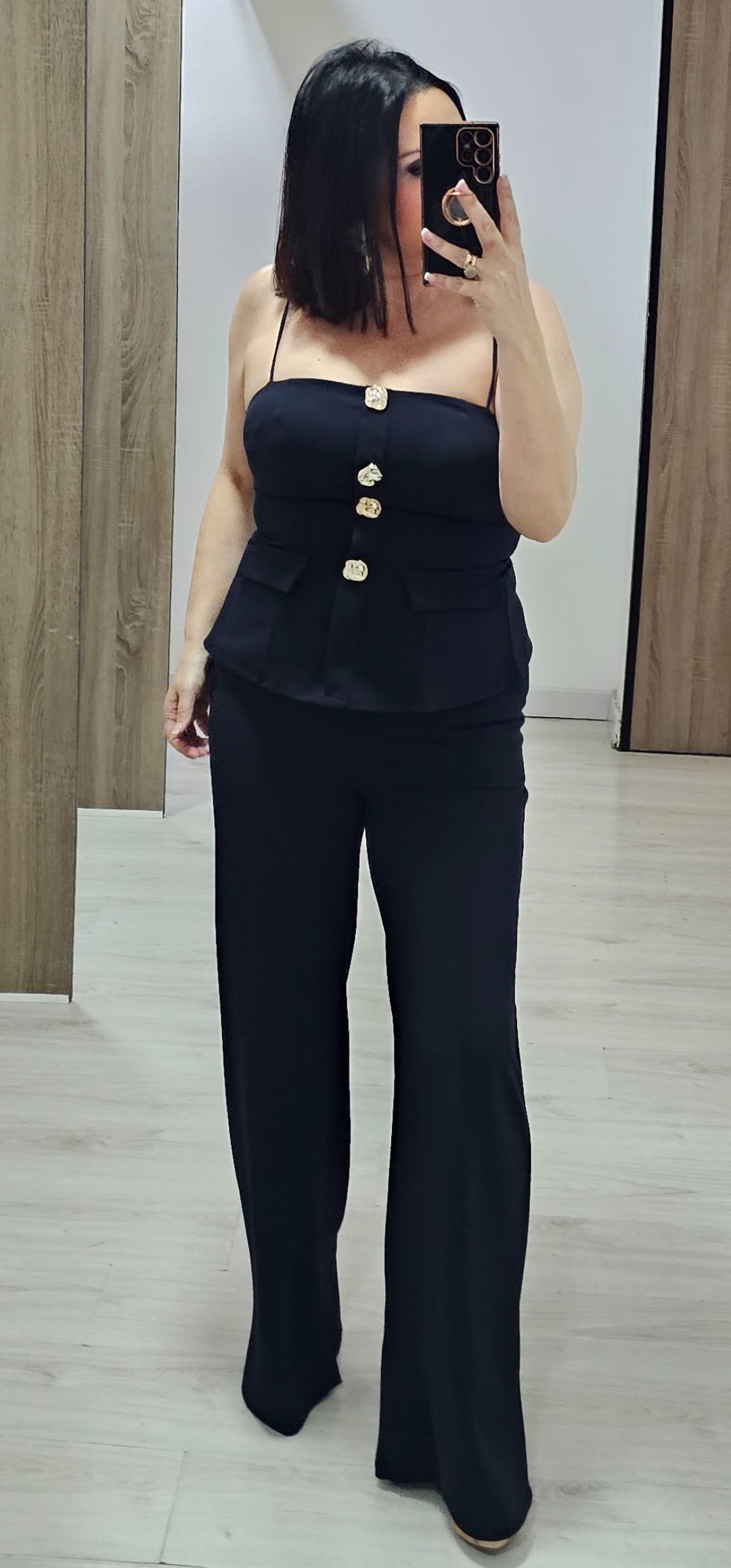 Monisimo mono en tejido de crep elástico con un corte súper bonito y elegante con cierre de cremallera, lleva cascos en el pecho y tirantas regulables
