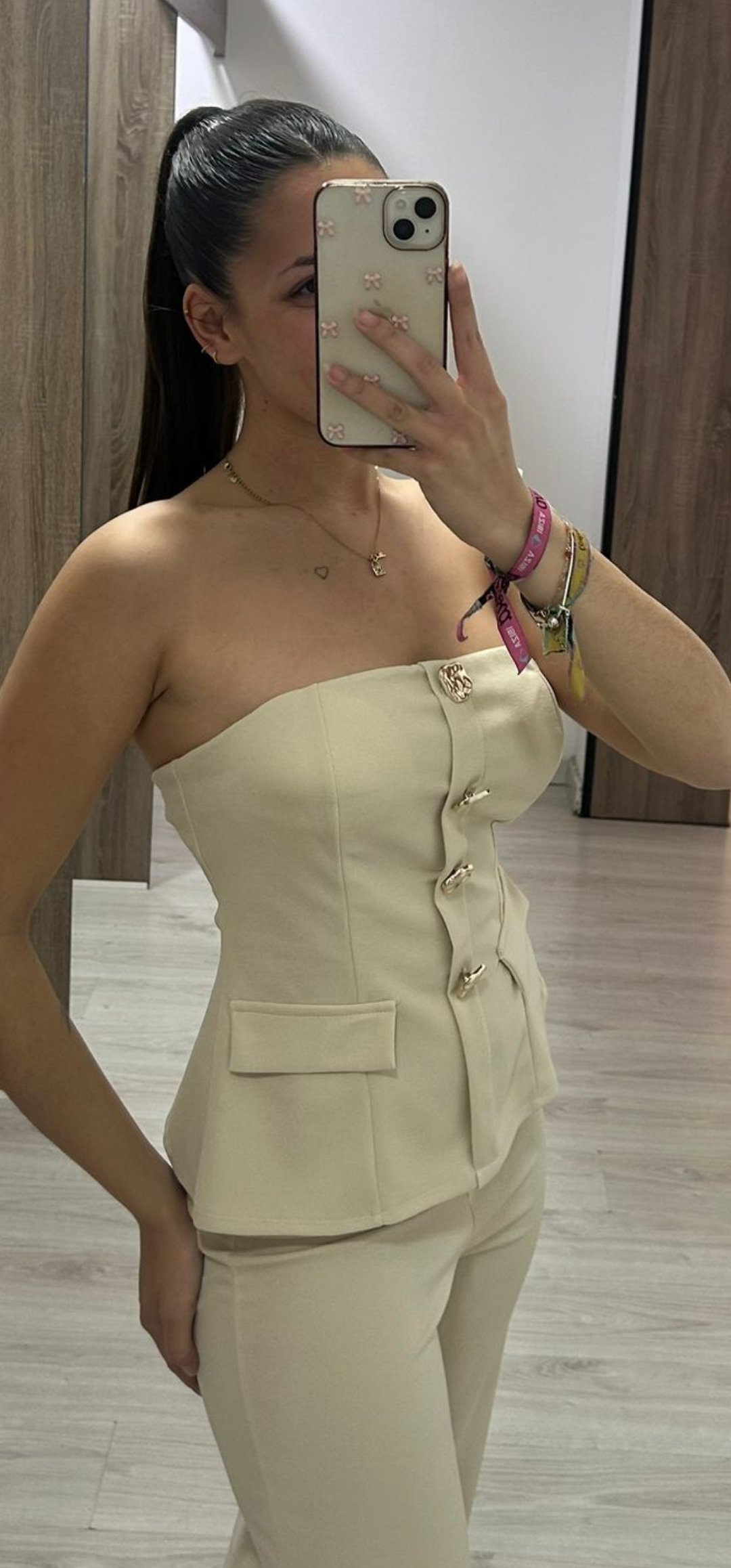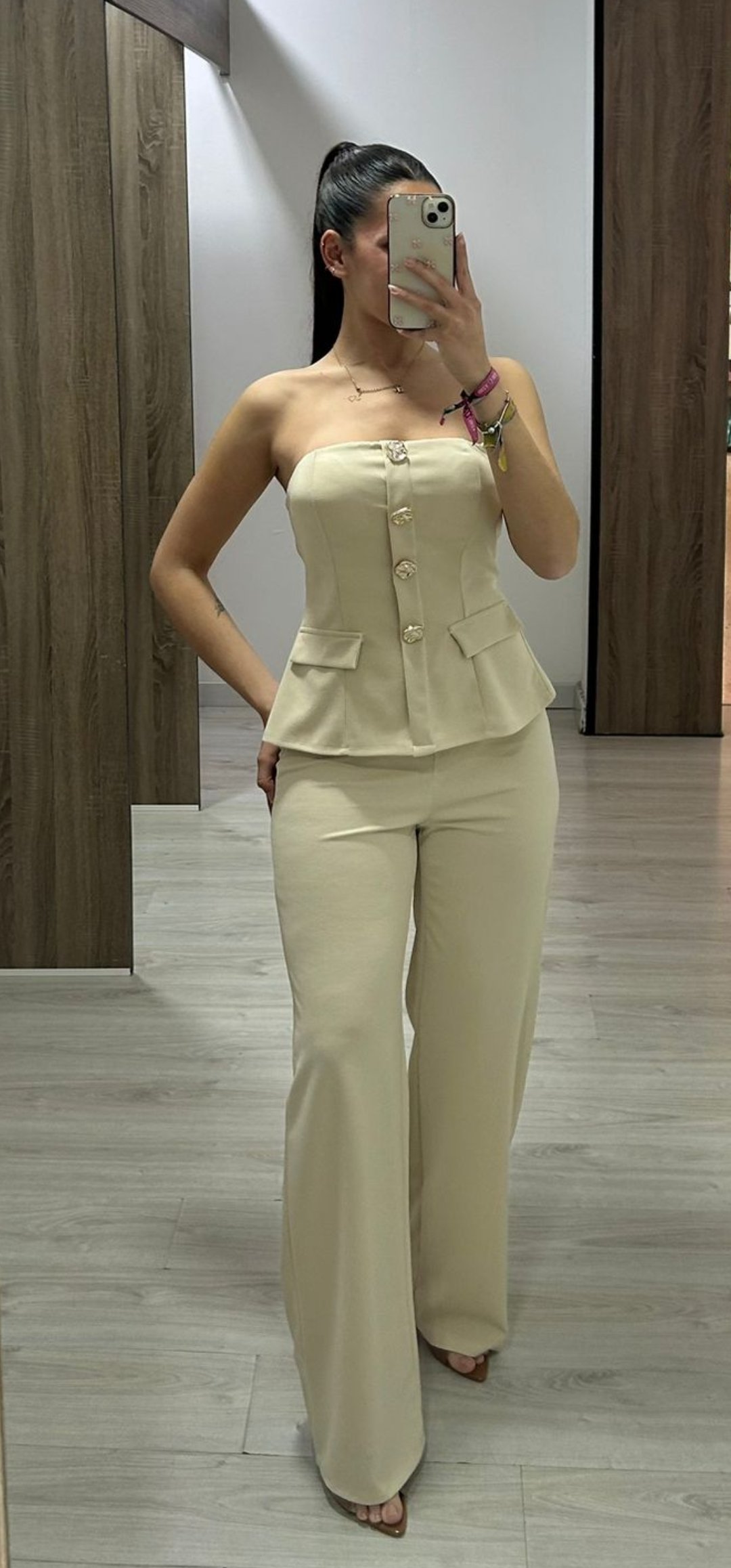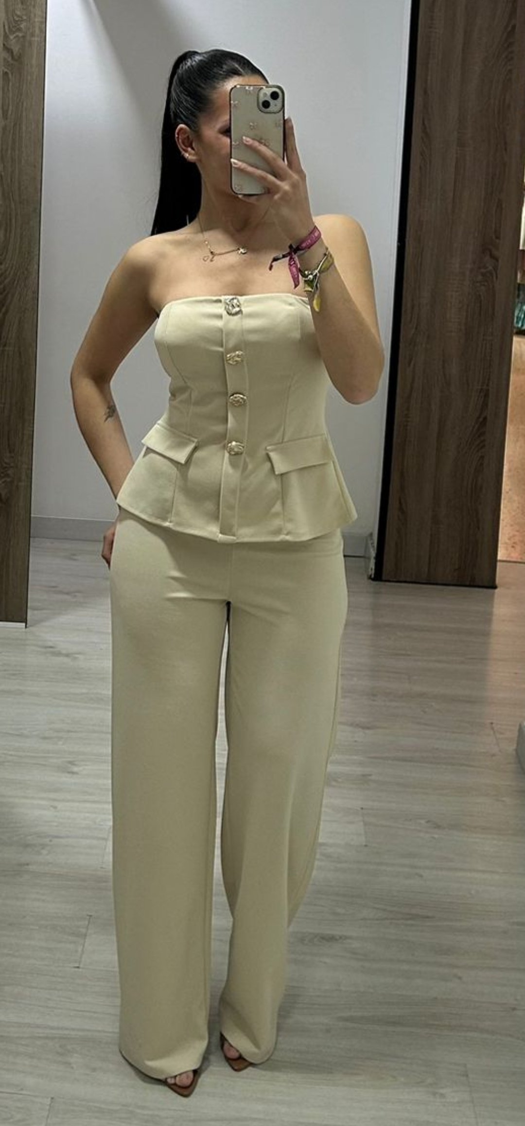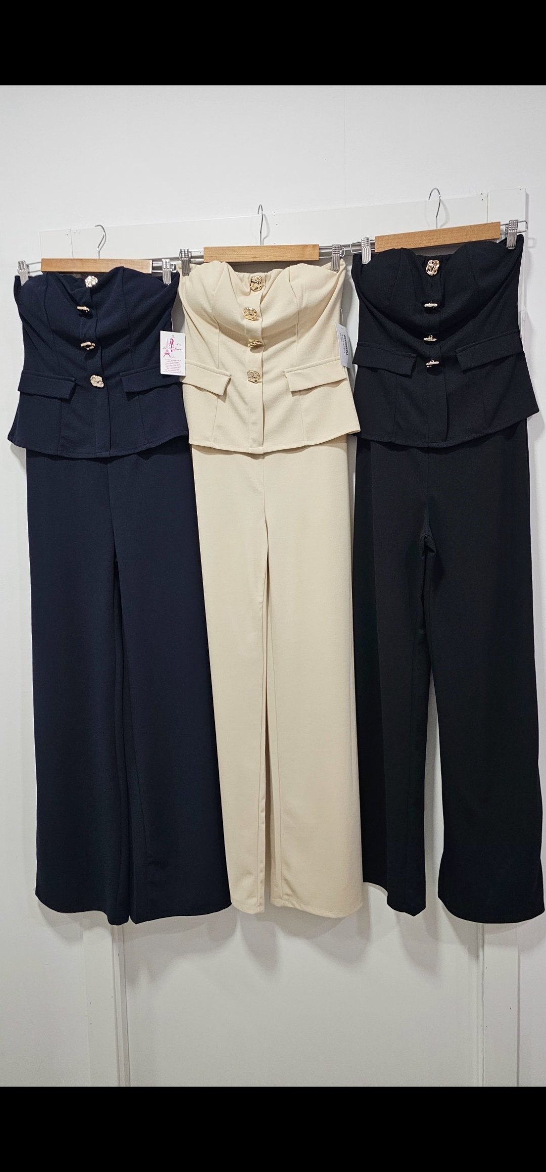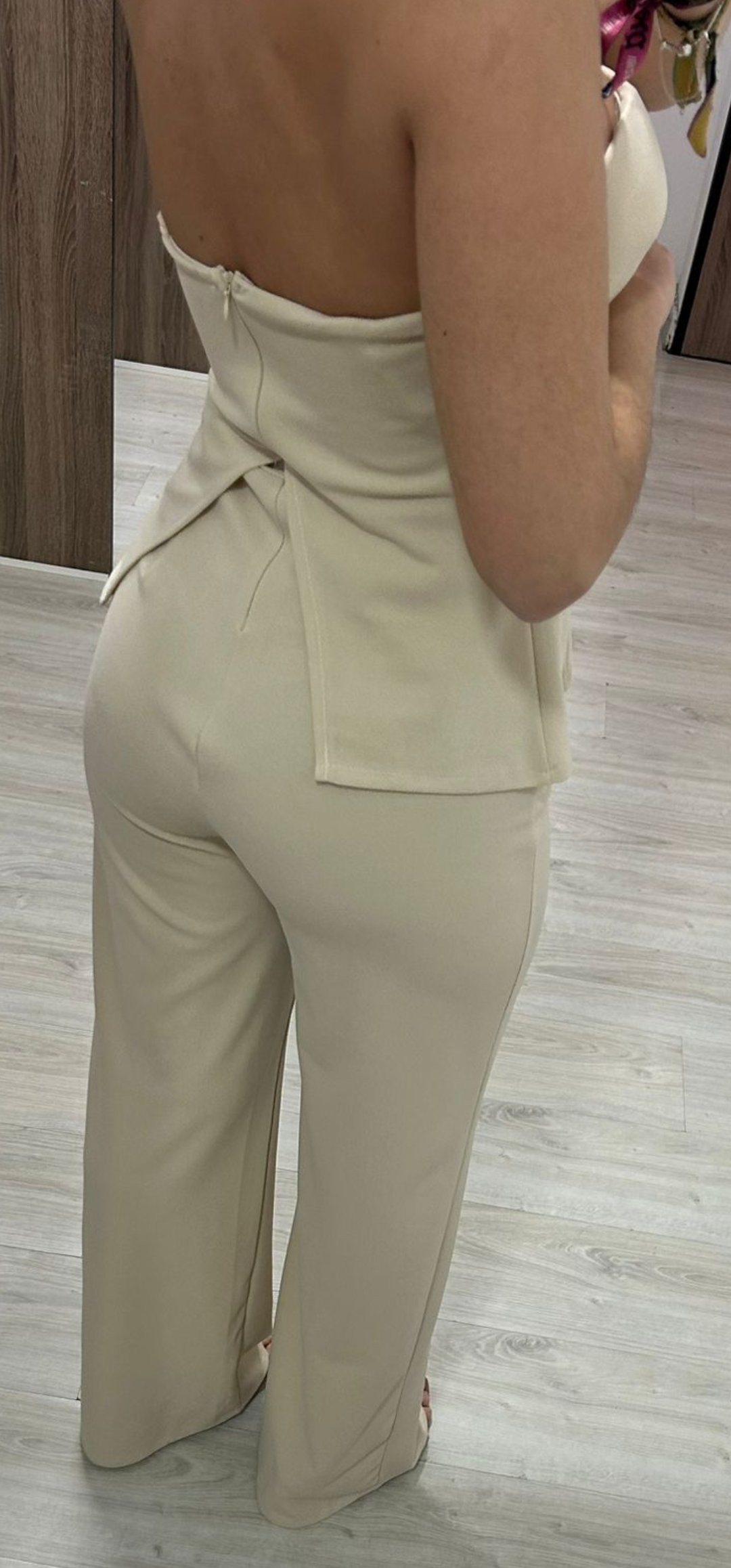 Monisimo mono en tejido de crep elástico con un corte súper bonito y elegante con cierre de cremallera, lleva cascos en el pecho y tirantas regulables