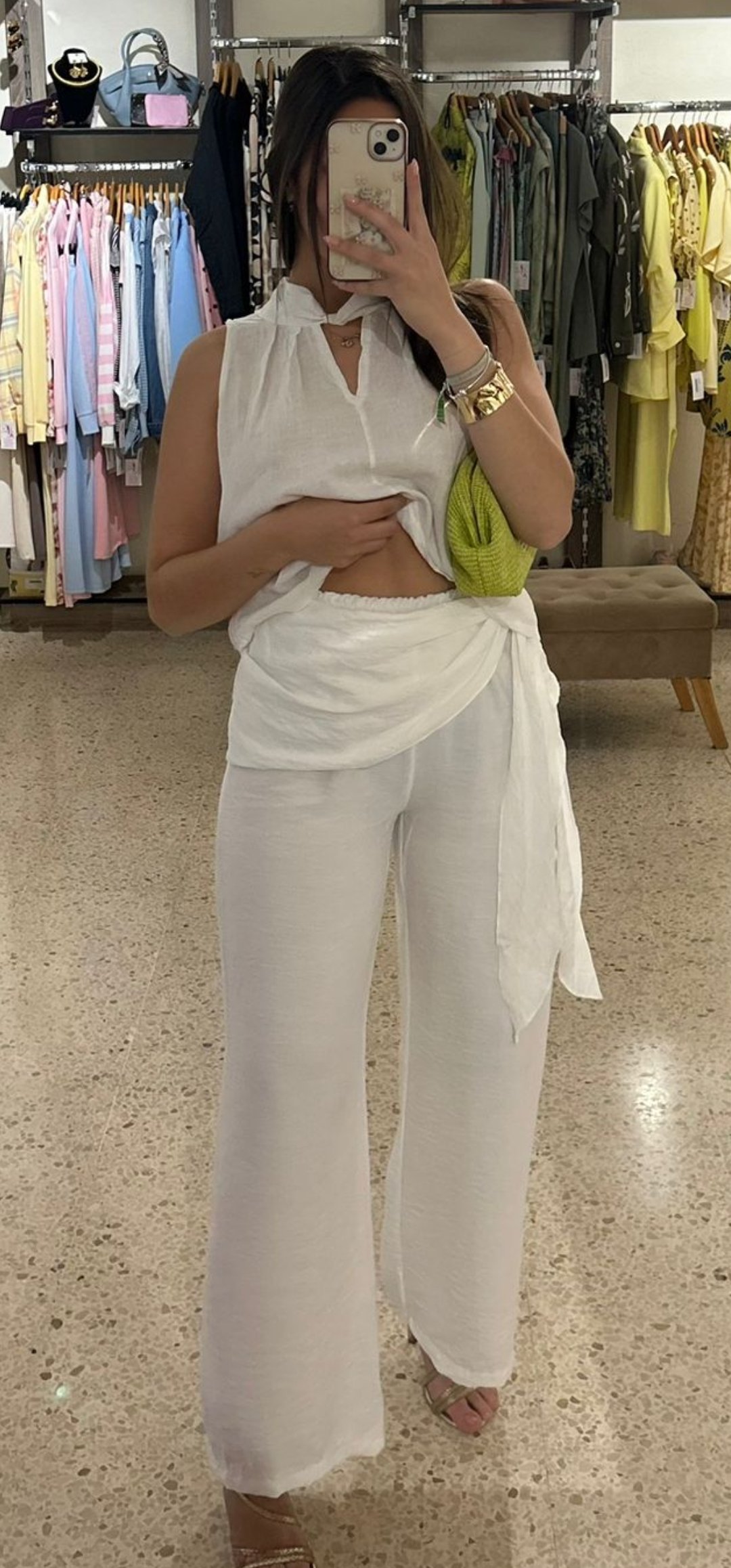 Monisimo pantalón de pata recta con pañuelo incluido para atarlo en la cintura