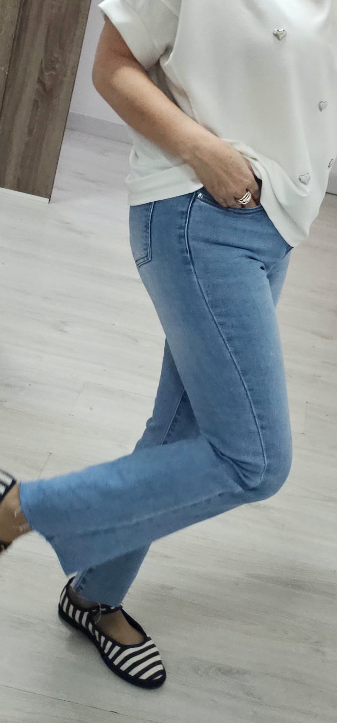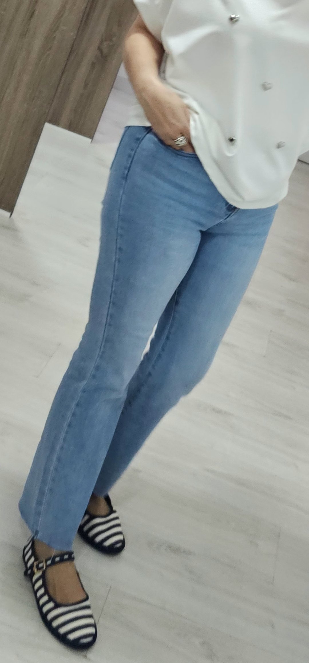 Monisimo y súper elástico nuestro nuevo pantalón tipo culotte desflecado, cierre de cremallera y botón