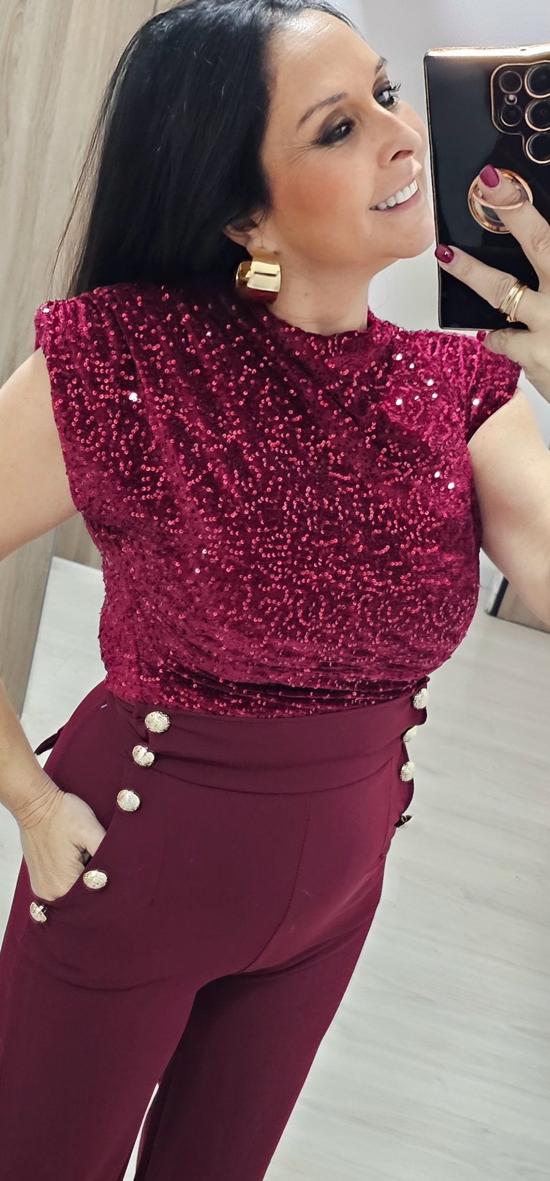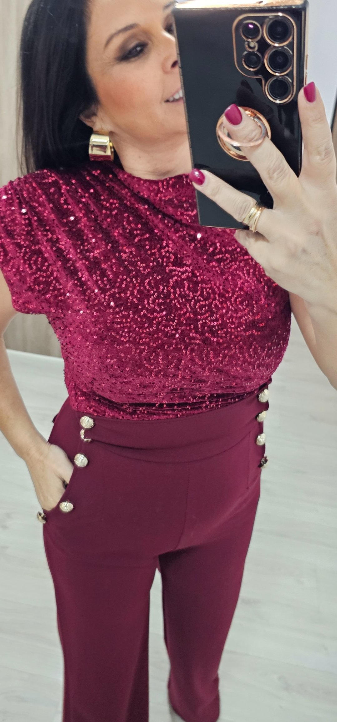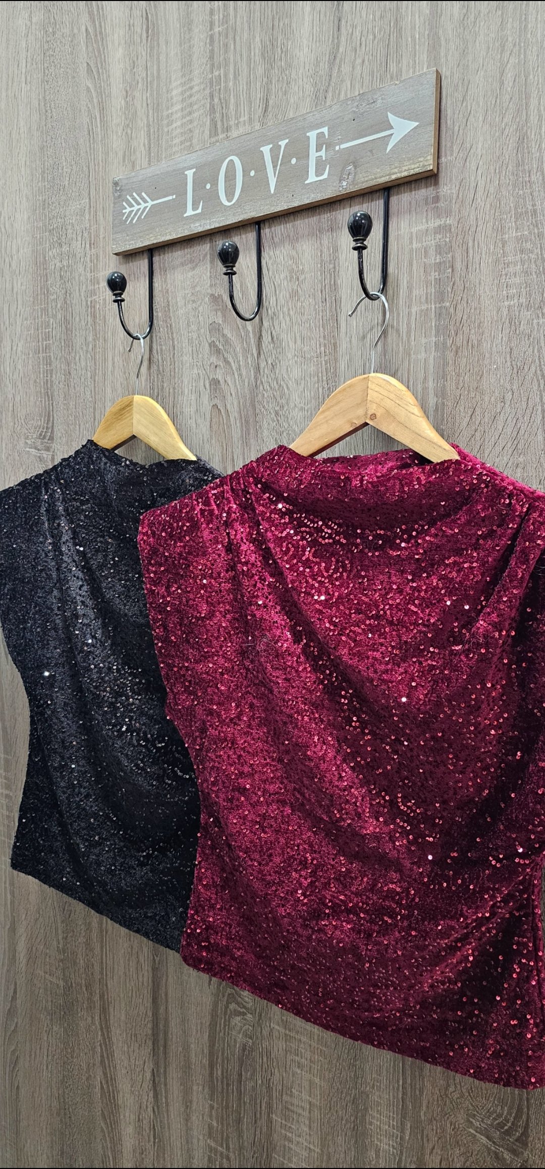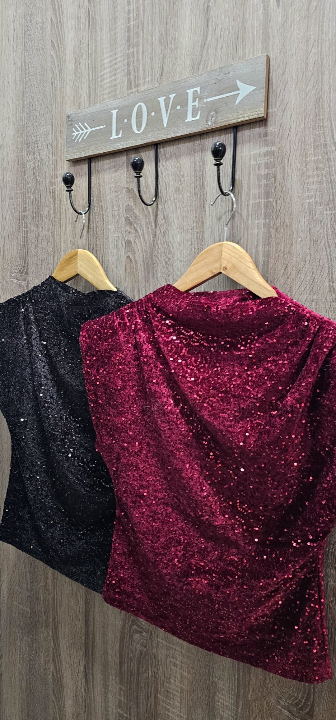 Monisimo top de terciopelo y lentejuelas con hombreras idel para combinar con pantalones o faldas de talle alto