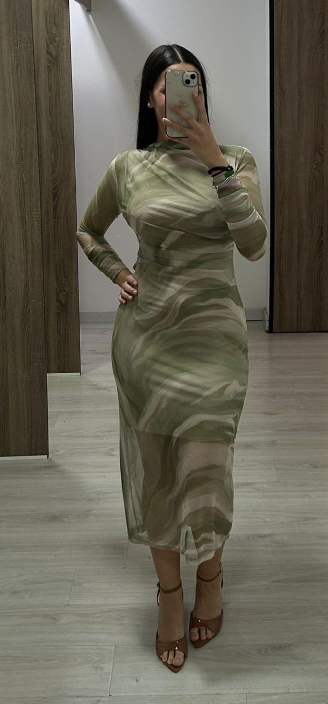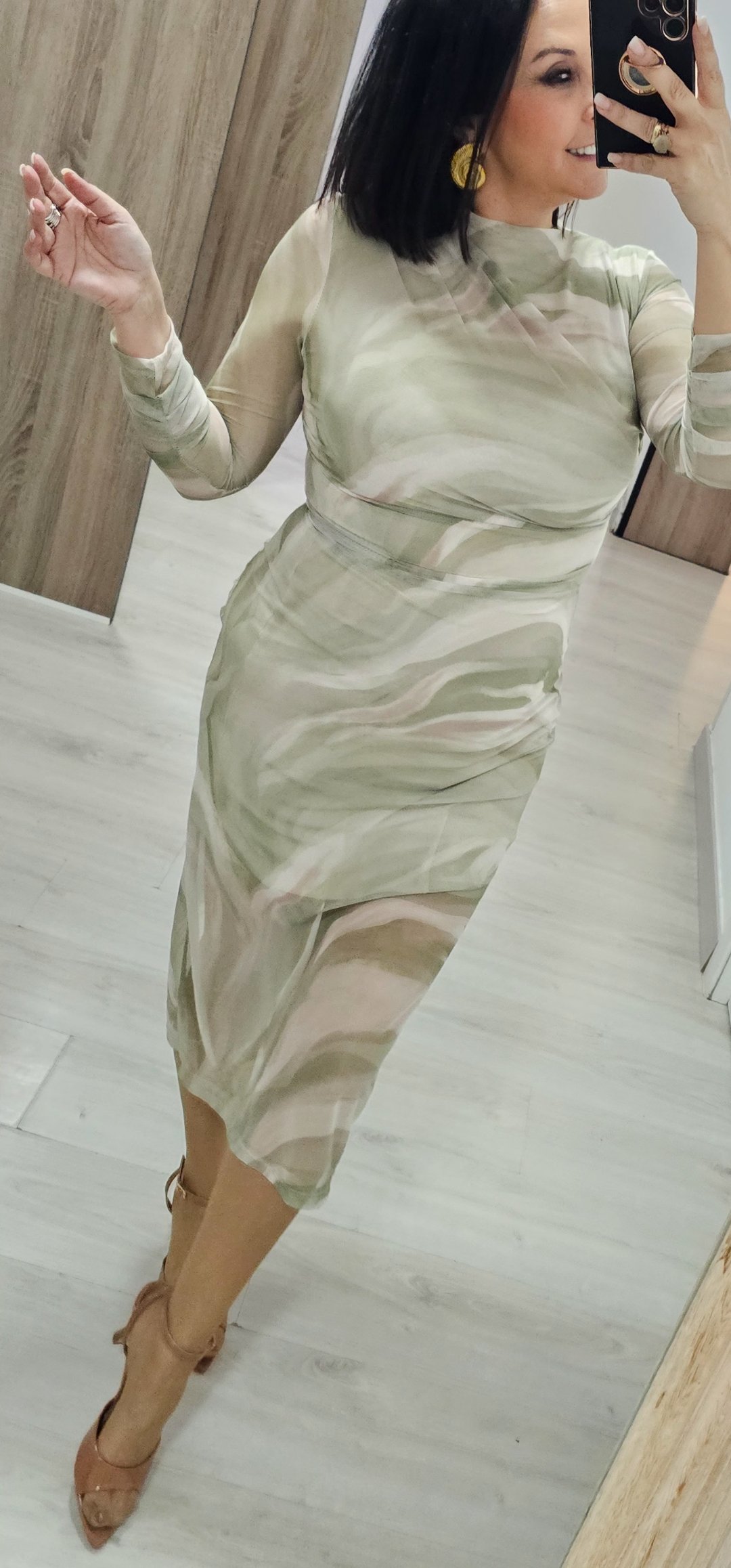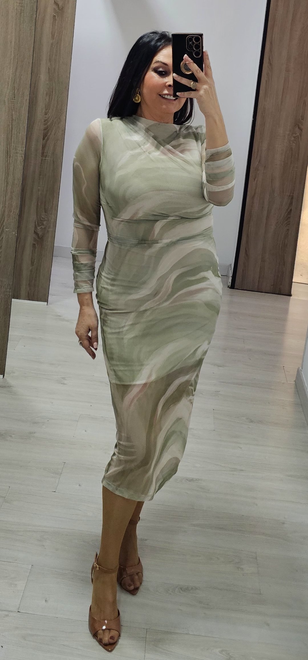 Monisimo vestido midi en tejido de tull elástico y forrado con un estampado ideal