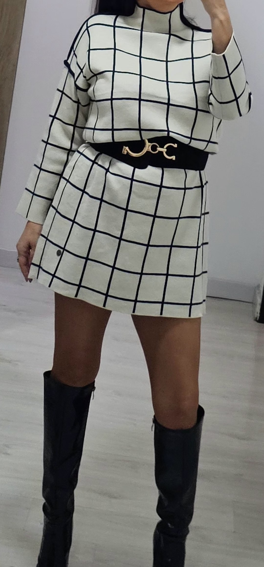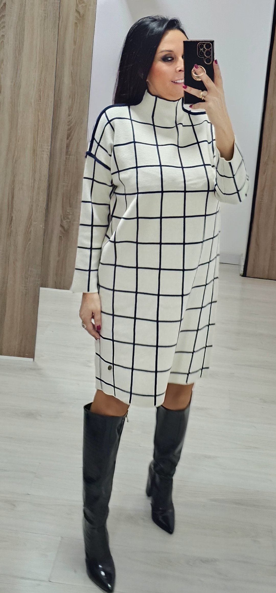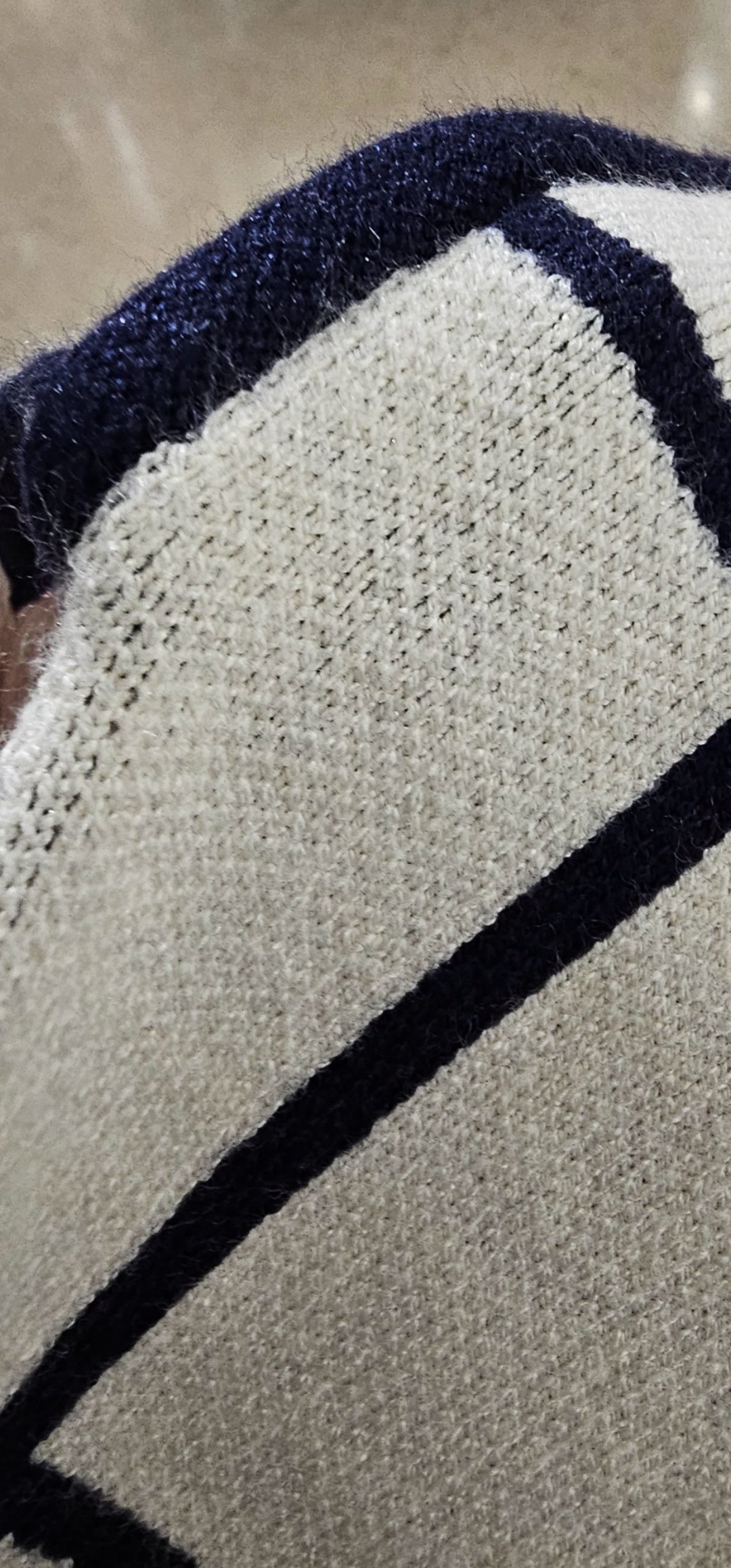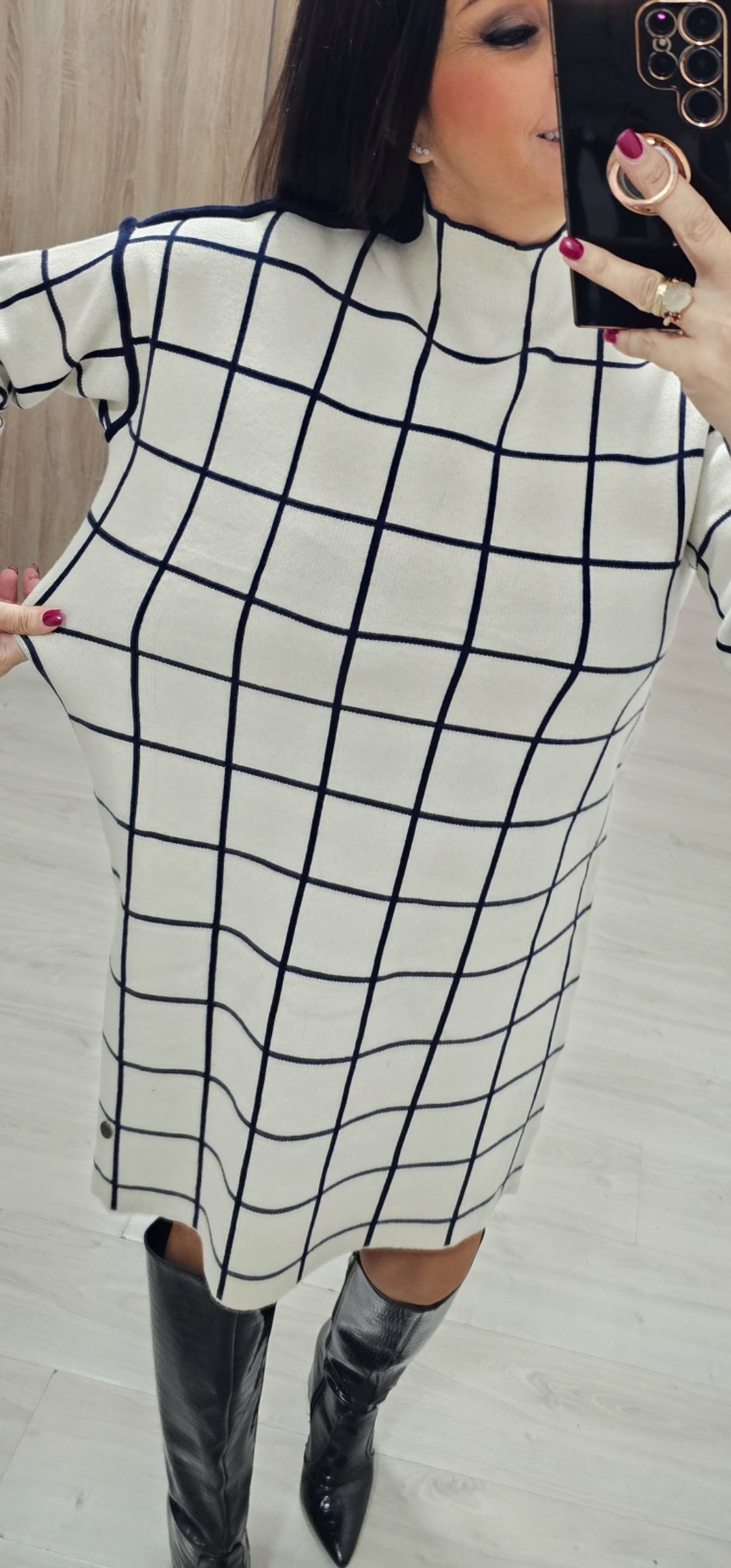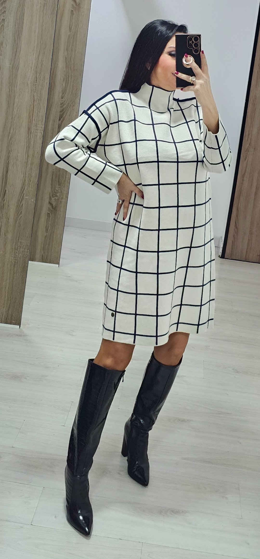 Monisimo vestido de punto tupido en fondo beige y rayas azul marino con un corte súper elegante, podéis combinar con o sin cinturón para darle otro toke a tu look
