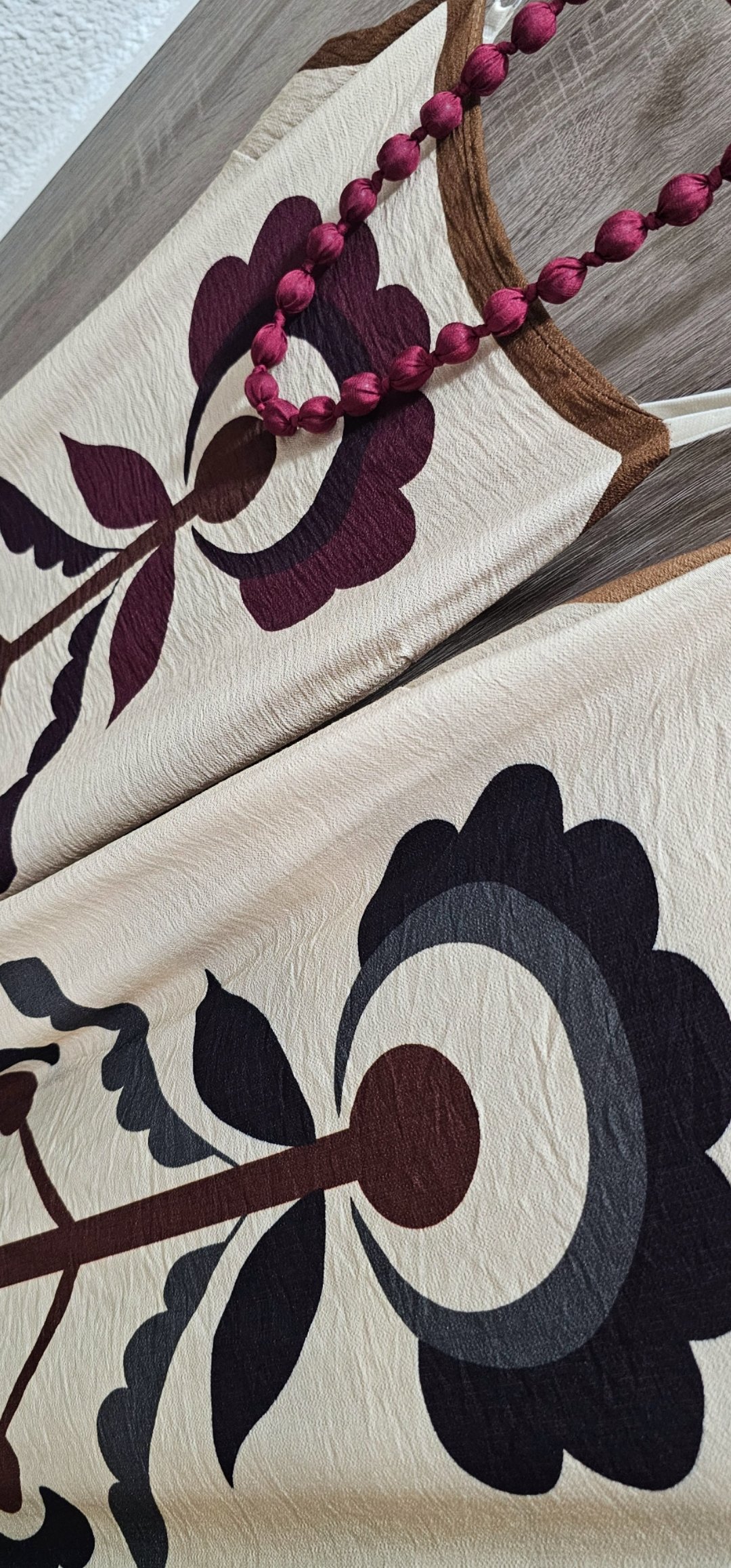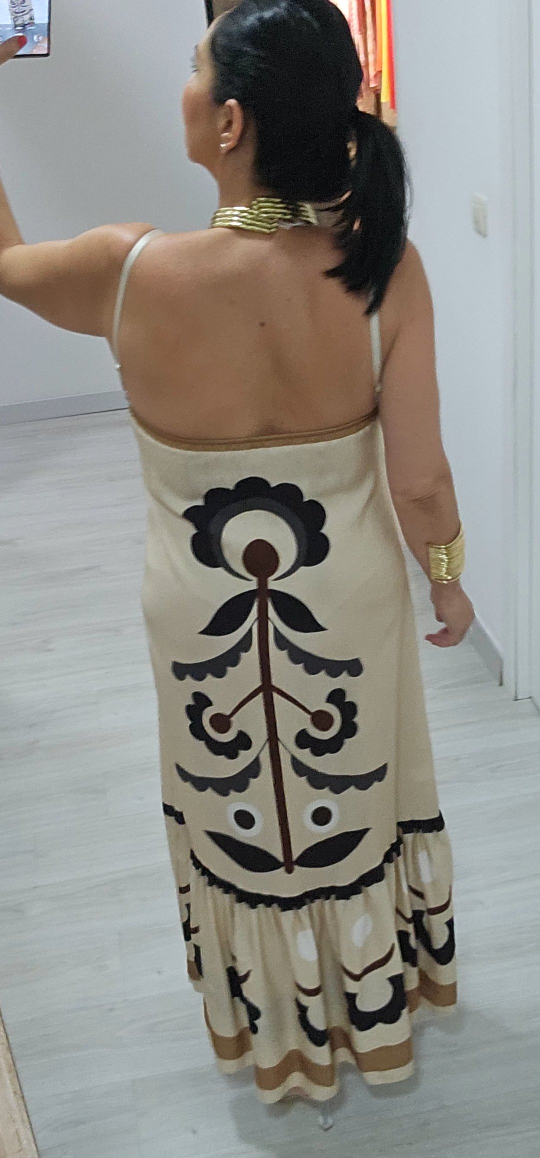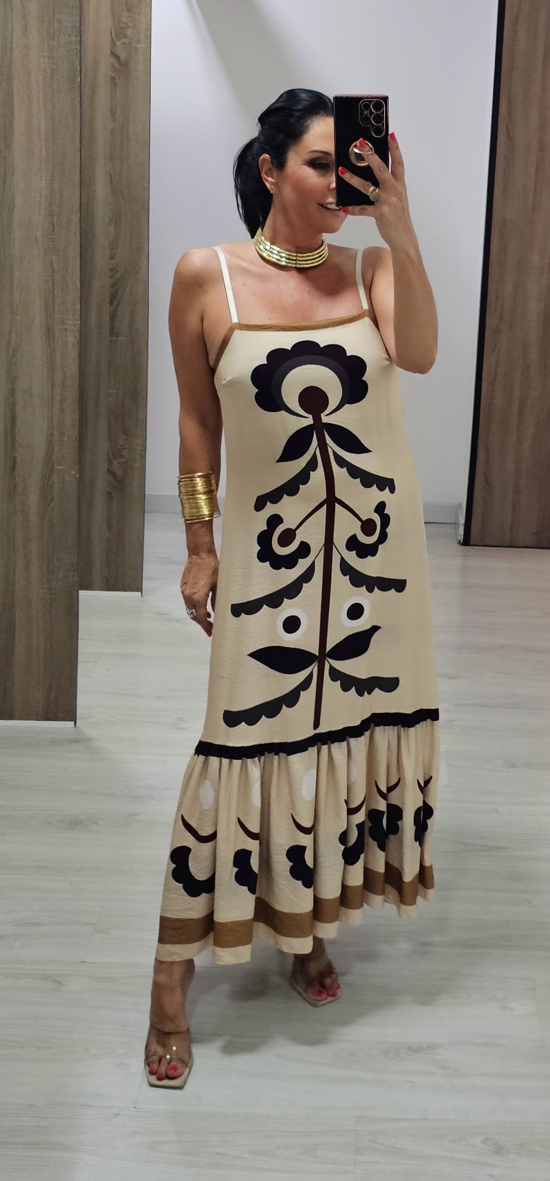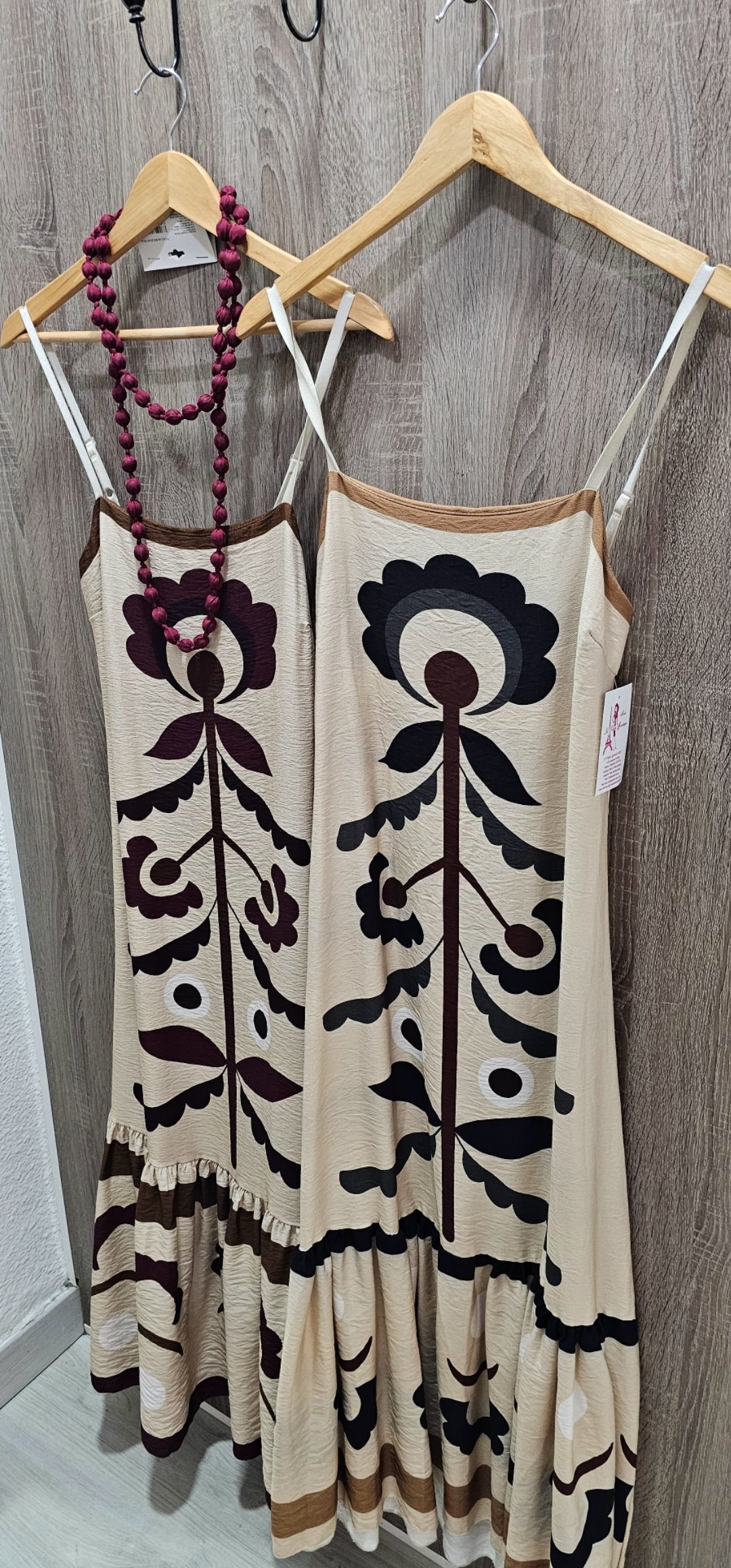 Espectacular vestido largo con un estampado súper bonito en tejido de viscosa y tirantas regulables