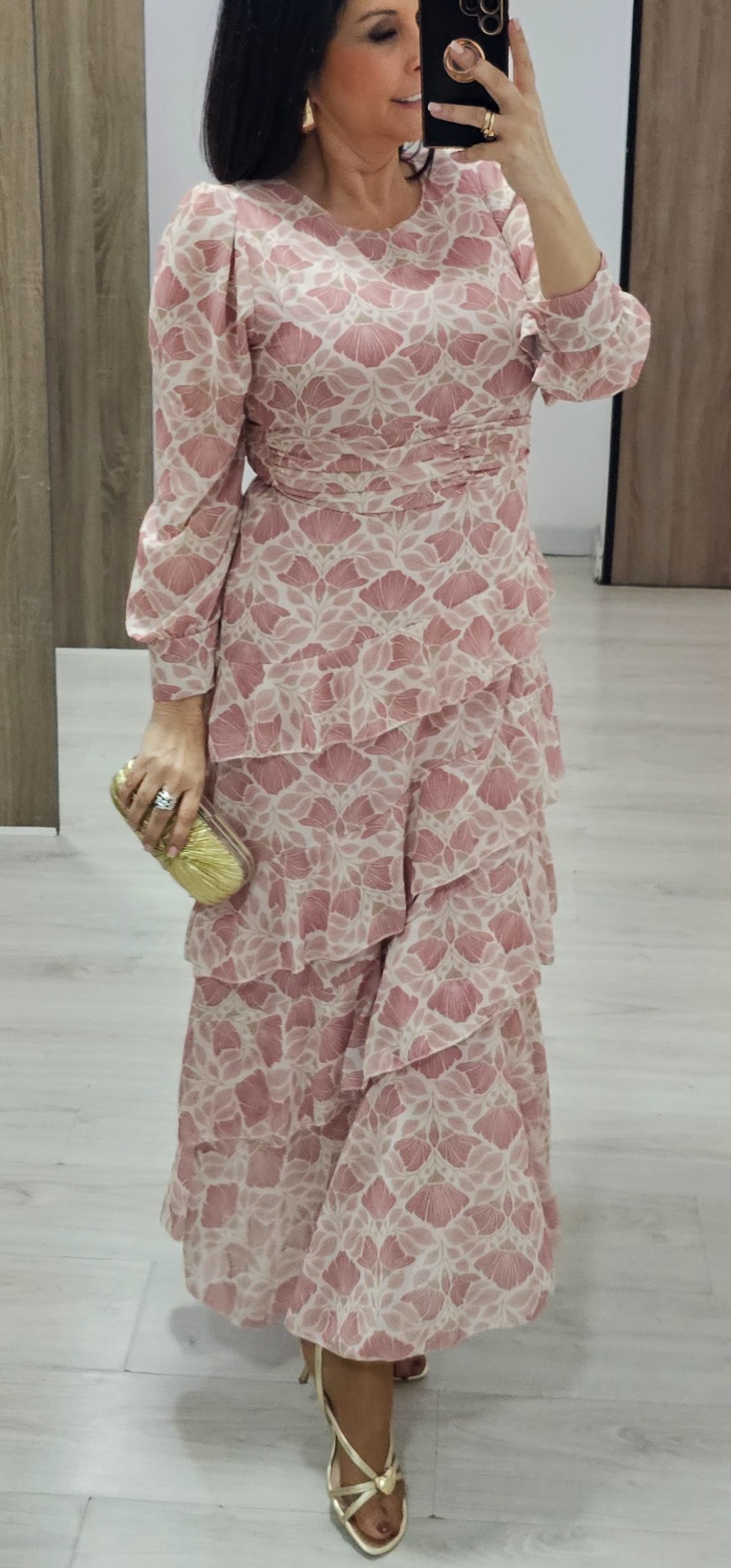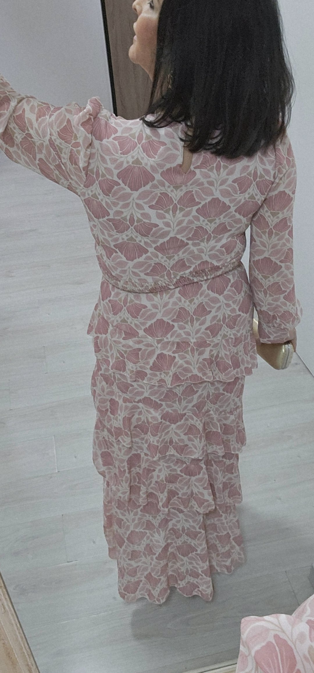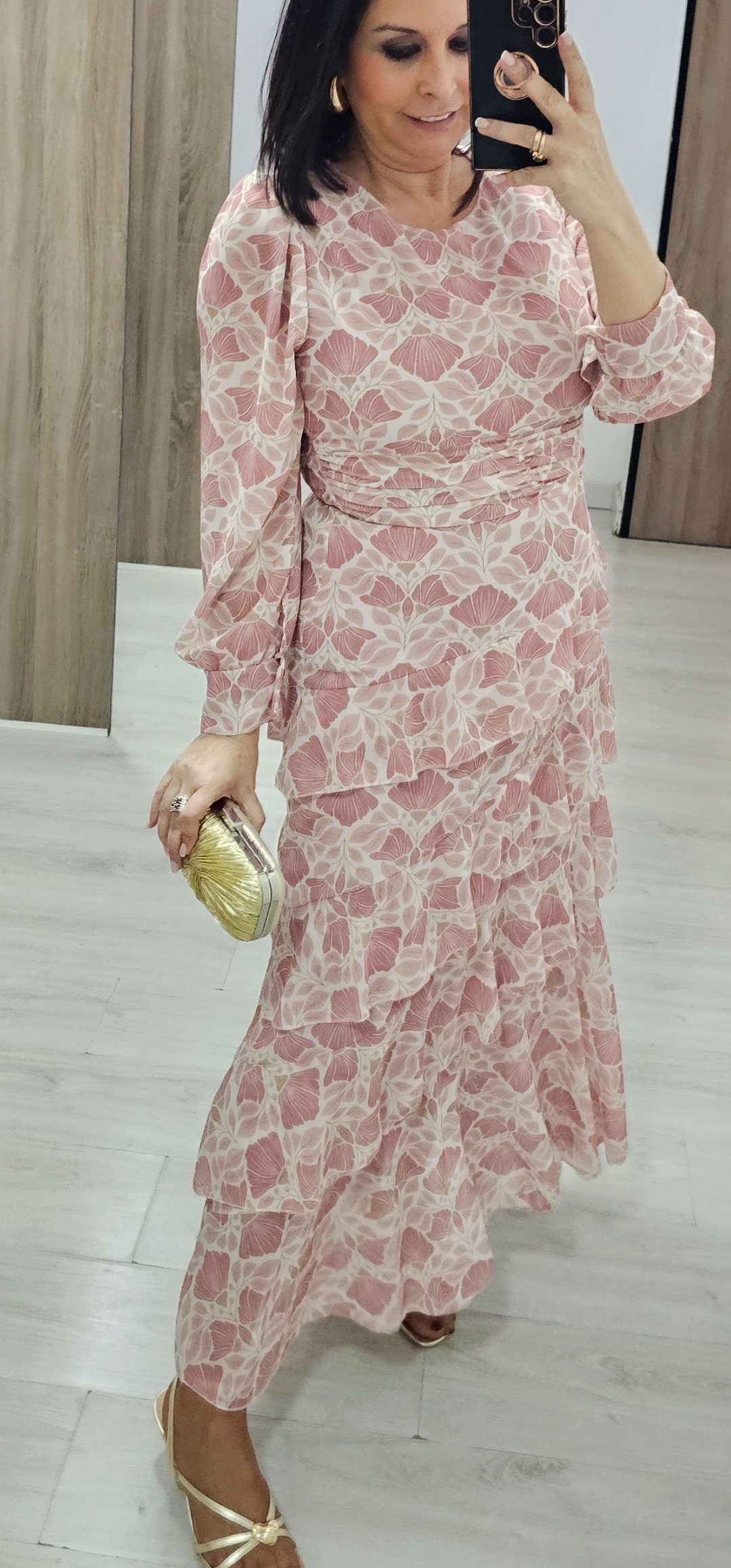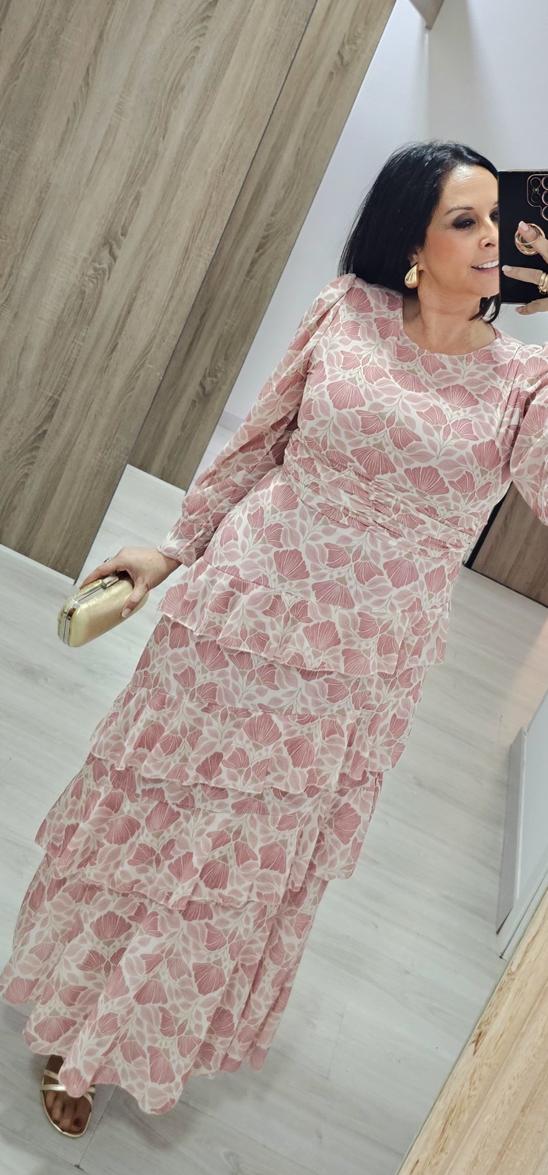 Monisimo vestido largo con volantes en un estampado súper primaveral en tejido de gasa forrado con cintura elástica detras