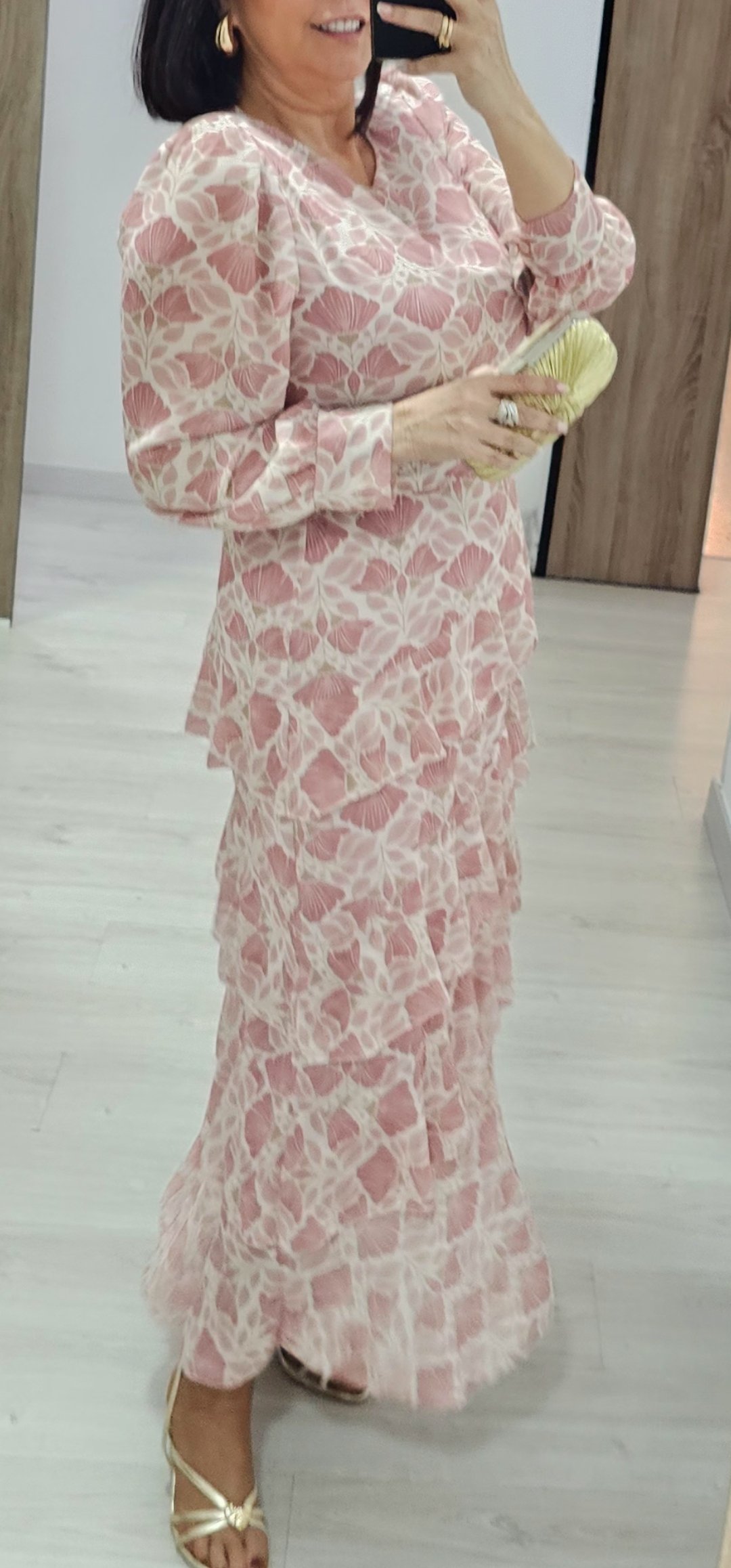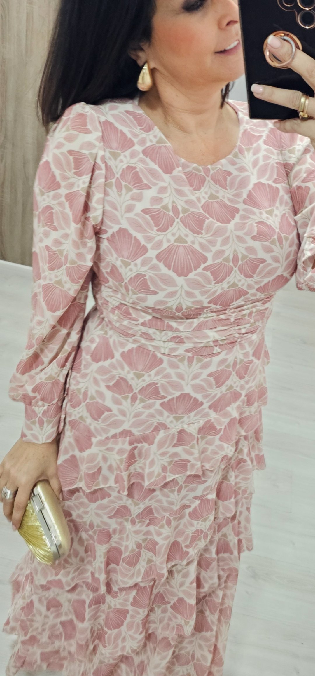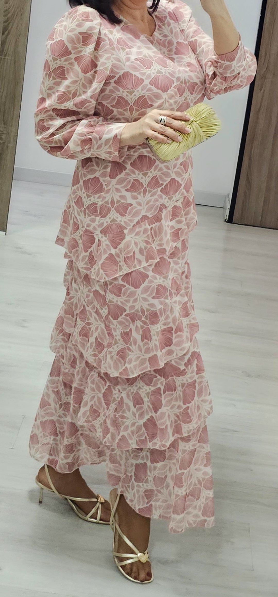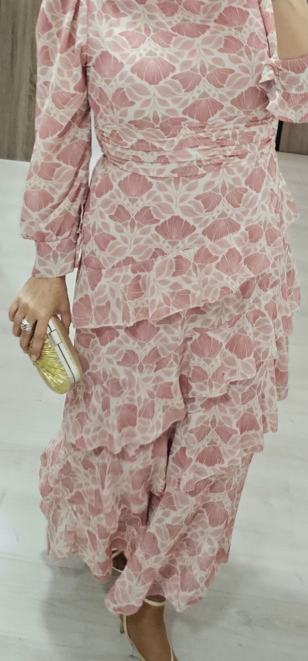 Monisimo vestido largo con volantes en un estampado súper primaveral en tejido de gasa forrado con cintura elástica detras