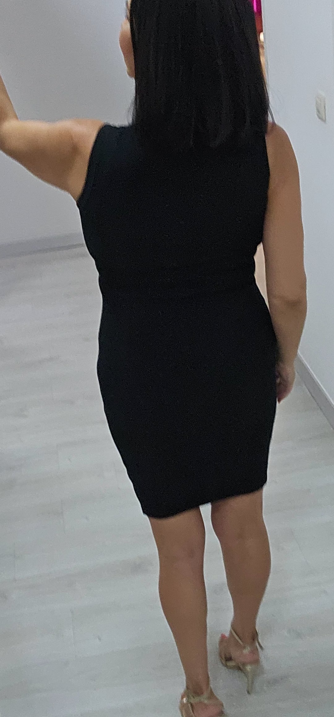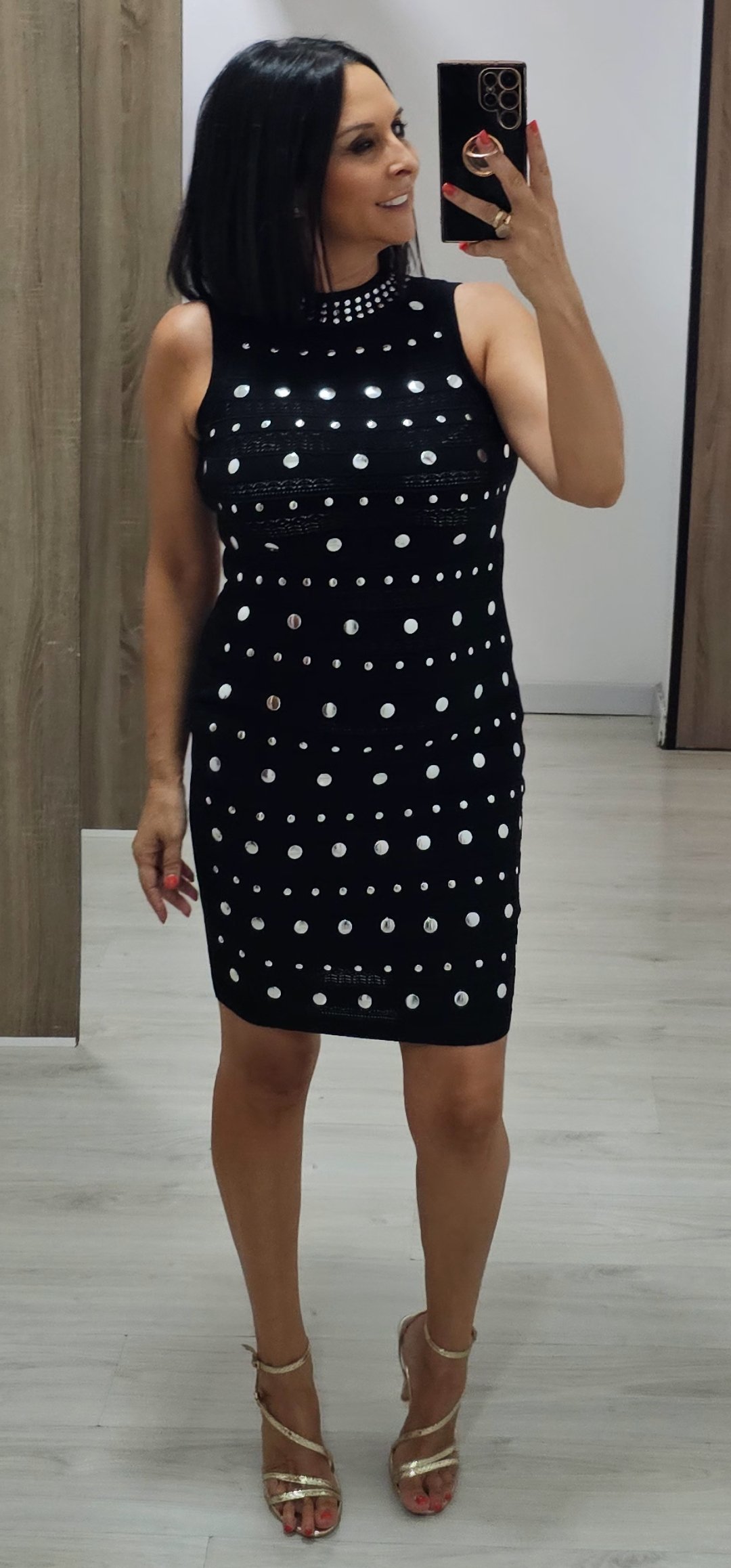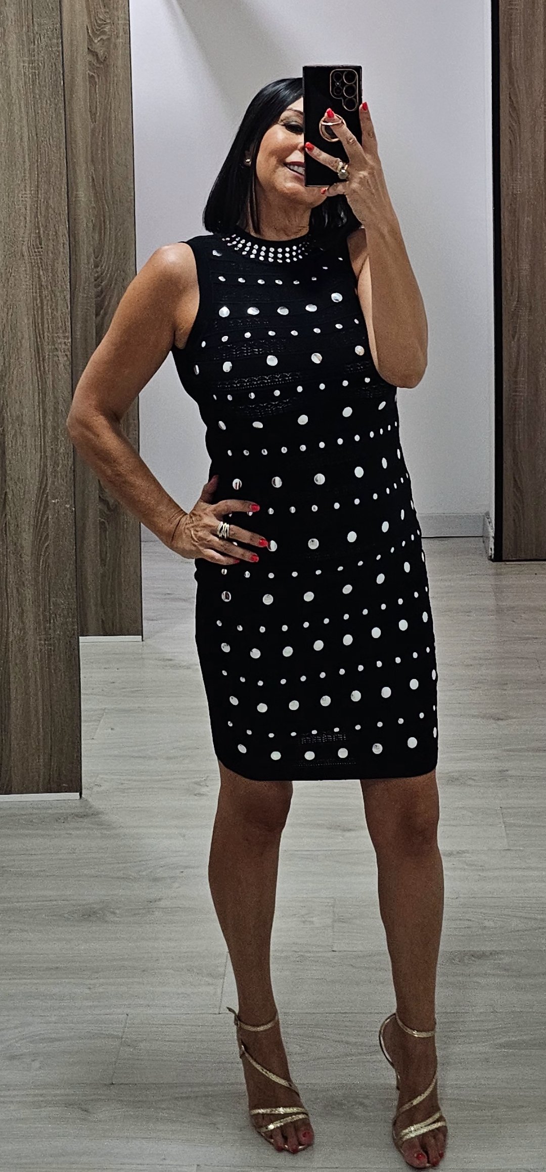 Monisimo vestido de hilo con calado por delante y apliques de tachuelas, por detrás es liso